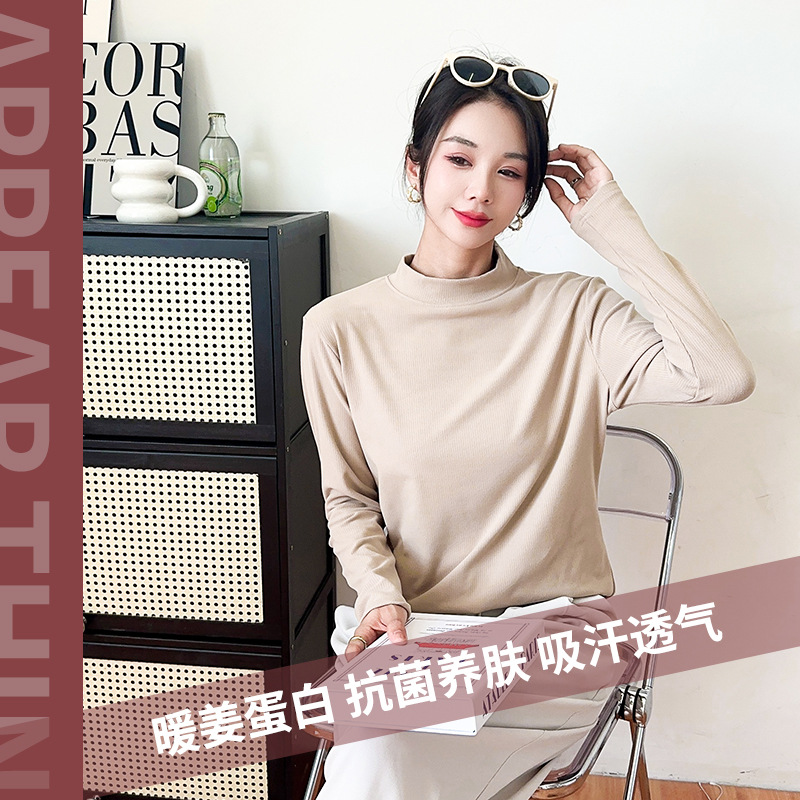 2024 новые женские вязаные свитера с круглым вырезом топ Delong термобелье с длинными рукавами согревающее имбирное платье