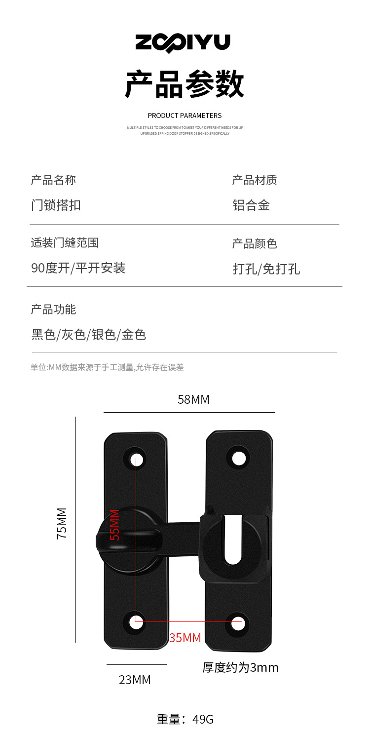 Дверная пряжка без перфорации дверная защелка 90 градусов
