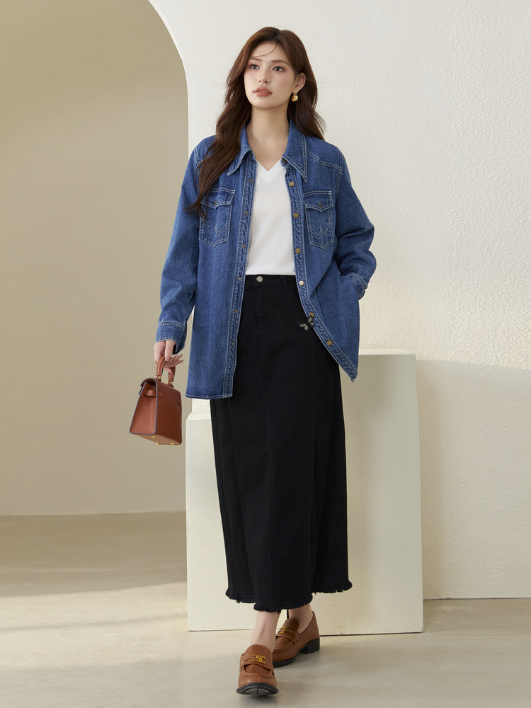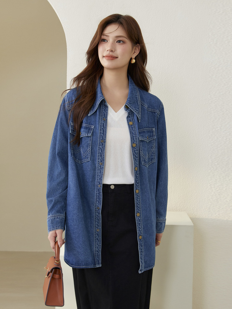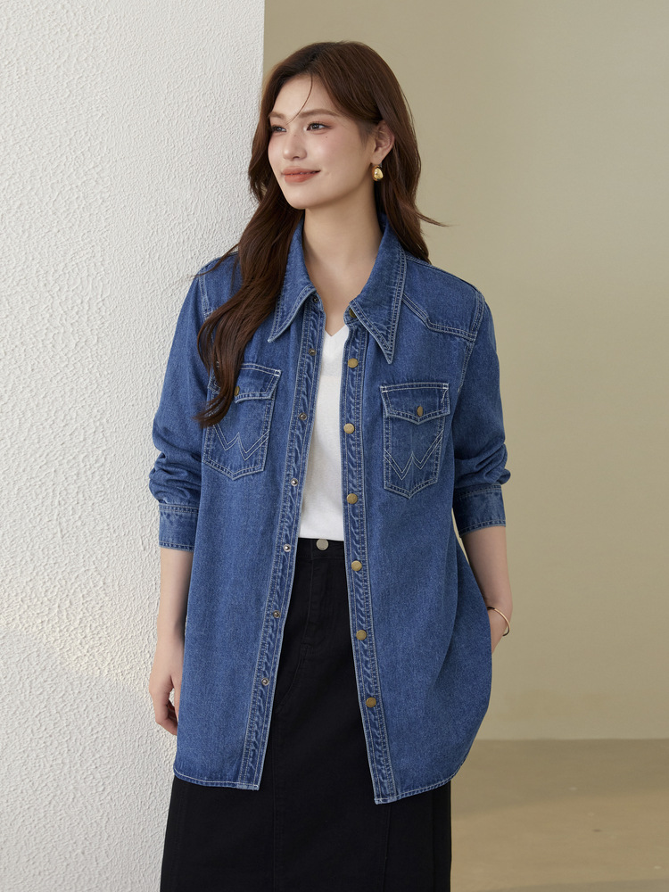 Funny Show большой размер женщины ретро модный темный повседневный дизайн джинсовая куртка жирный mm2024 осенний костюм новый