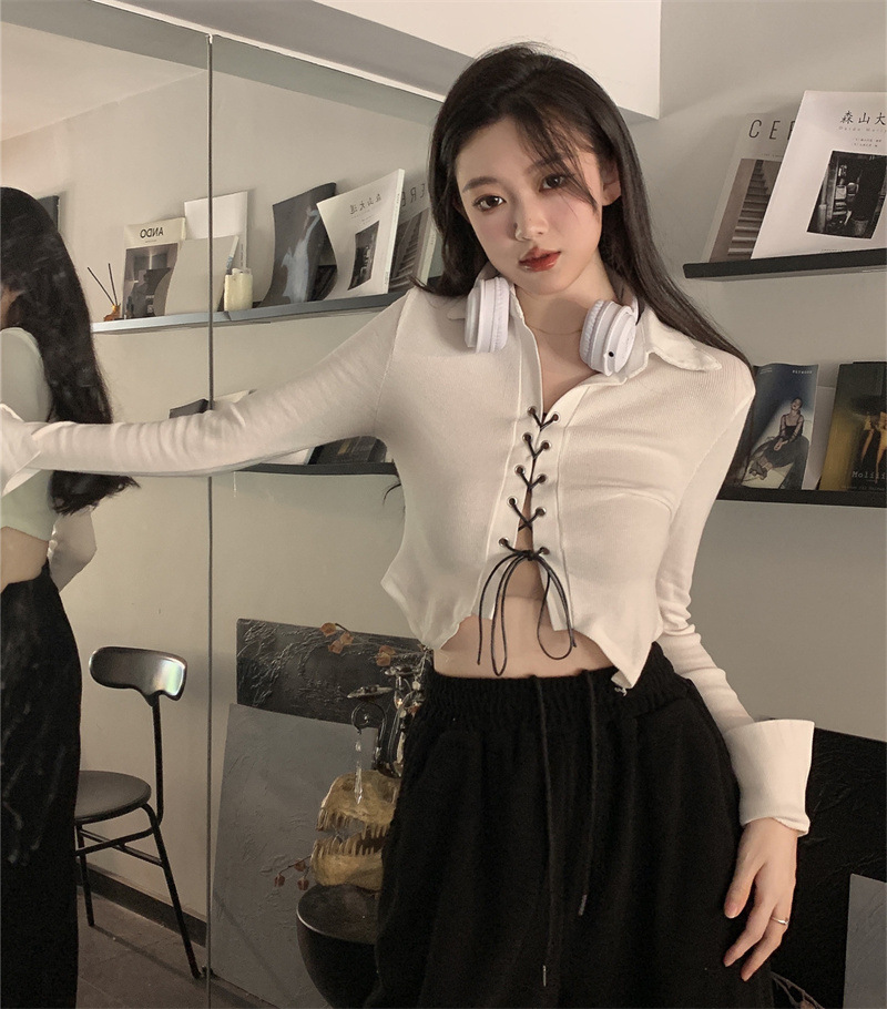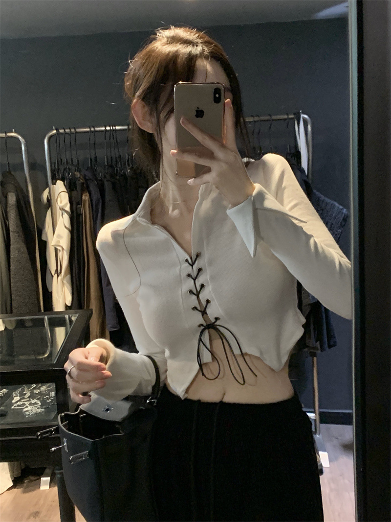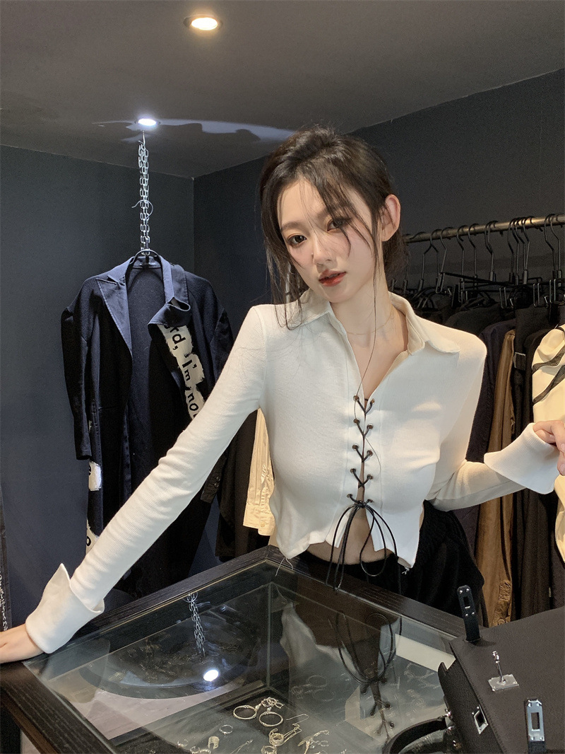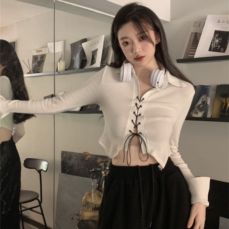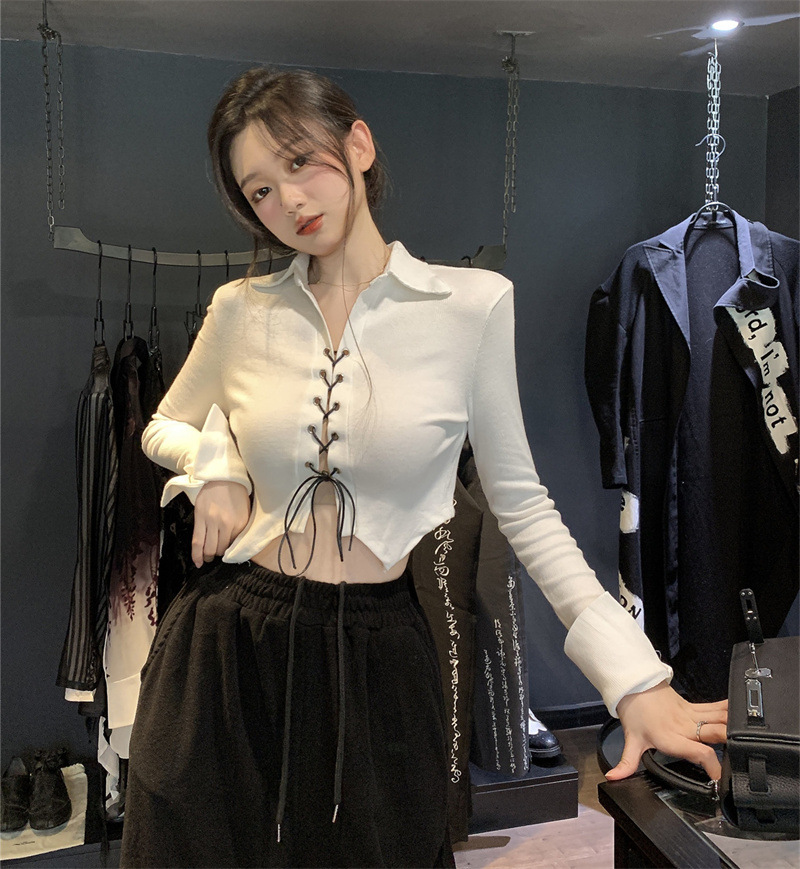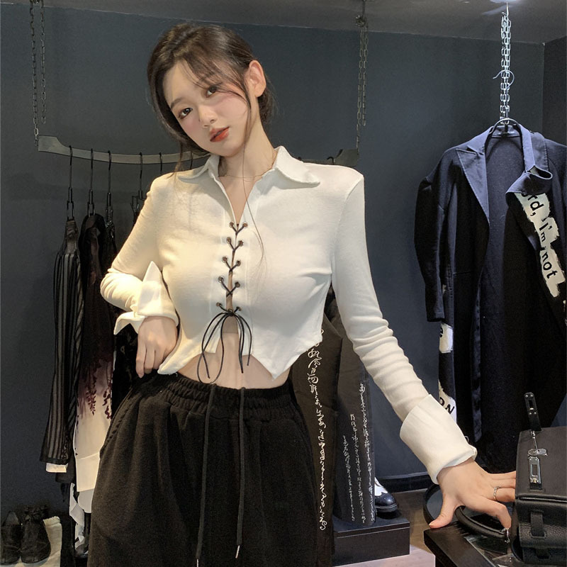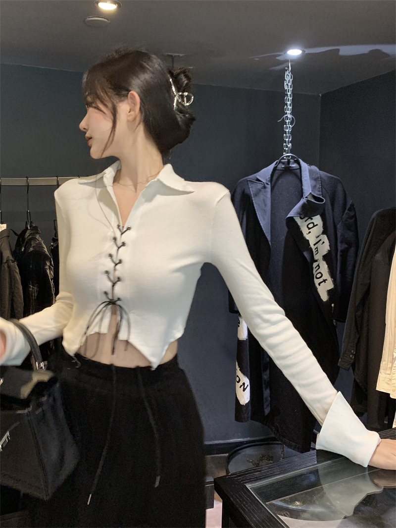 Официальная картина Реальная цена поло-воротник с длинными рукавами, короткая футболка