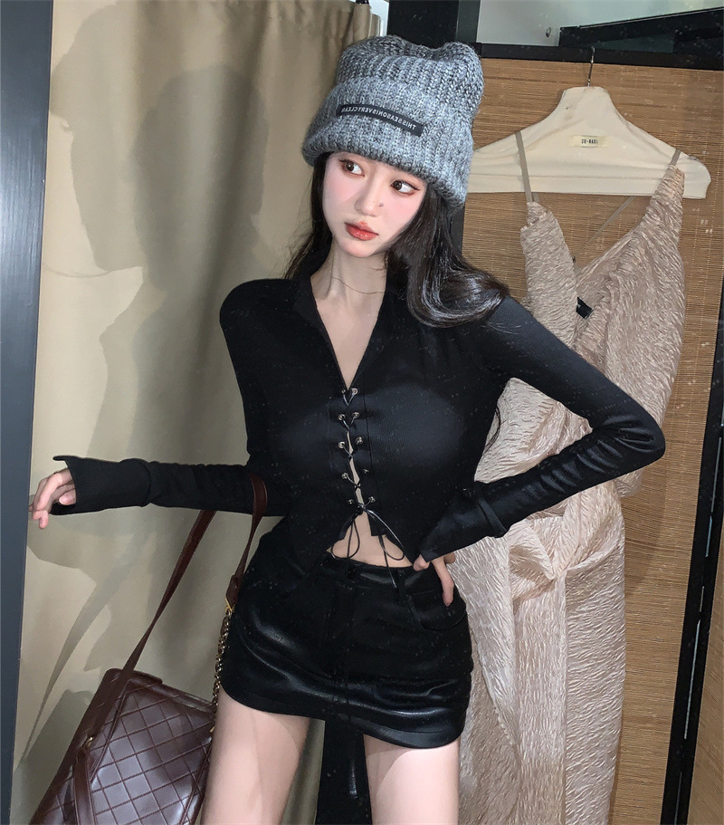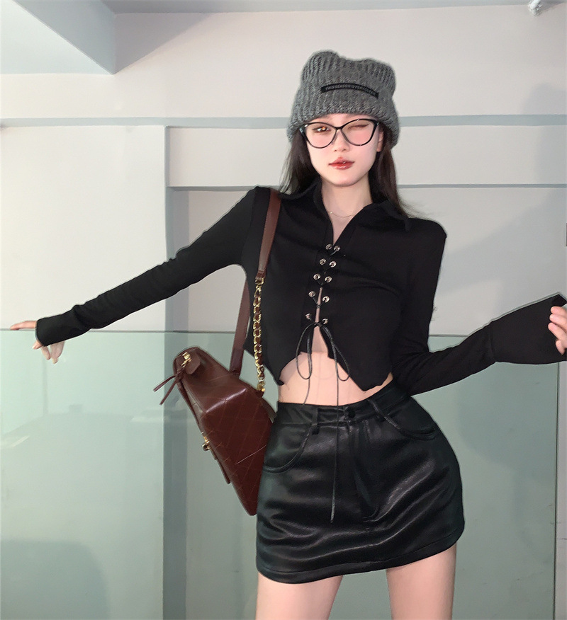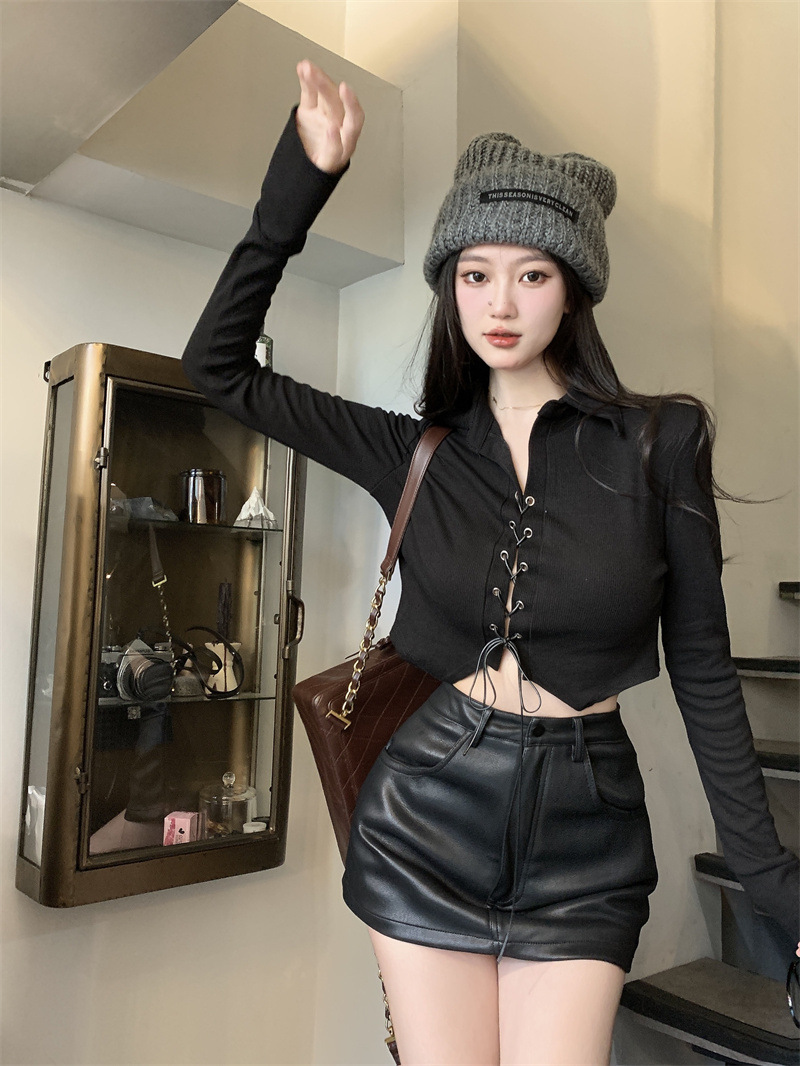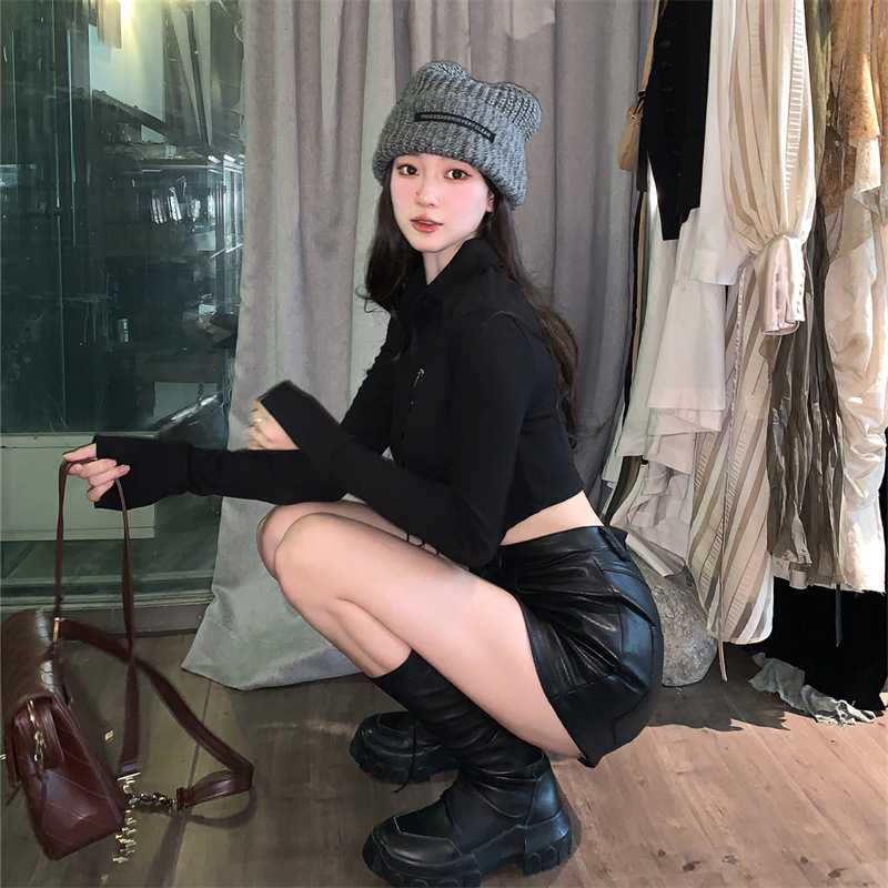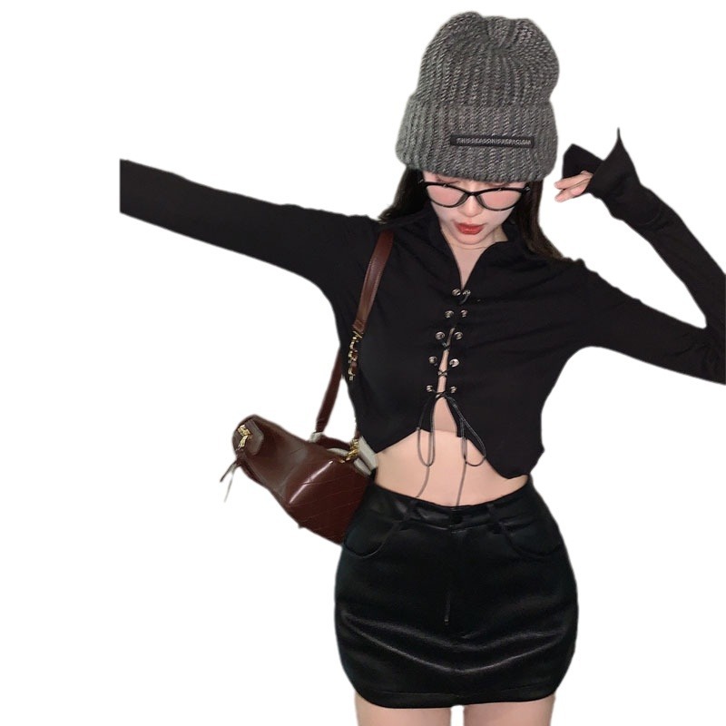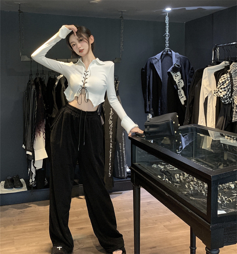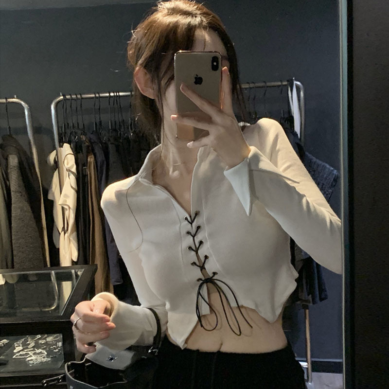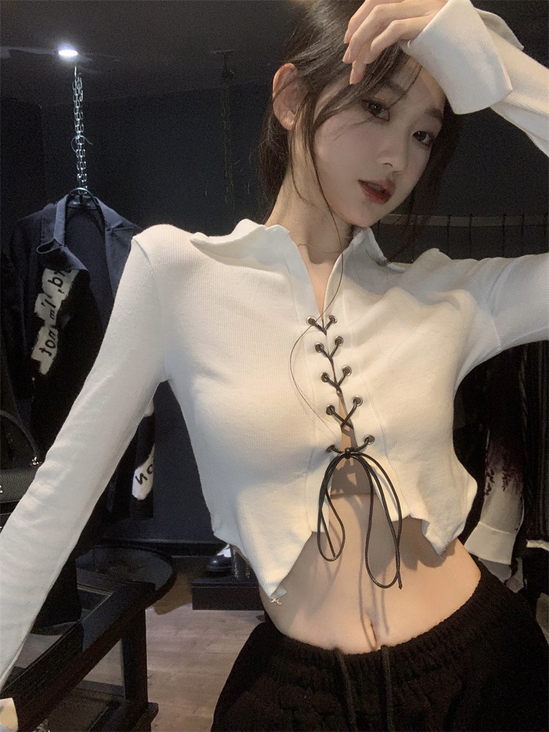 Официальная картина Реальная цена поло-воротник с длинными рукавами, короткая футболка