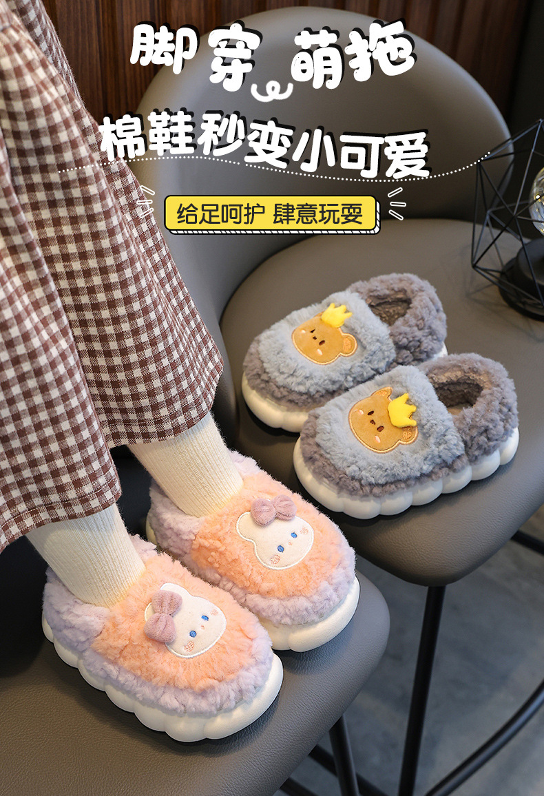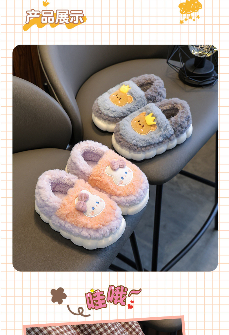 Осенние и зимние детские хлопчатобумажные тапочки с мультяшками для девочек