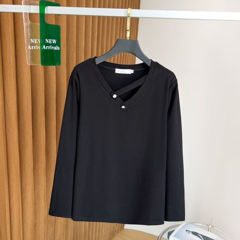 Новый весенний вязаный свитер больших размеров для женщин 2025 года, модная базовая кофта с V-образным вырезом и классическим дизайном плеч из кашемира, модель 2845
