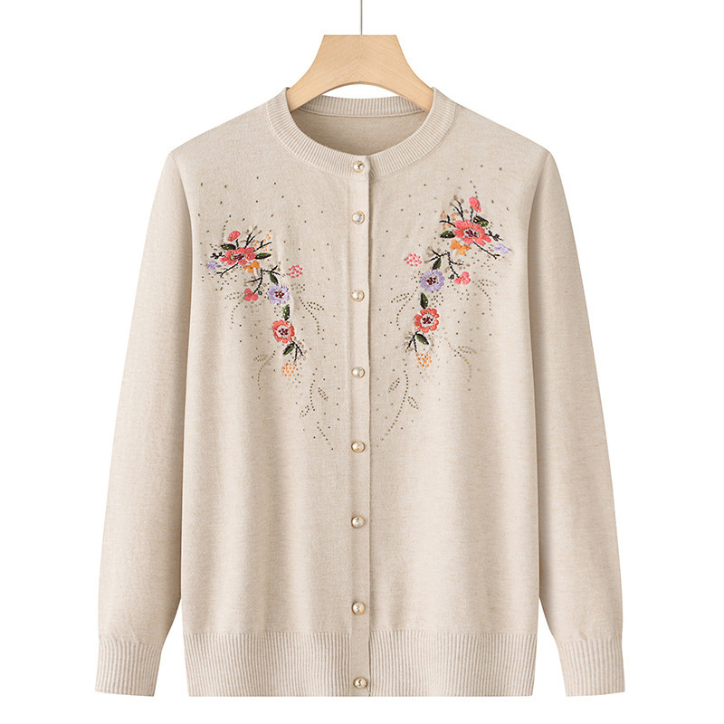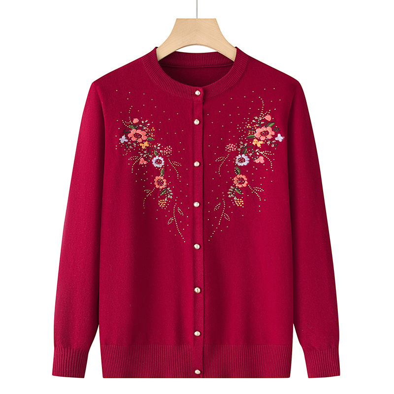 Свитер среднего и пожилого возраста весной и осенью свободные вышитые трикотажные кардиганы бабушки наружные топы мамы свитер с круглым вырезом