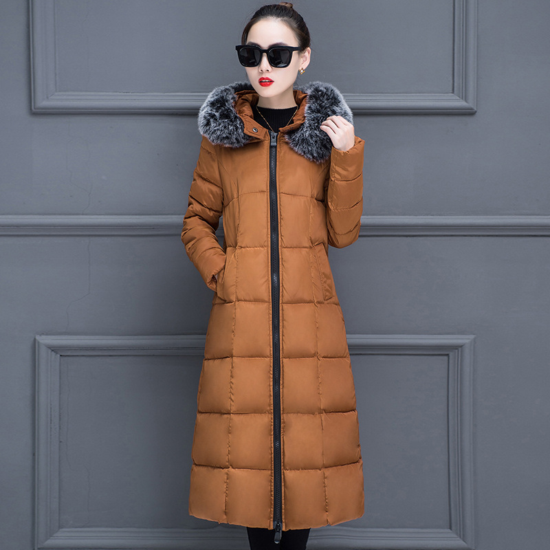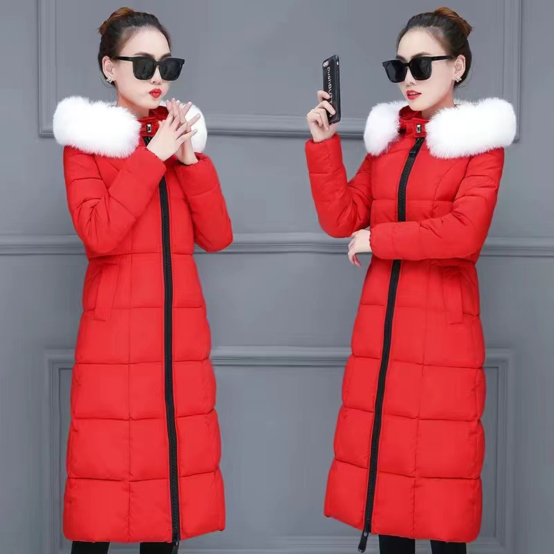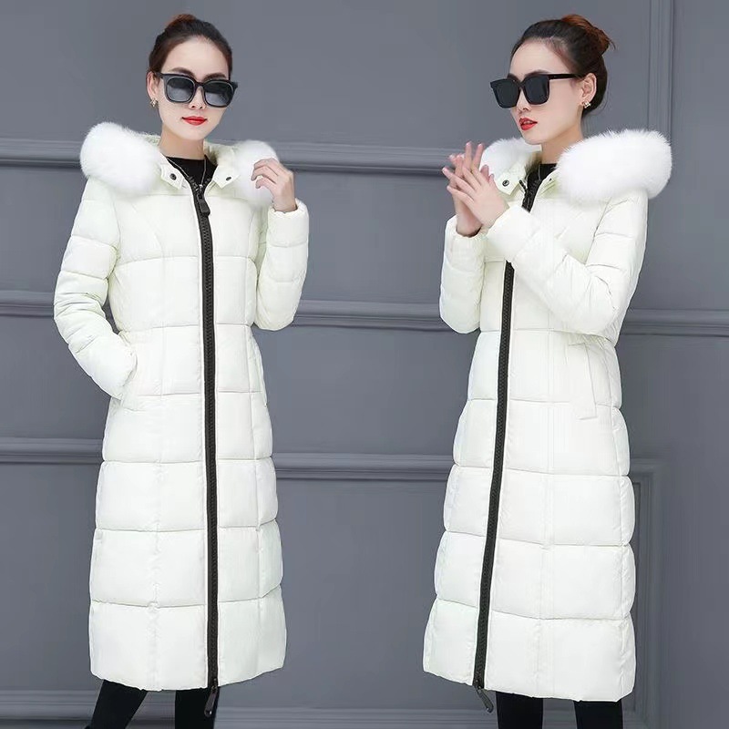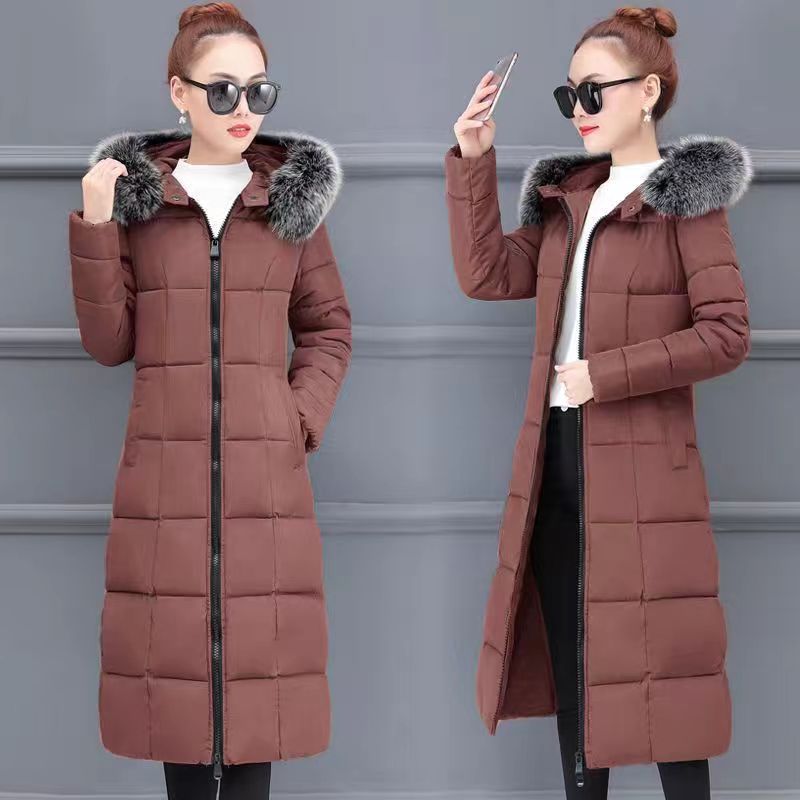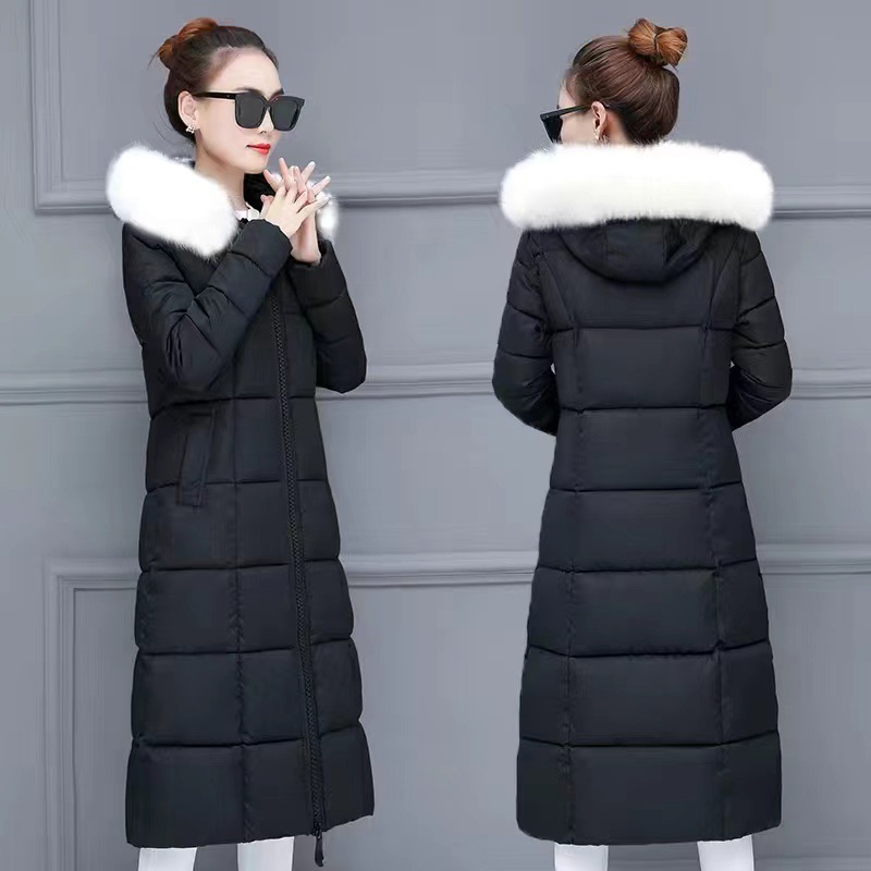 Хлопчатобумажная одежда женский 2024 осень и зима новая корейская версия длинного колена пухового хлопчатобумажного платья женский большой размер свободный цвет шерстяной воротник хлопчатобумажная куртка