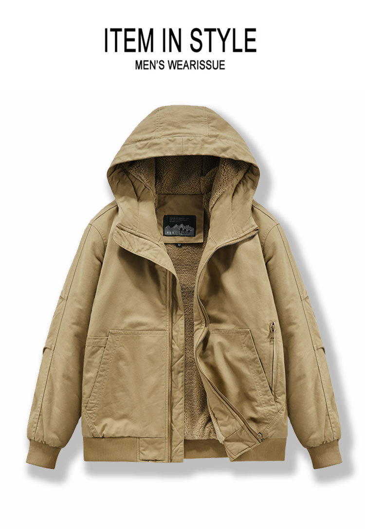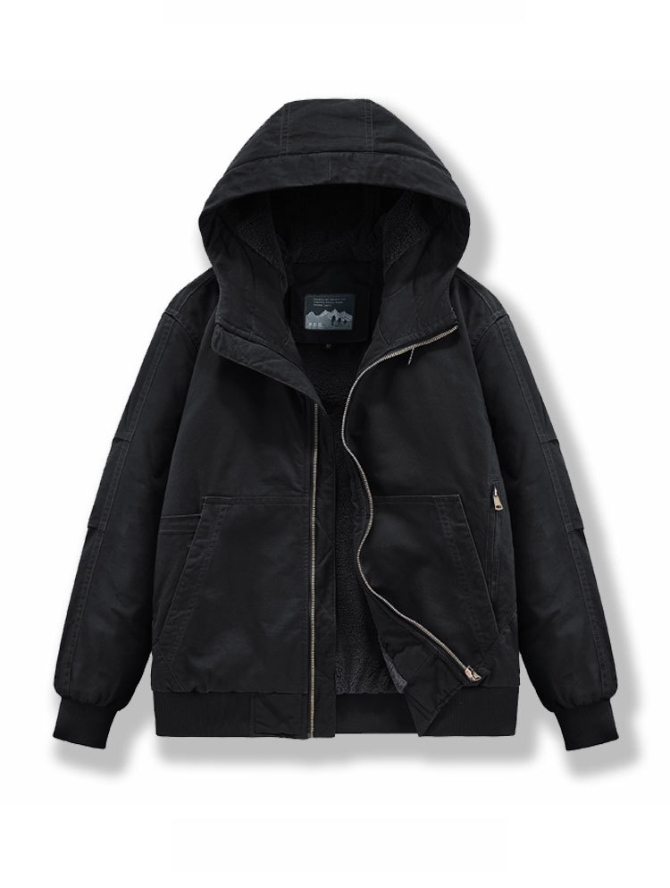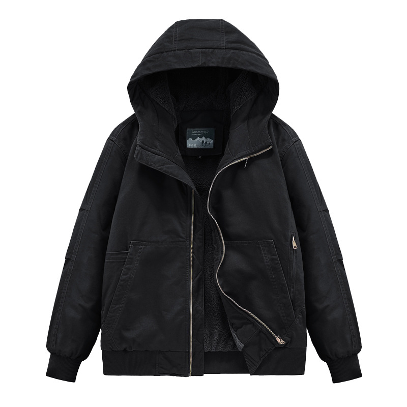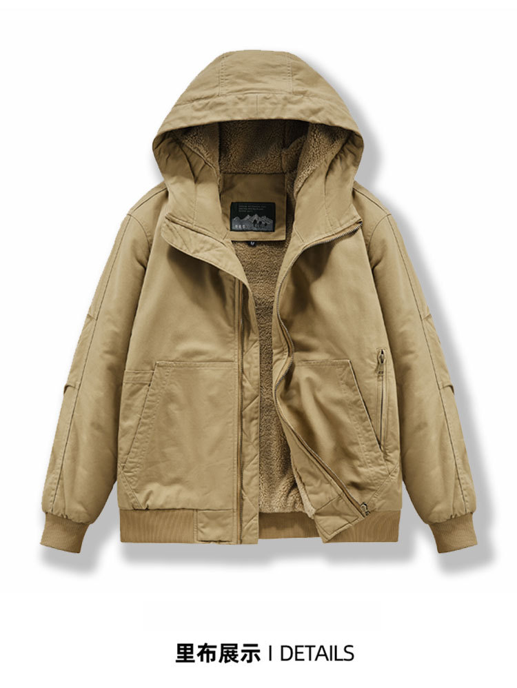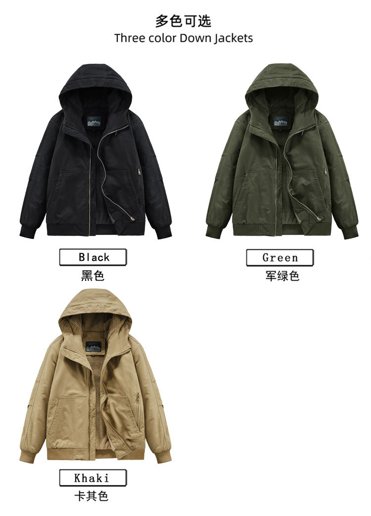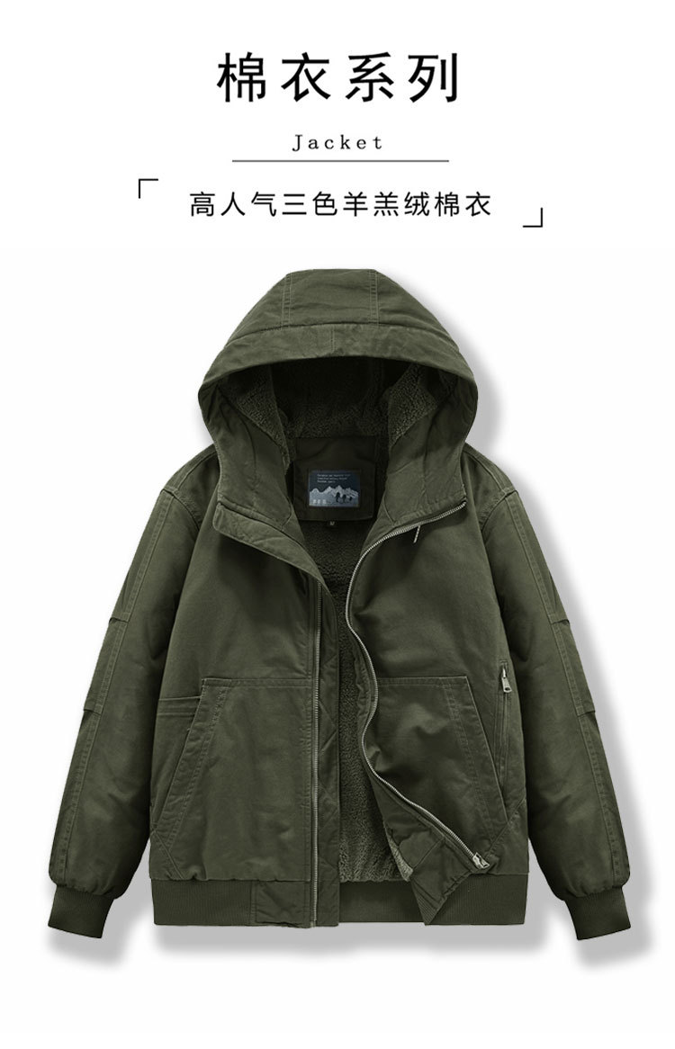 Трансграничная новая мужская оснастка свободная повседневная короткая хлопчатобумажная куртка плюс бархатная толстая хлопчатобумажная зимняя капюшона с капюшоном