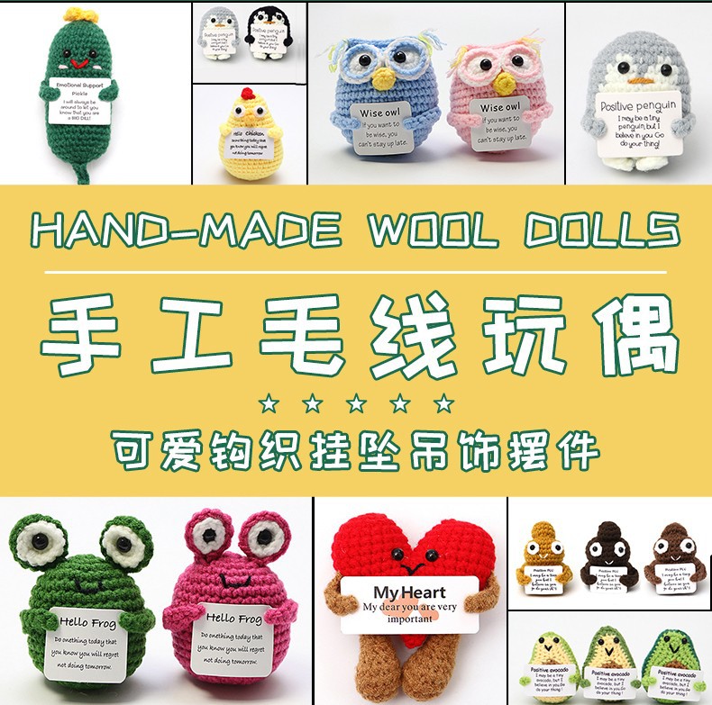 Трансграничные продукты Amazon, вязаные крючком шерстяные вязаные фрукты и овощи, мультяшные куклы, ювелирные украшения, положительная энергия