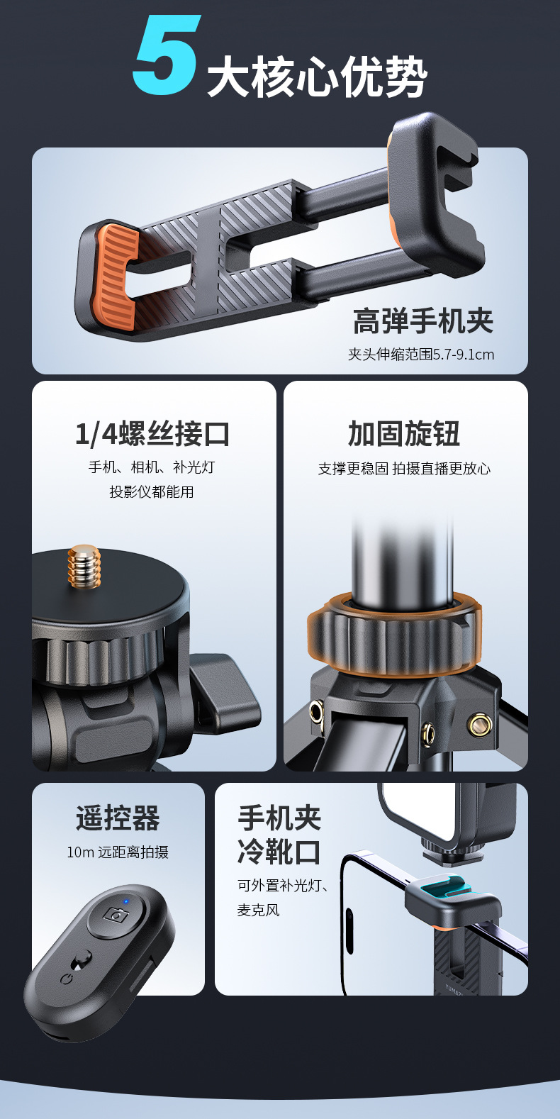 Черный (включая зажим для мобильного телефона + пульт дистанционного управления); Черный (включая зажим для мобильного телефона, без пульта дистанционного управления); Голый металл (за исключением пульта дистанционного управления и зажима для мобильного телефона)