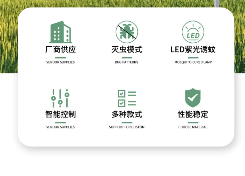 2、灭虫方式:光波共振诱虫、高压电网灭虫,昆虫捕捉率≥97%;