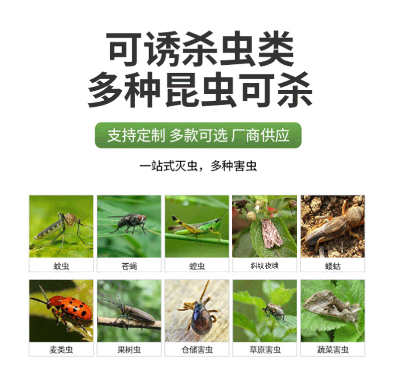 12、接虫方式:旋转式卡扣接虫盒,采用透明***PP材质防水防飞;
