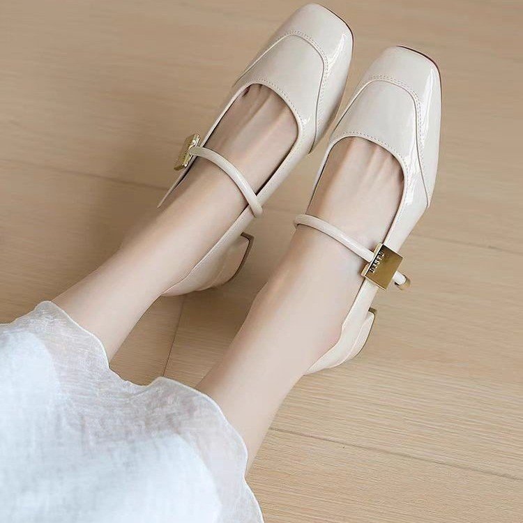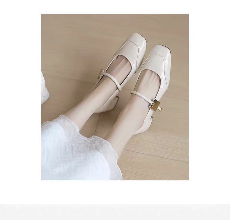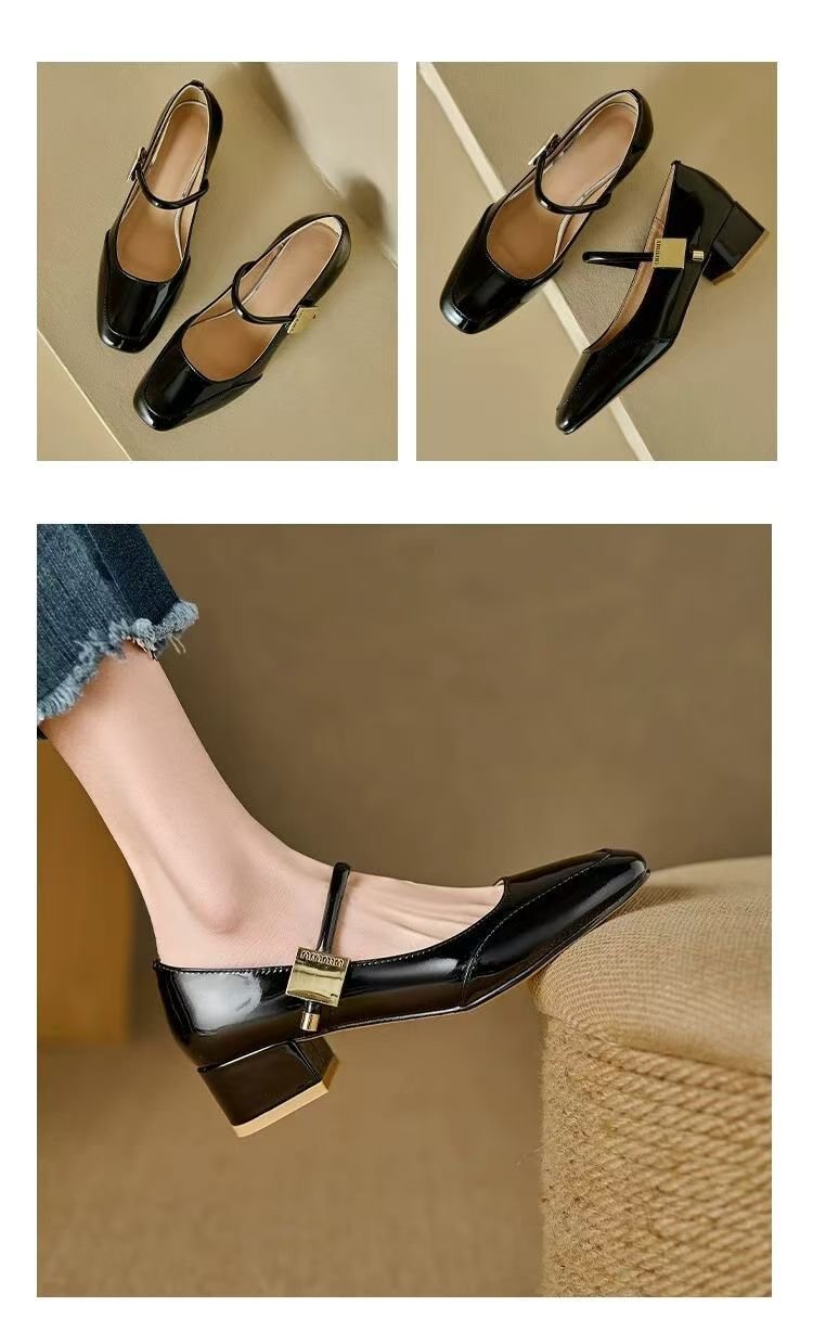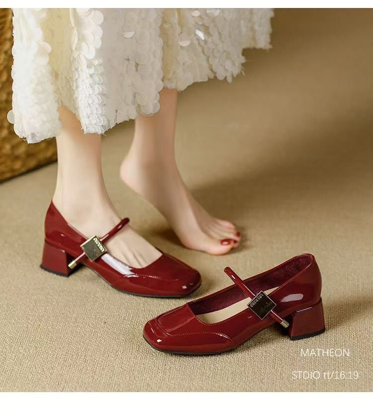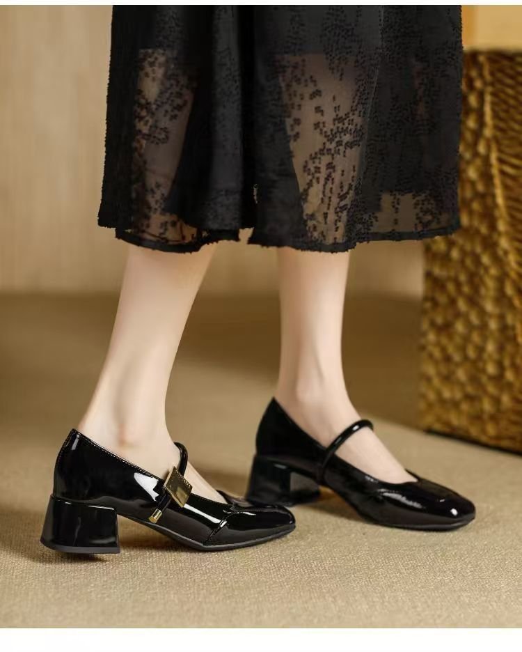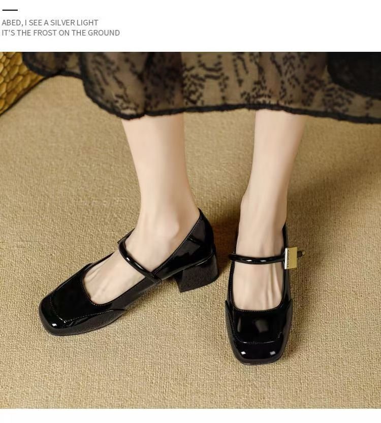 Светло-рот квадратная липучка французская обувь Mary Jen на каблуке 2024 новая толстая фея на каблуке модная одиночная обувь