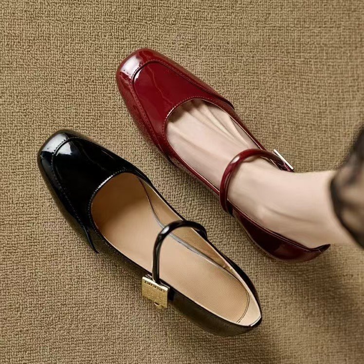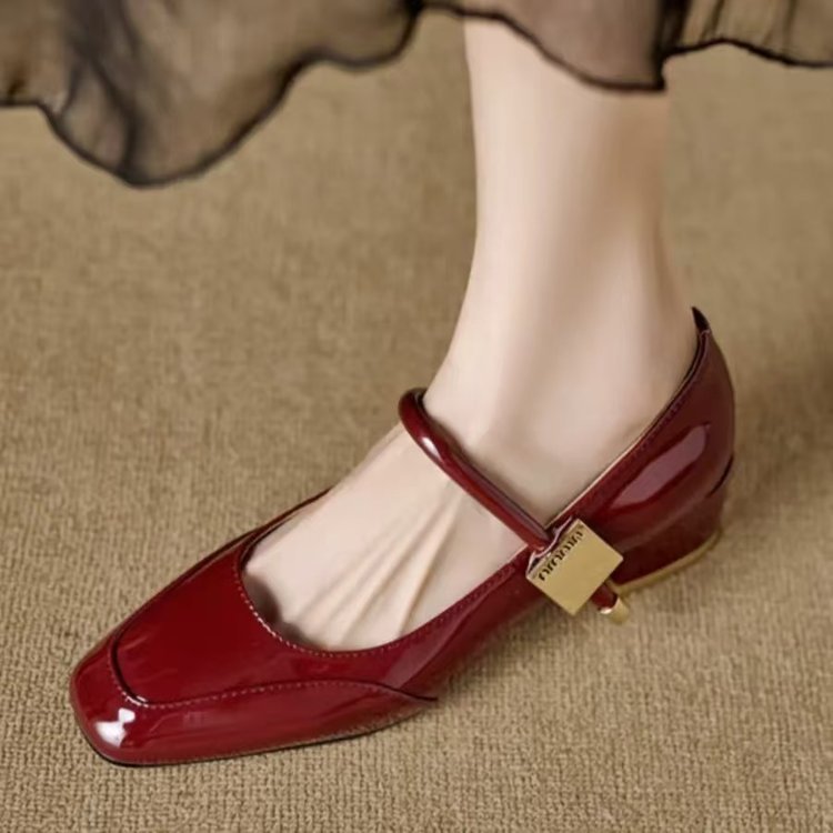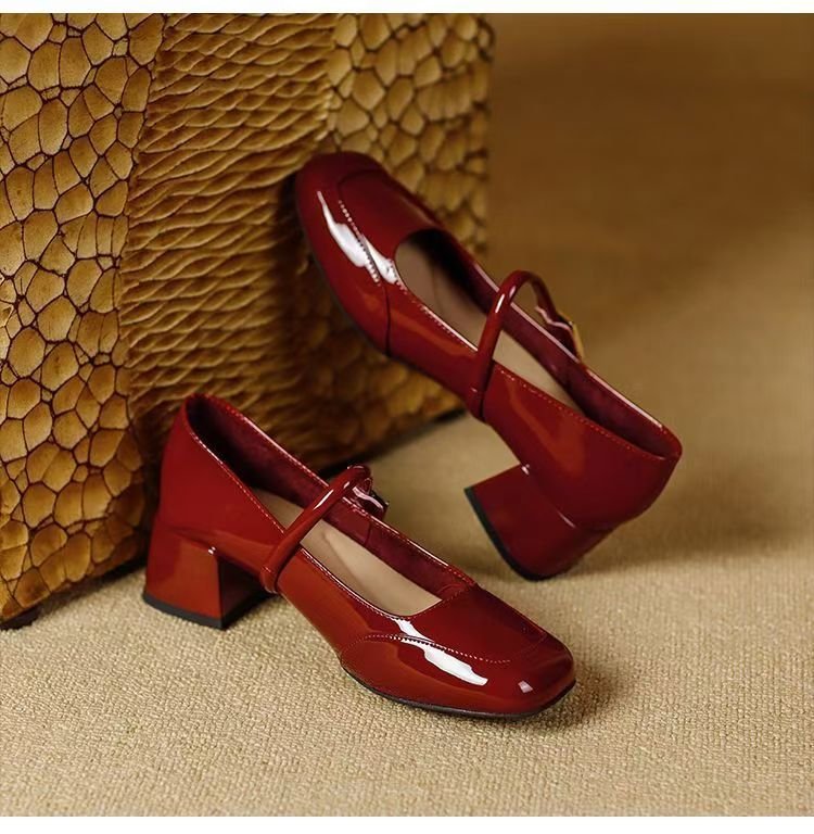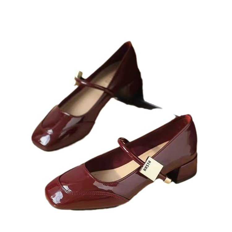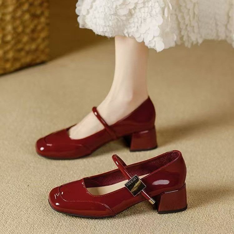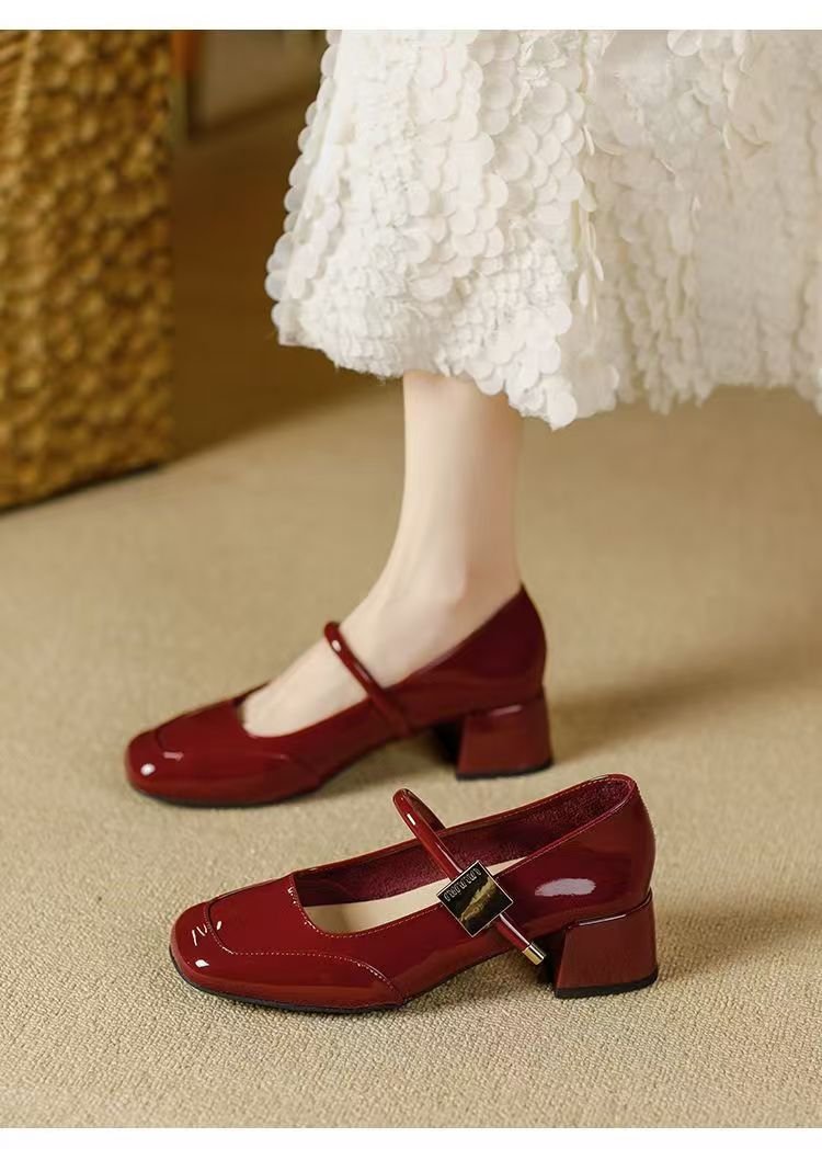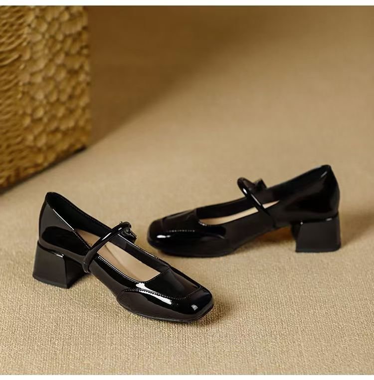 Светло-рот квадратная липучка французская обувь Mary Jen на каблуке 2024 новая толстая фея на каблуке модная одиночная обувь