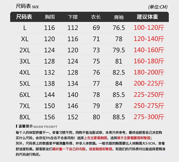 L; XL; 2XL; 3XL; 4XL; 5XL; 6XL; 7XL; 8XL