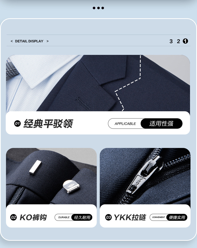 因身高和需求不一样,西裤出厂默认是未撬边,如需撬边请提前咨询客服,撬边裁剪后不退不换!
