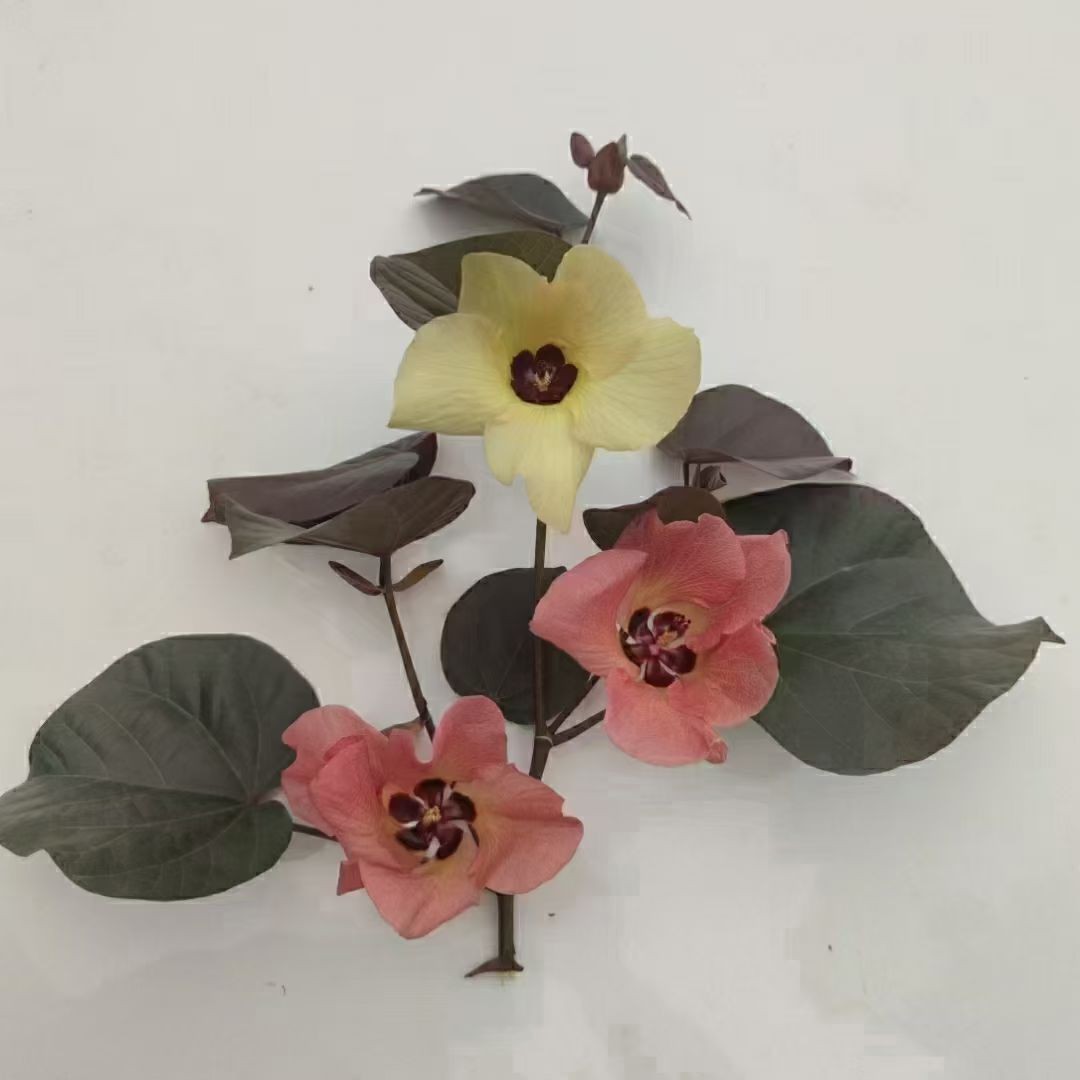 2408 база поставляет полностью коронованный красный лист, желтый гибискус, фиолетовый лист, Хуан Джин 18-25 см