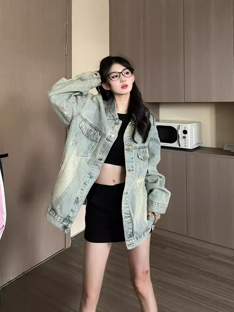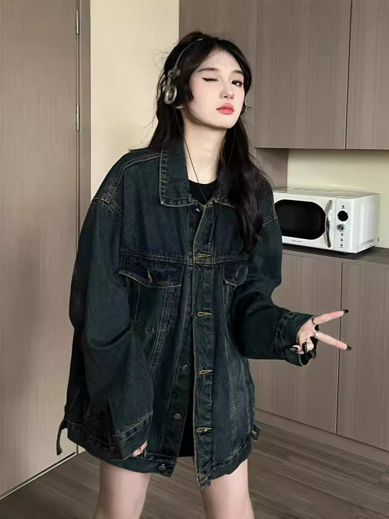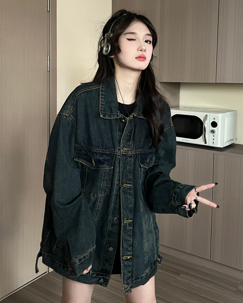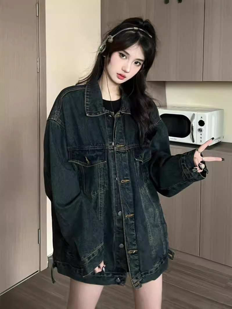 Гонконгская мойка джинсовая куртка женская весна и осень повседневная дикая конструкция ретро-старая свободная куртка с длинными рукавами топ