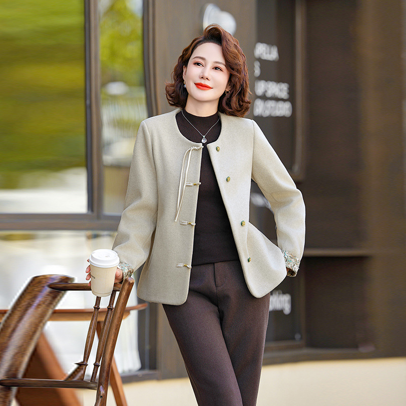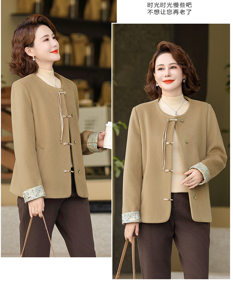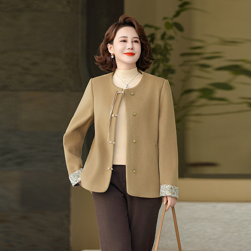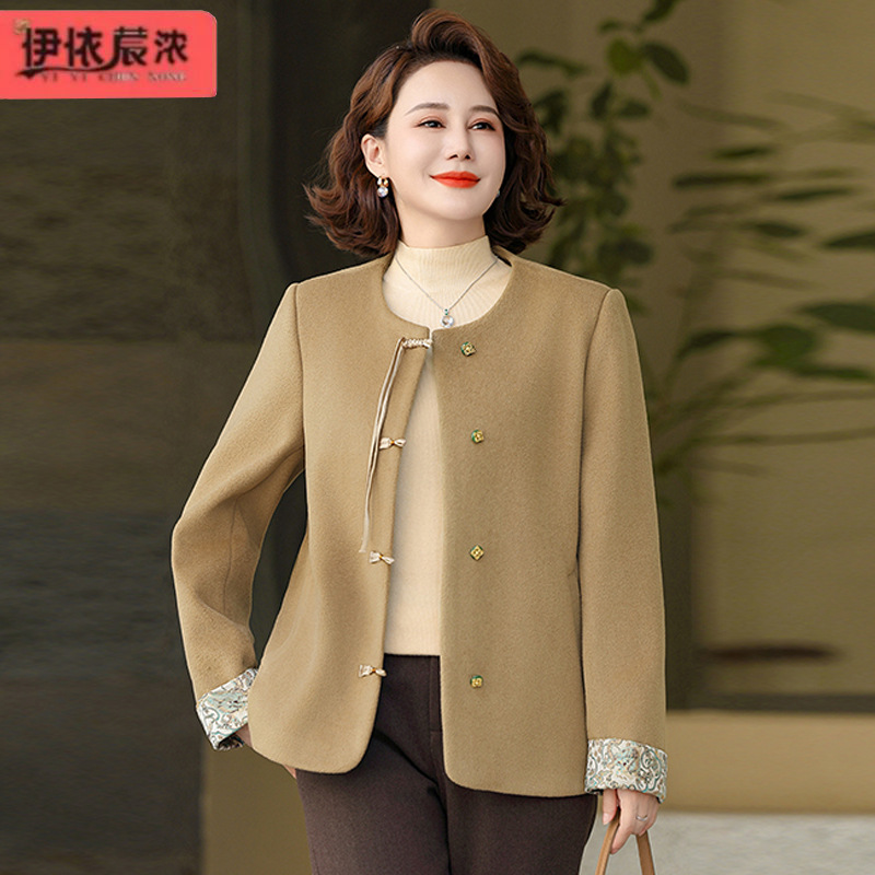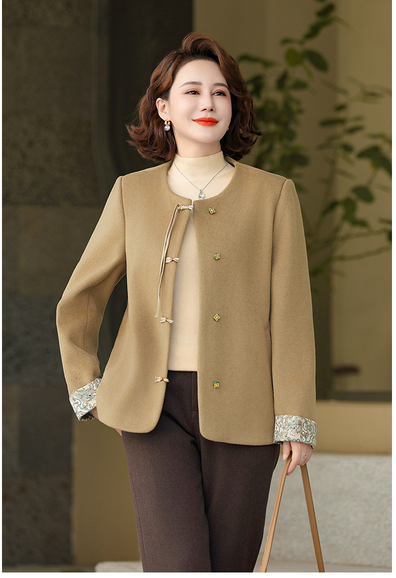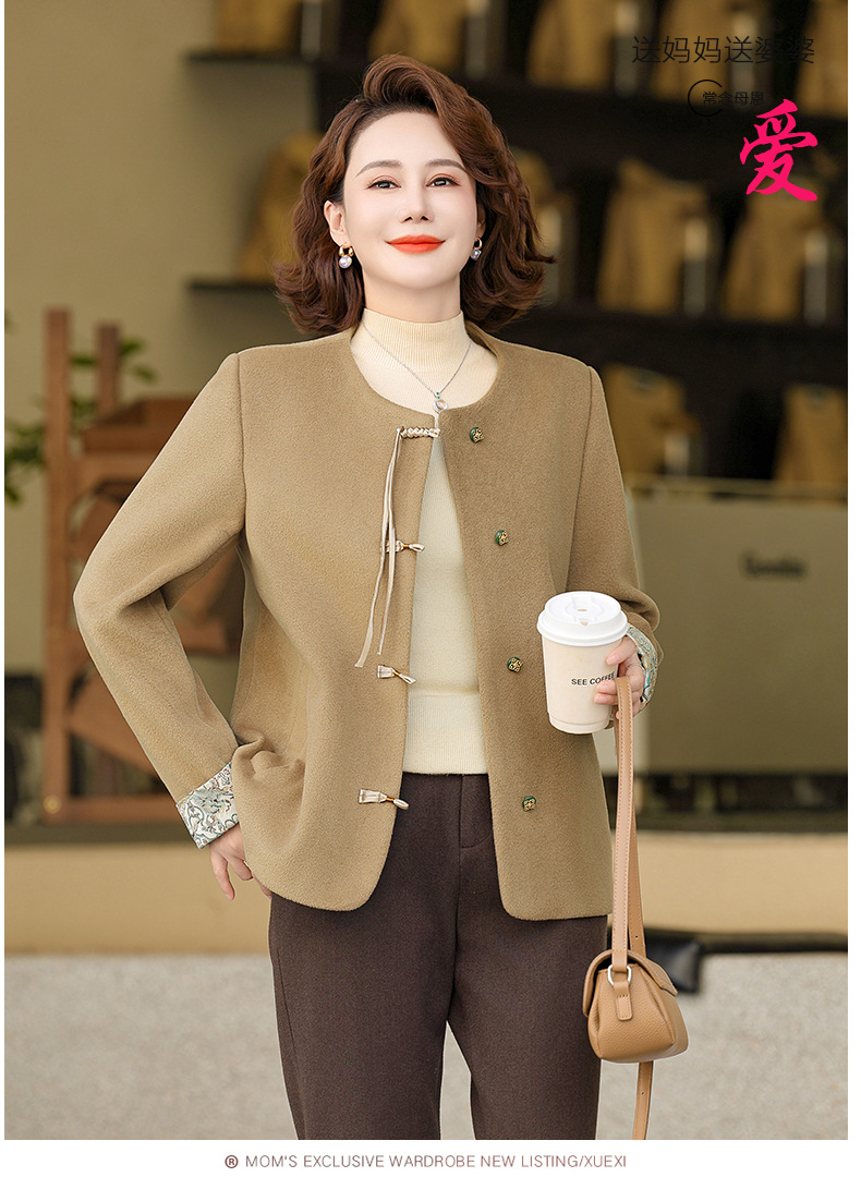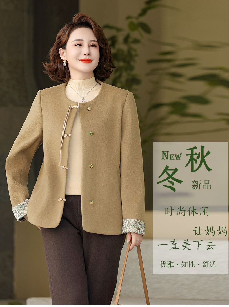 50-летняя мама в осенней одежде Новый китайский темпераментный пальто модный средний и пожилой женский короткий с круглым вырезом шерстяной топ женский