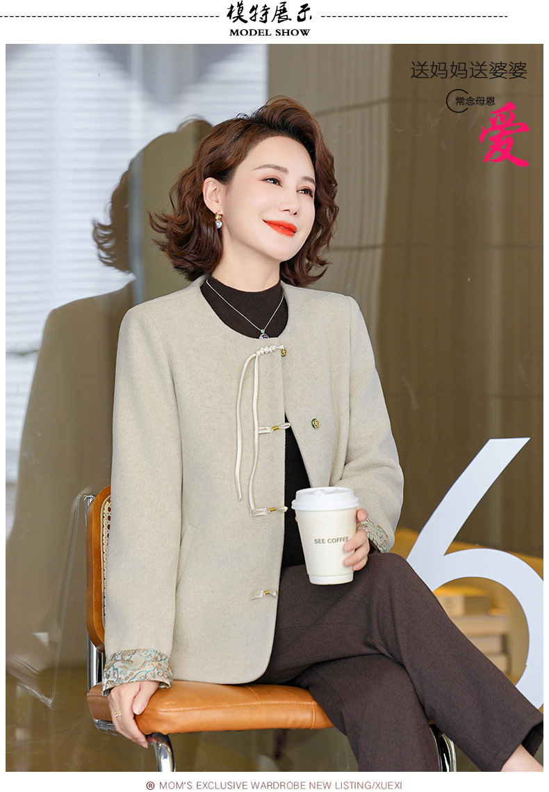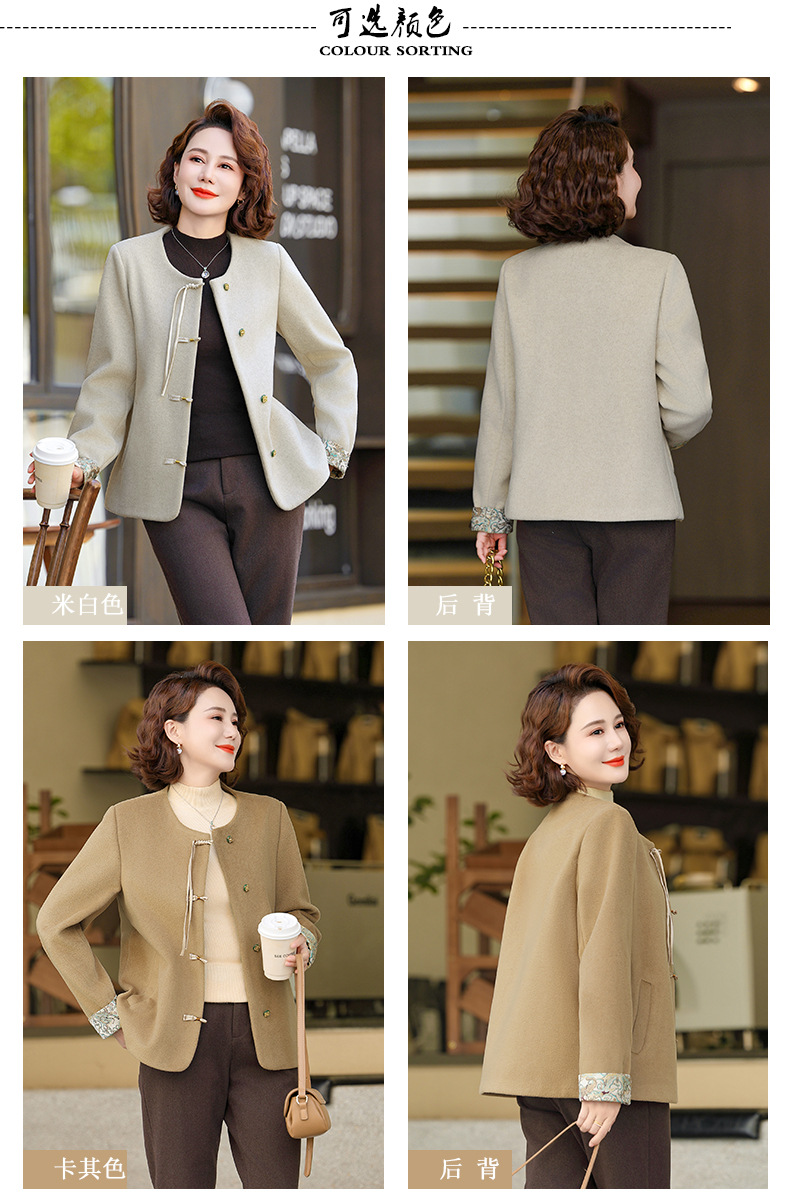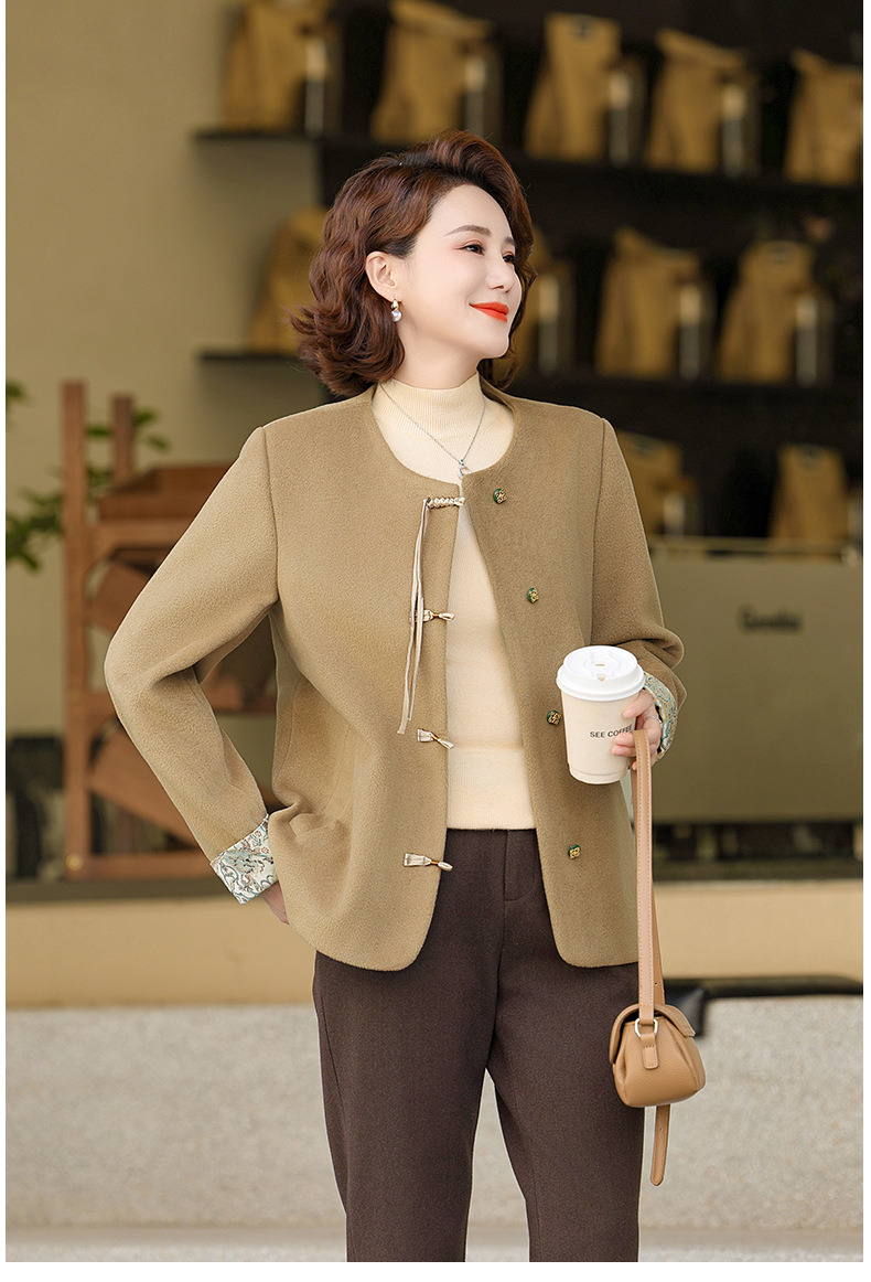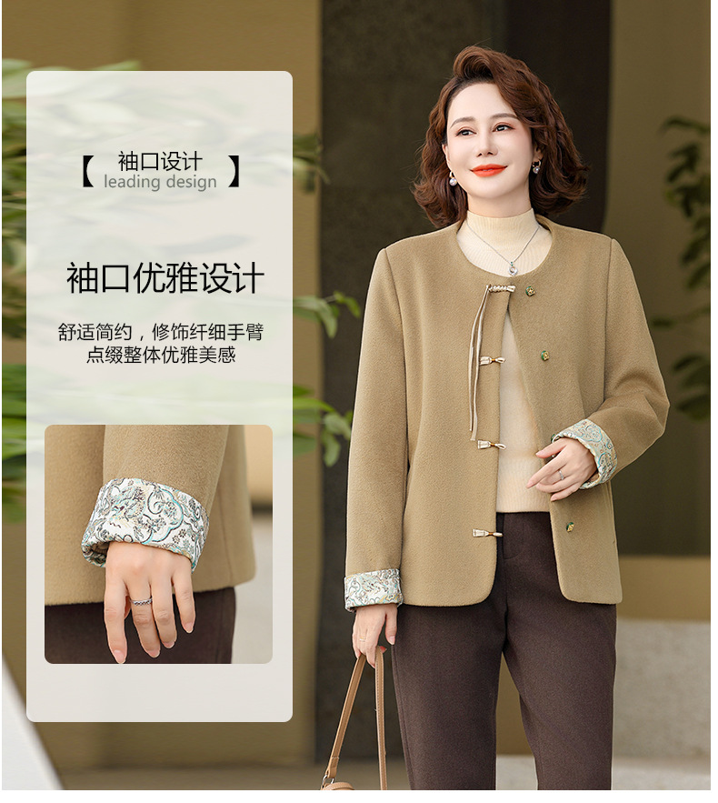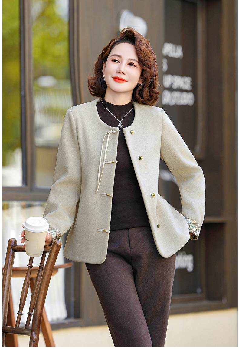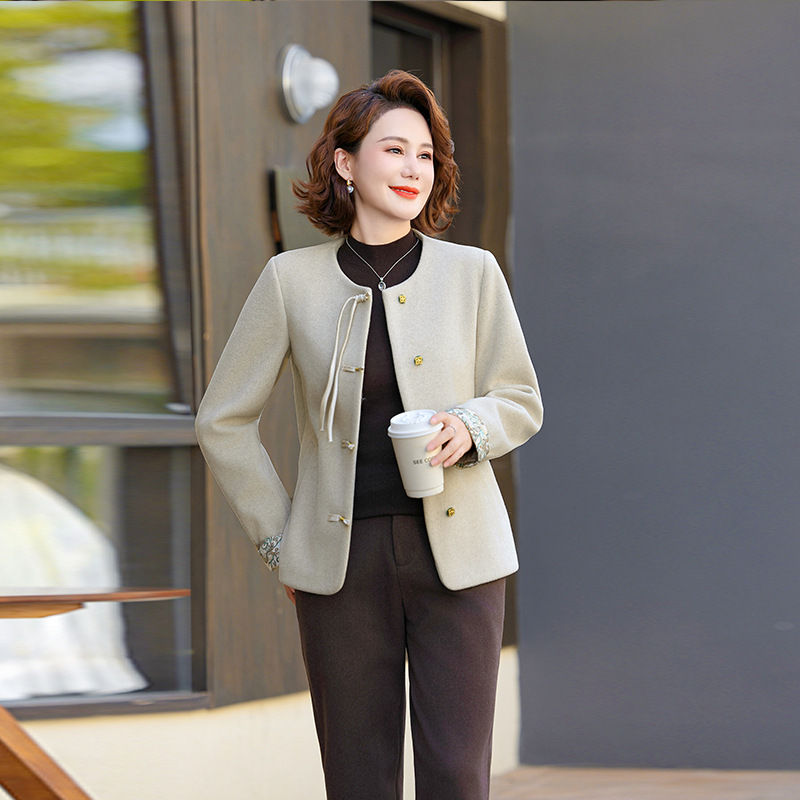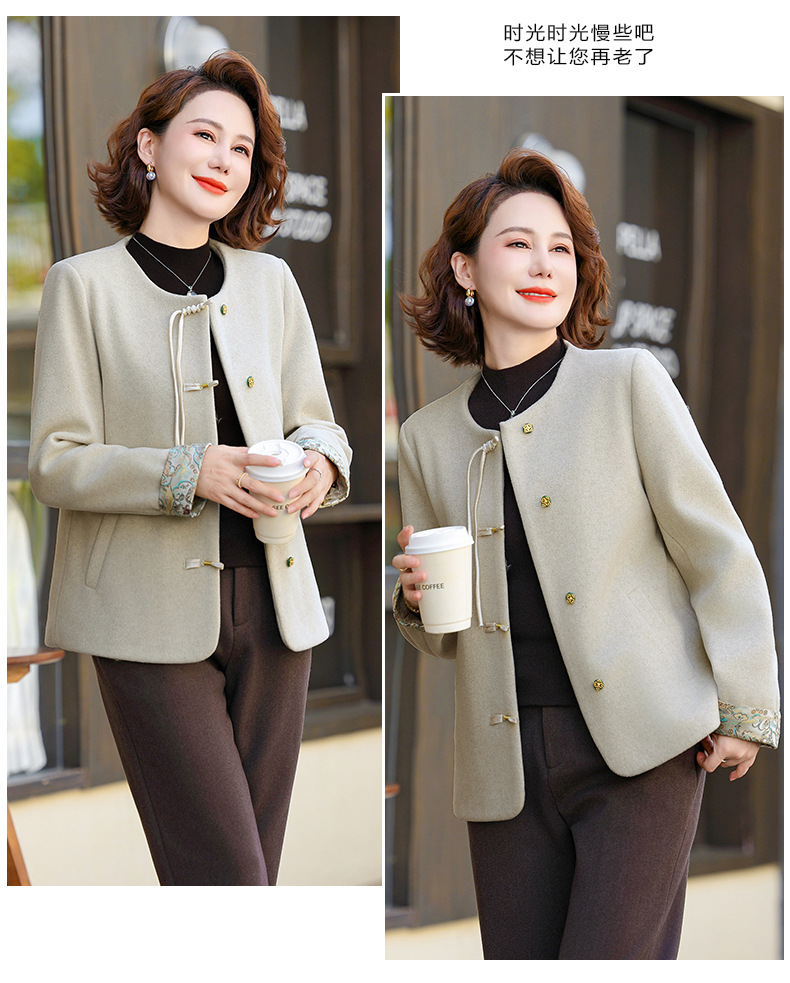 50-летняя мама в осенней одежде Новый китайский темпераментный пальто модный средний и пожилой женский короткий с круглым вырезом шерстяной топ женский