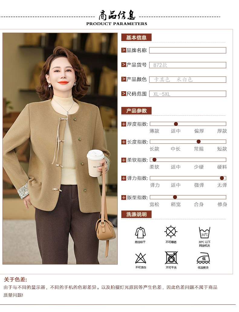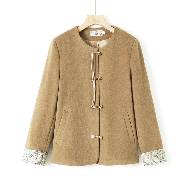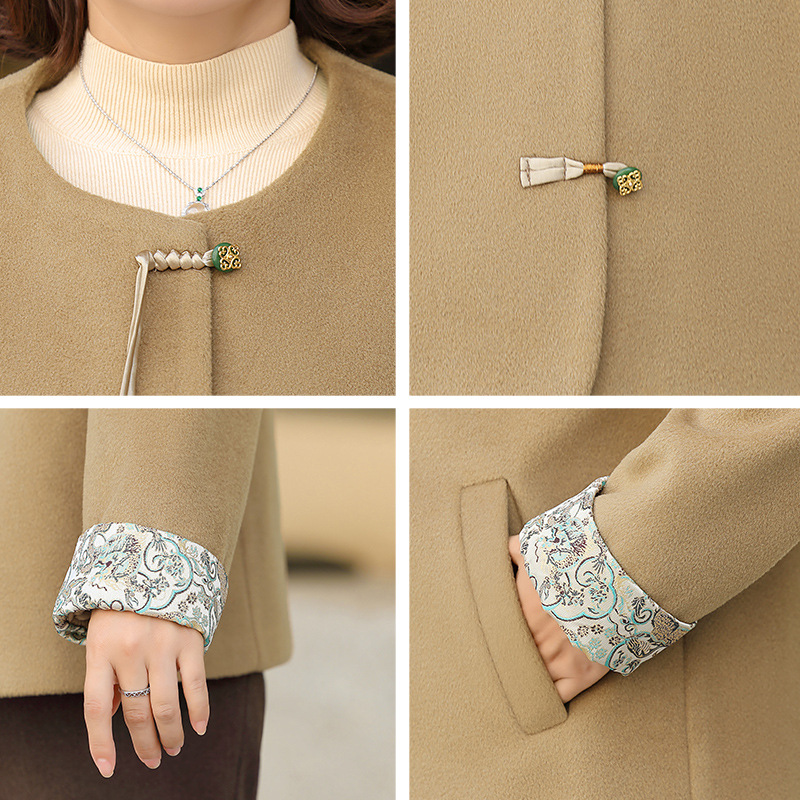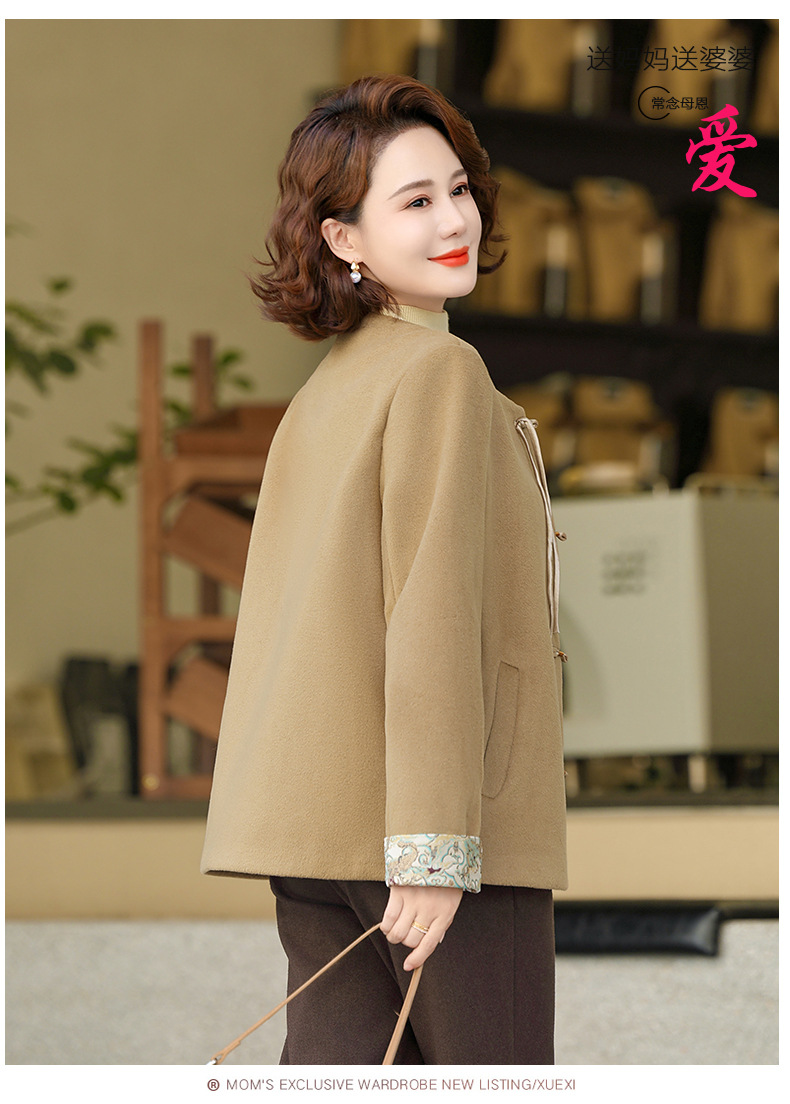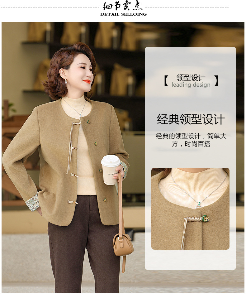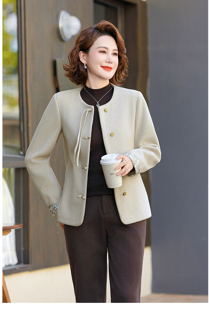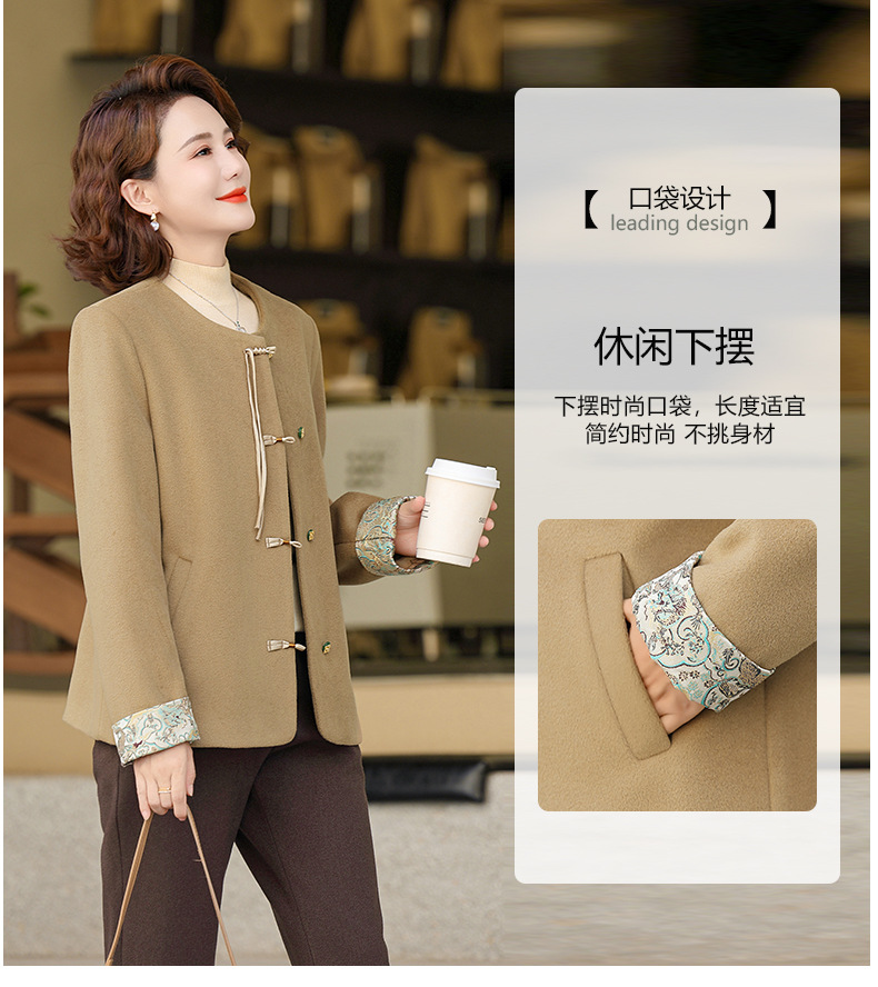 50-летняя мама в осенней одежде Новый китайский темпераментный пальто модный средний и пожилой женский короткий с круглым вырезом шерстяной топ женский