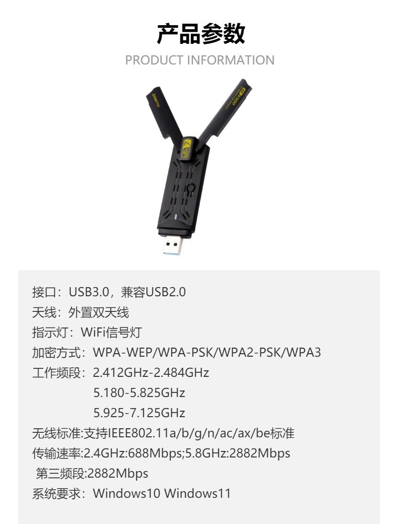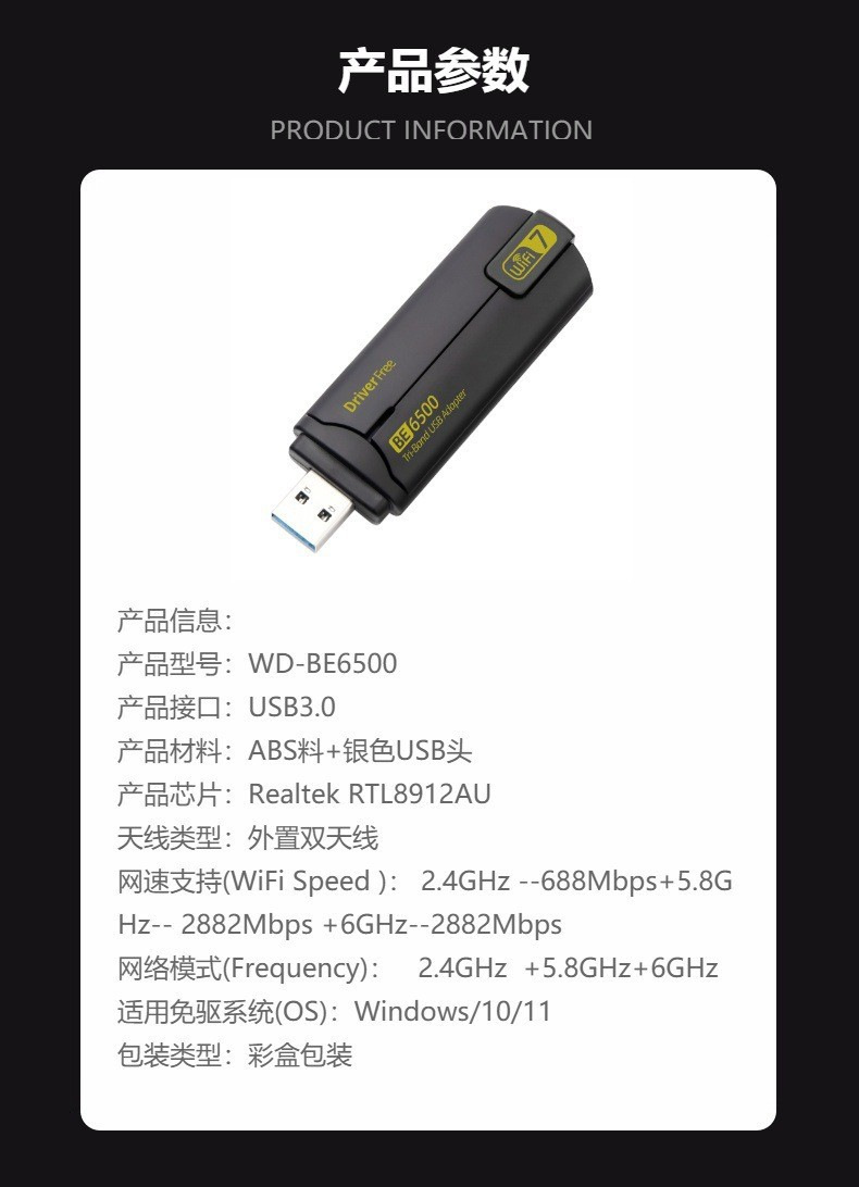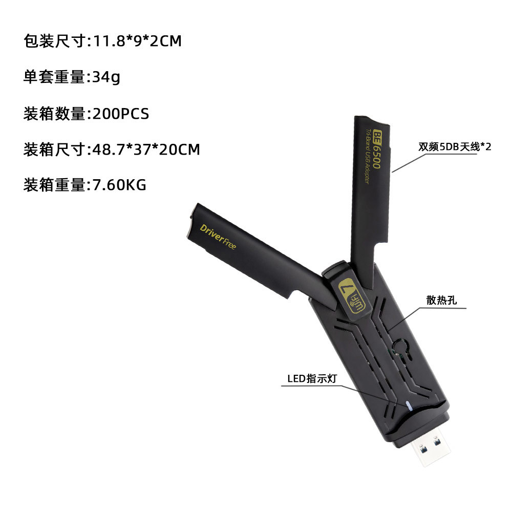WiFi7 трехдиапазонный BE6500 настольный компьютер ноутбук USB беспроводной сетевой карты без привода игровой сетевой карты 6500M