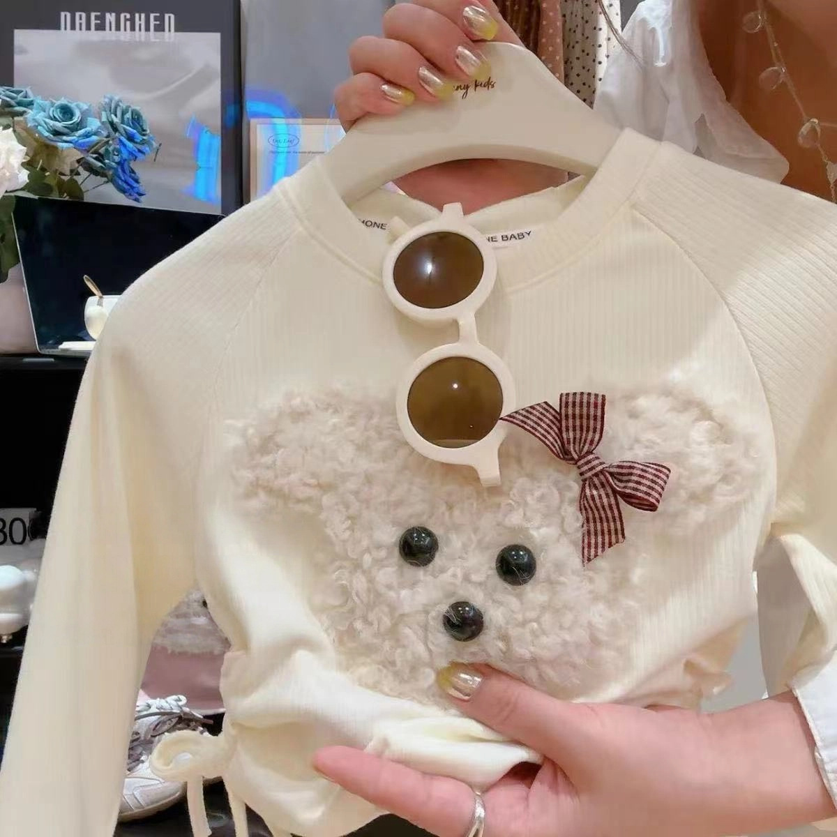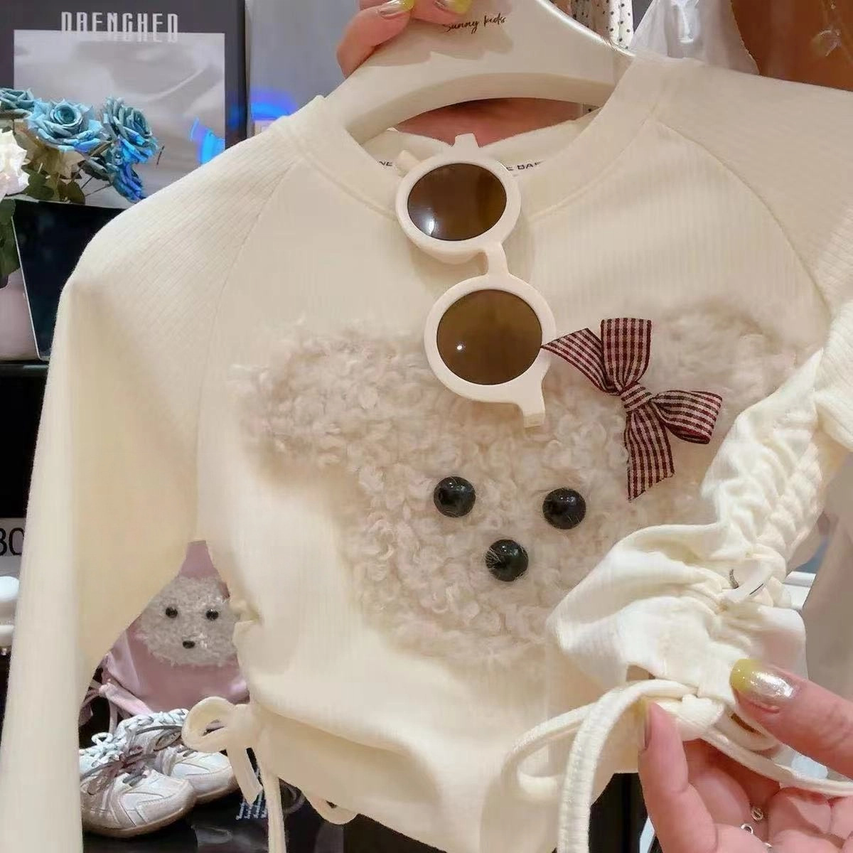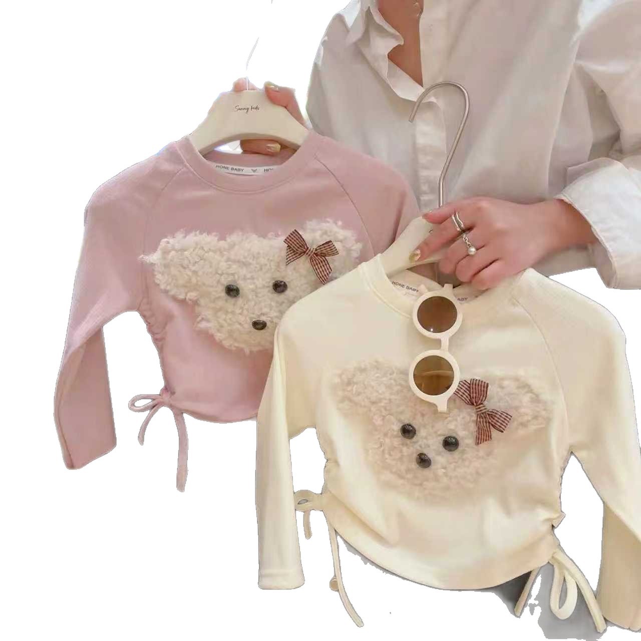 Новая весенне-осенняя модная рубашка реглан на шнурке для девочек, милая рубашка с рисунком Тедди для маленьких девочек, топ с длинными рукавами