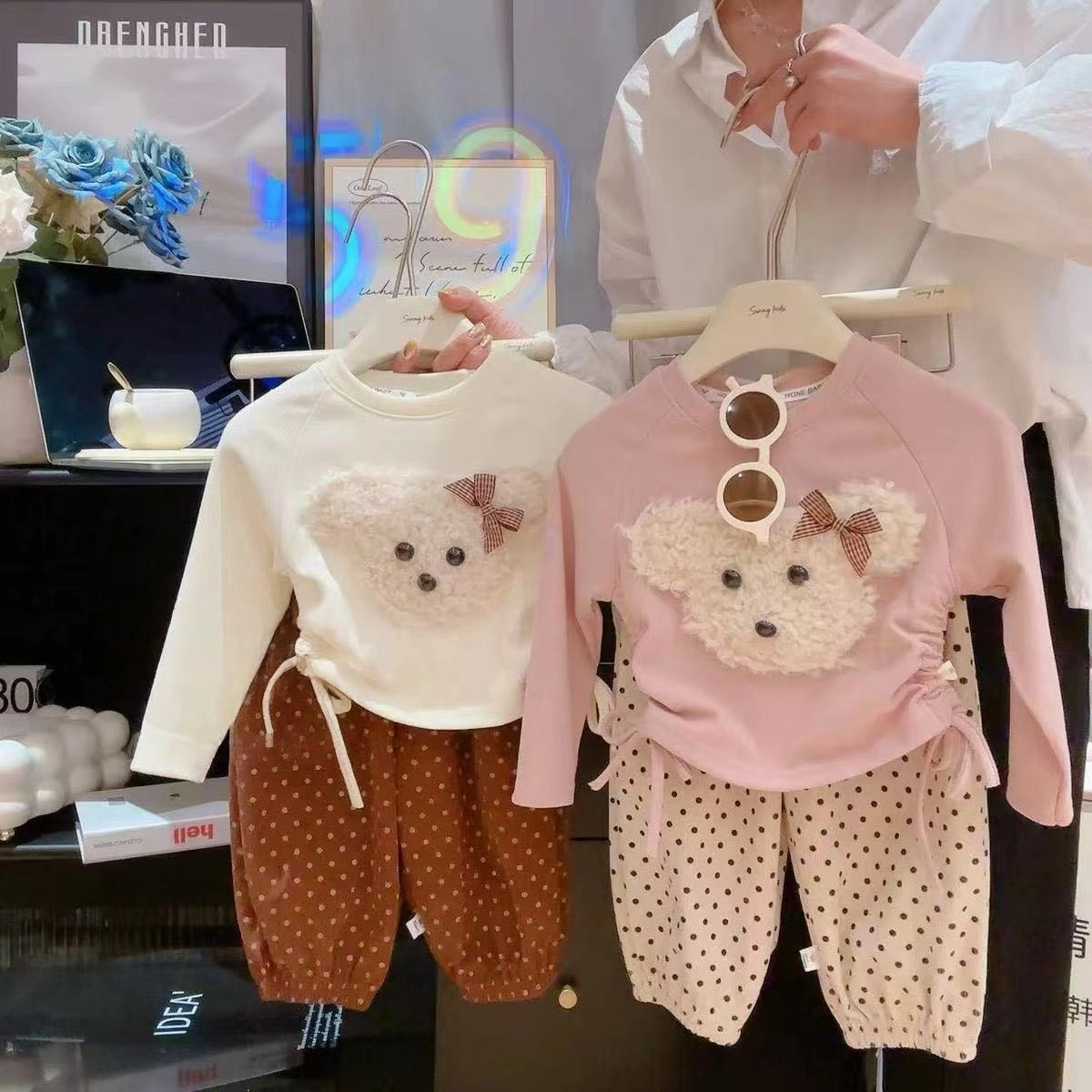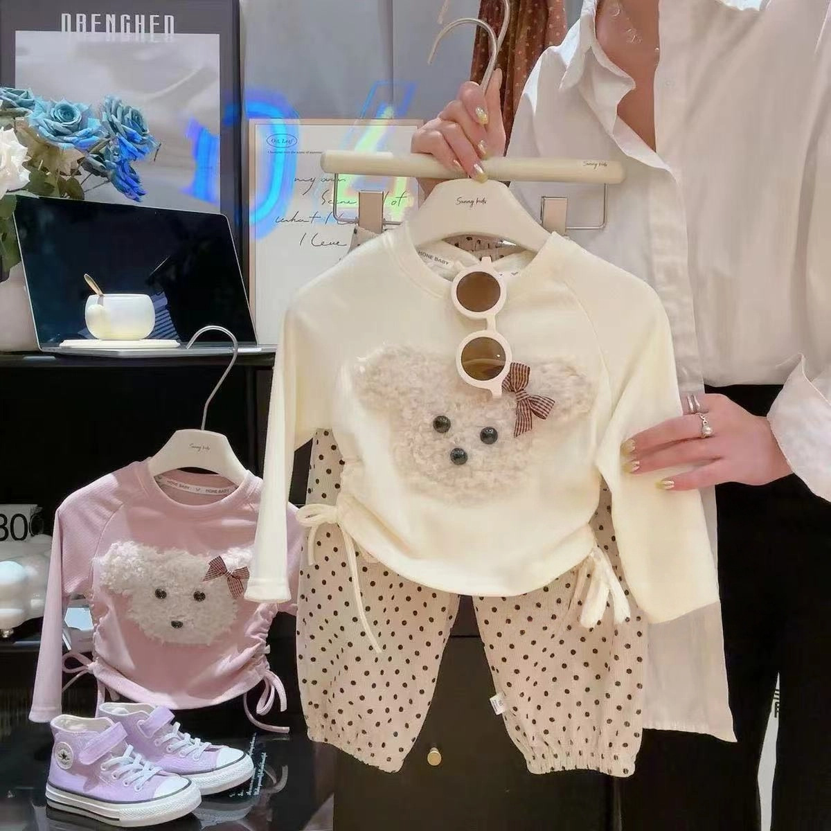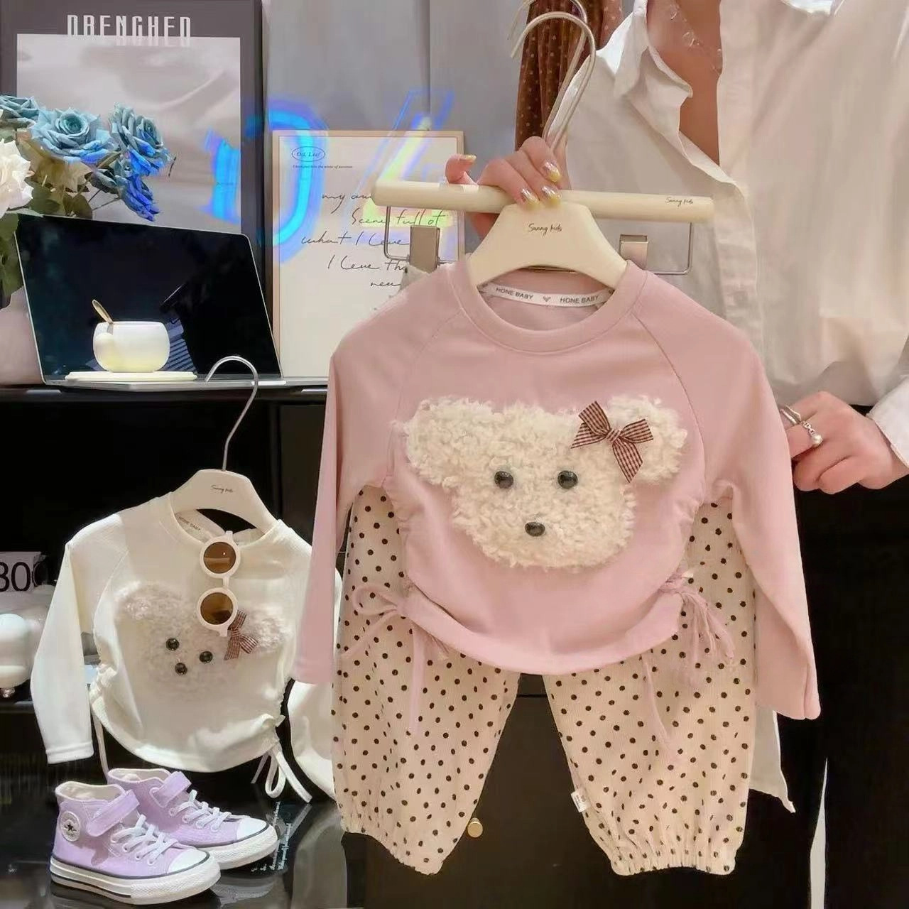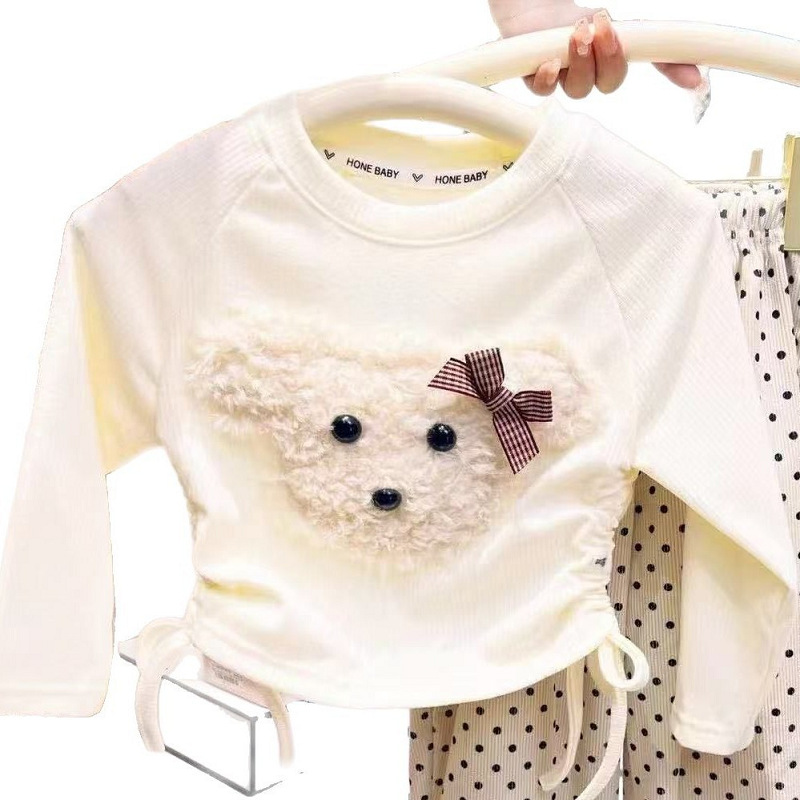 Новая весенне-осенняя модная рубашка реглан на шнурке для девочек, милая рубашка с рисунком Тедди для маленьких девочек, топ с длинными рукавами