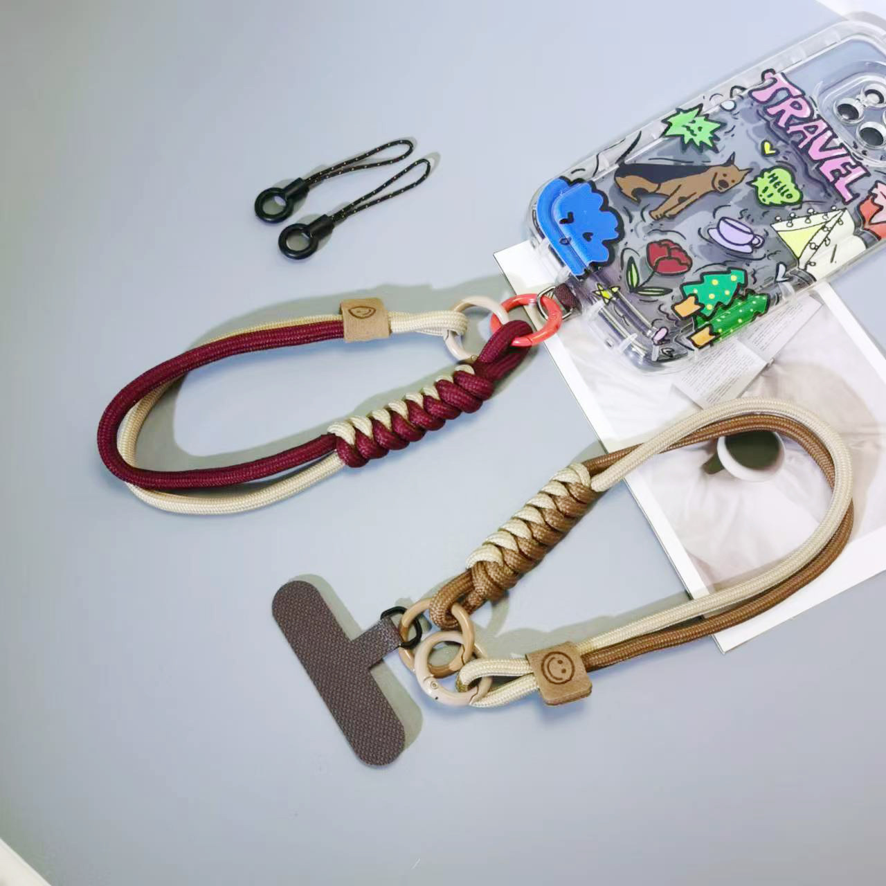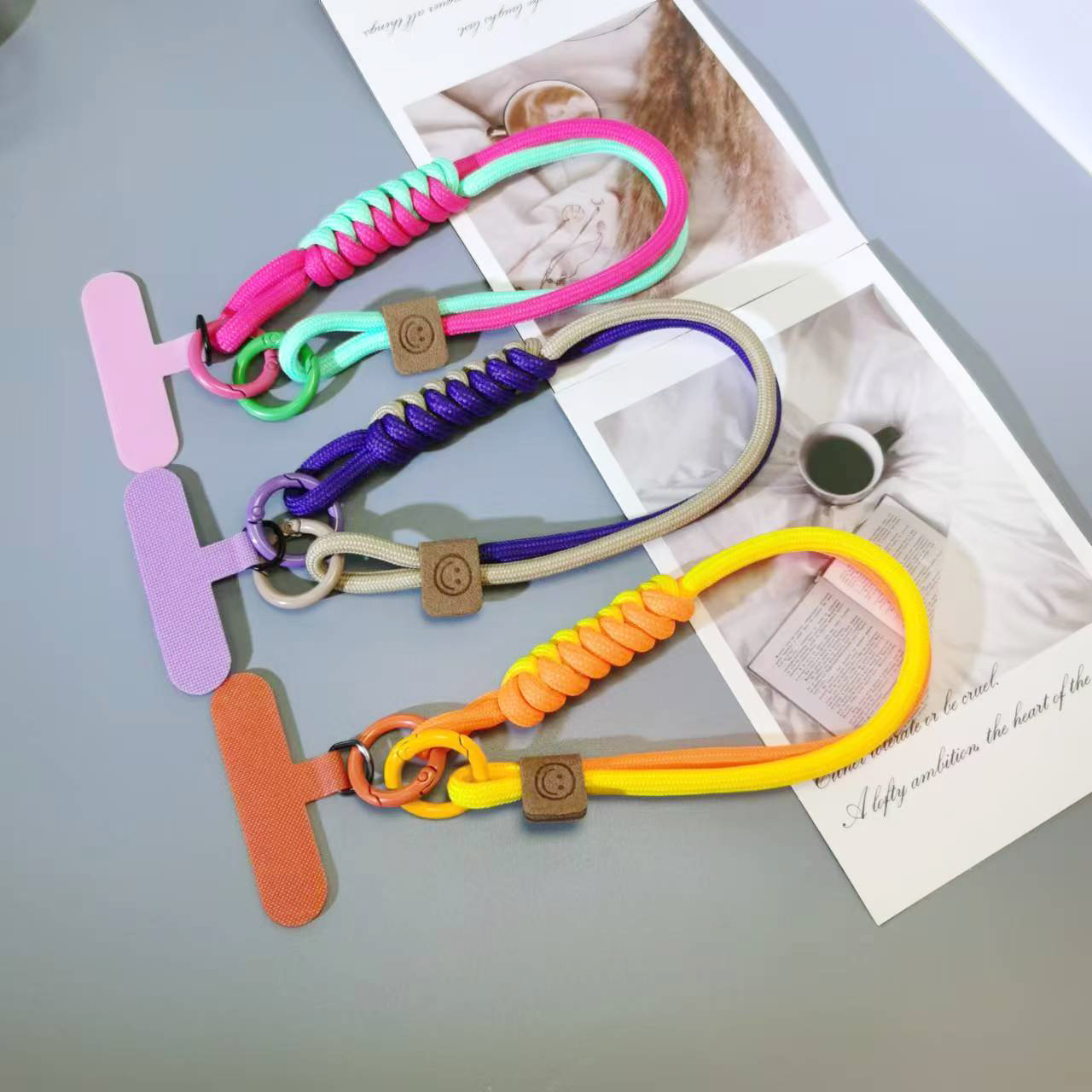 Плетеный чехол для мобильного телефона контрастного цвета, универсальный ремешок, короткий портативный брелок, универсальный кулон, ювелирная цепочка против падения, веревка для бутылки с водой