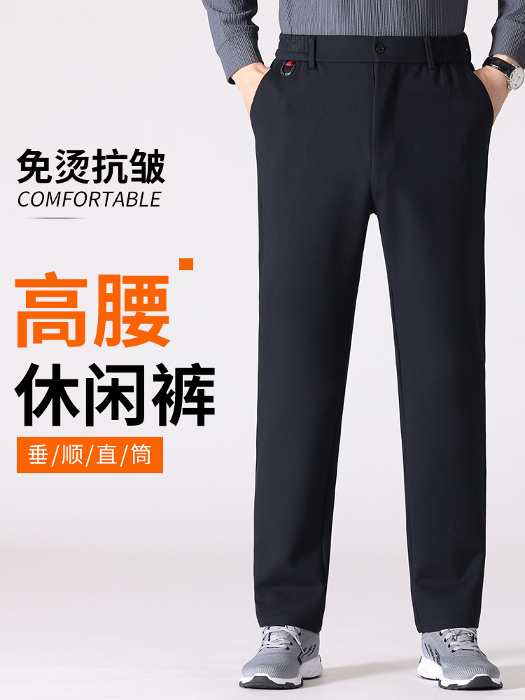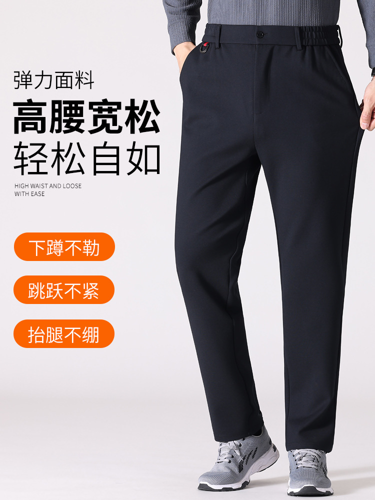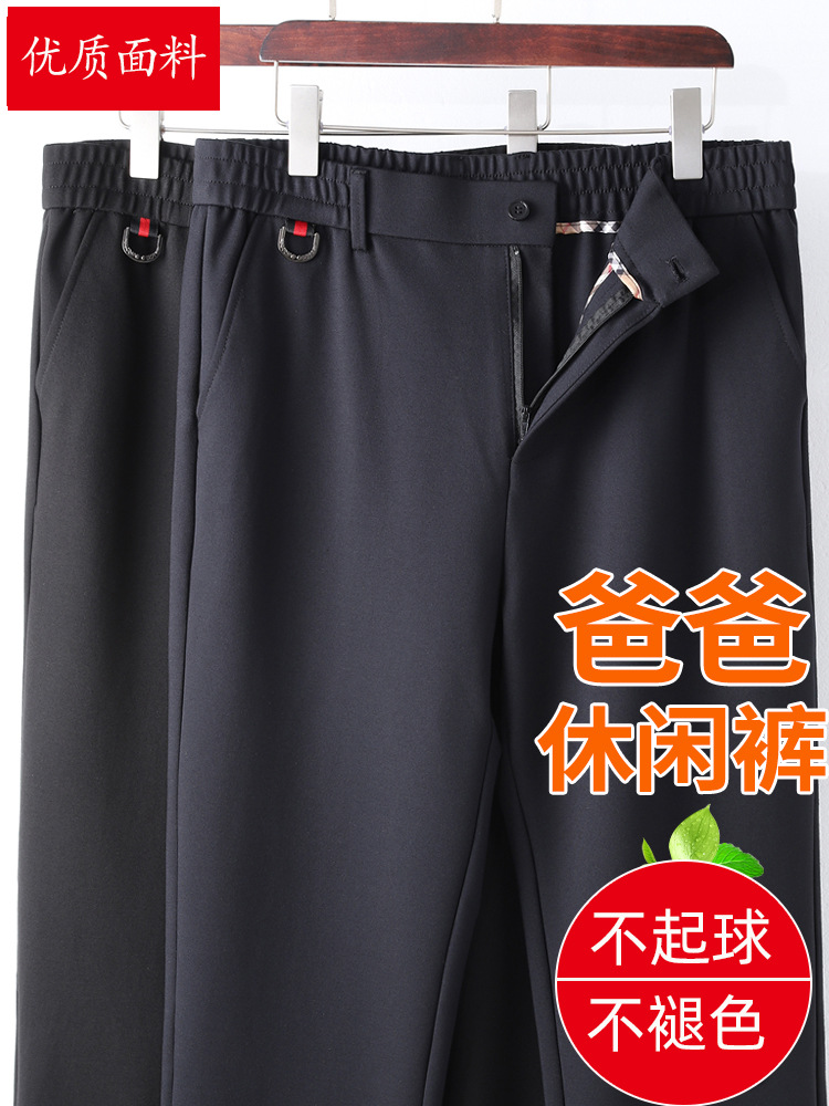Брюки для мужчин среднего возраста, повседневные, свободные, больших размеров, весенне-осенние, длинные, для пожилых людей, с высокой талией