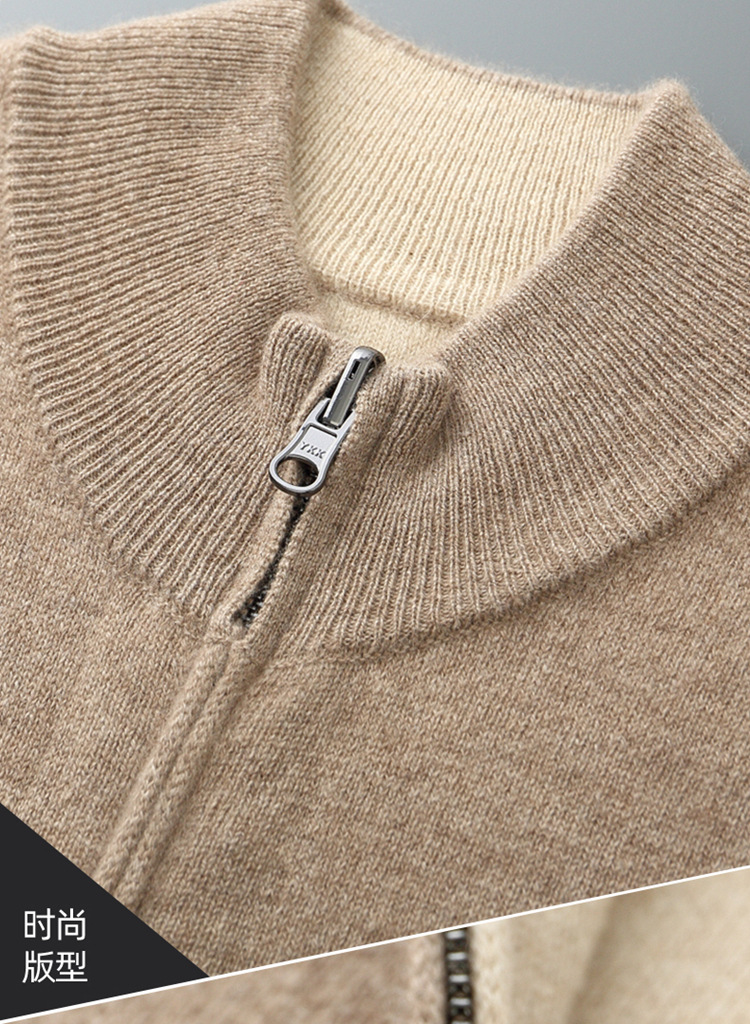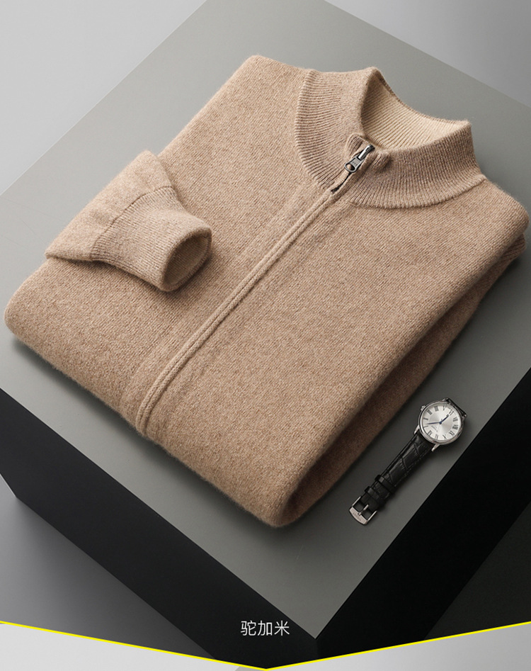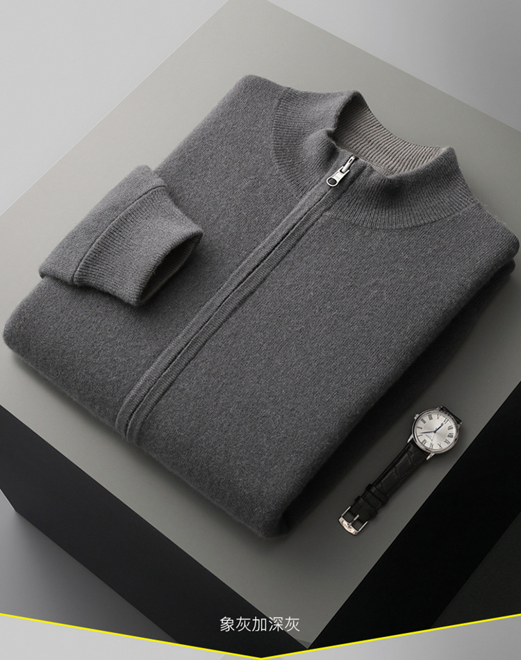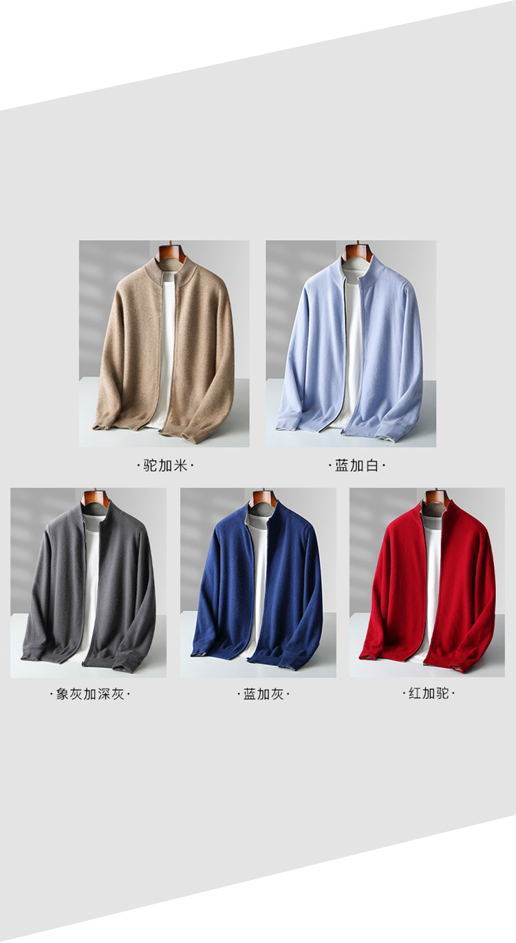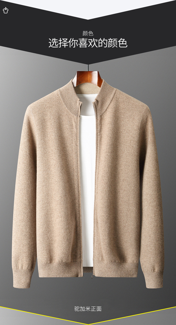 Новый осенне-зимний шерстяной кардиган мужской, с воротником-стойкой, на молнии, вязаный свитер, однотонная куртка, теплый свободный кашемировый топ
