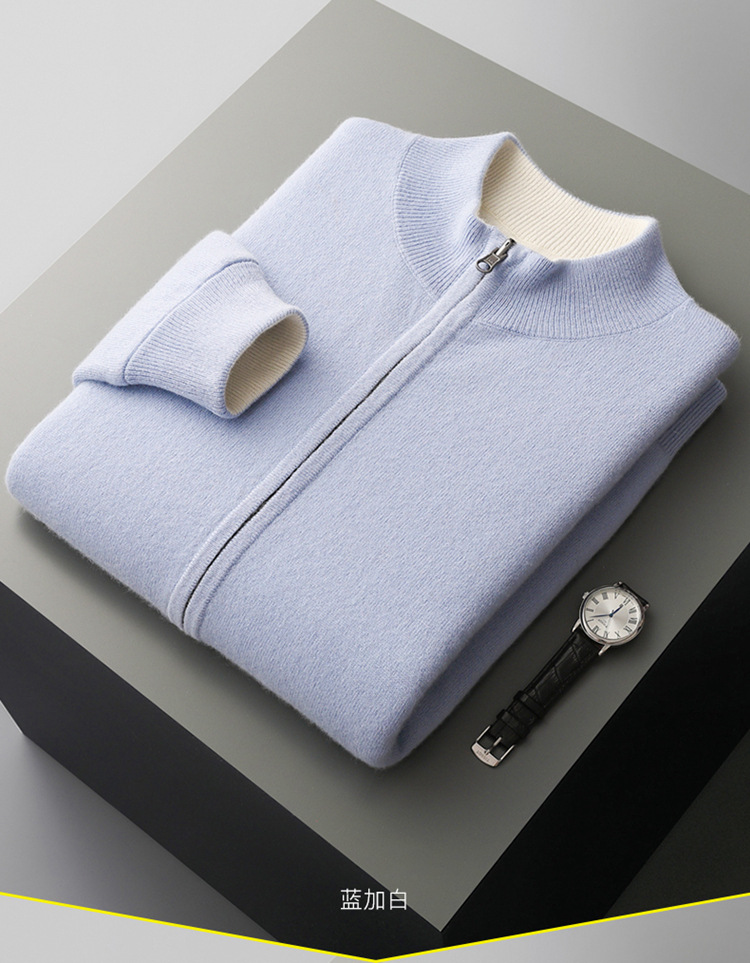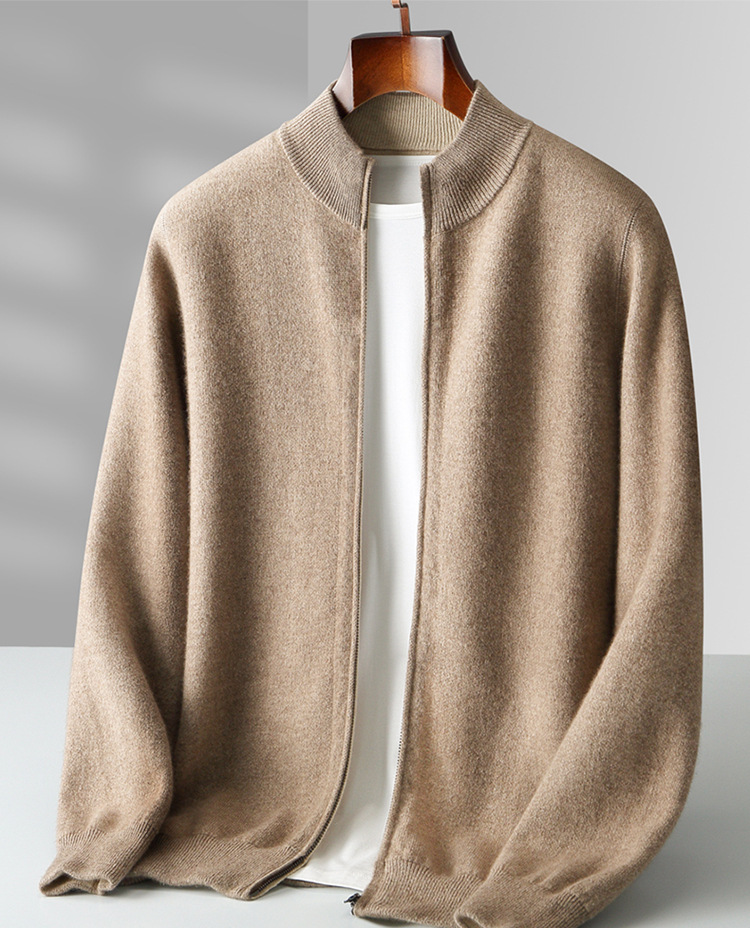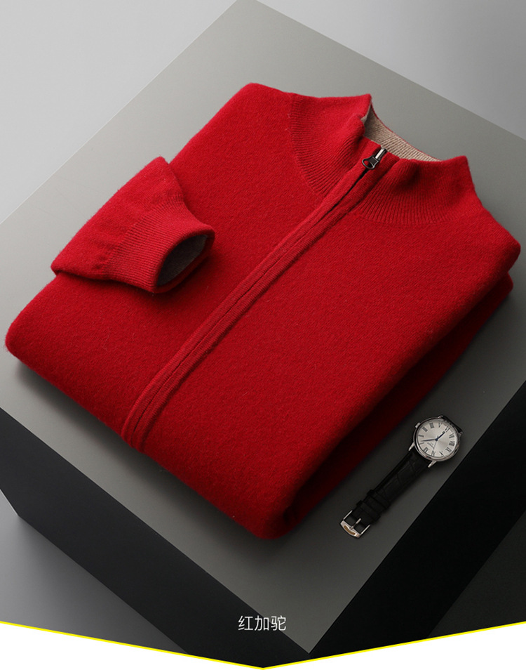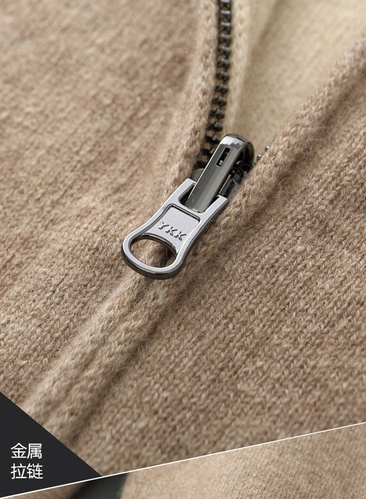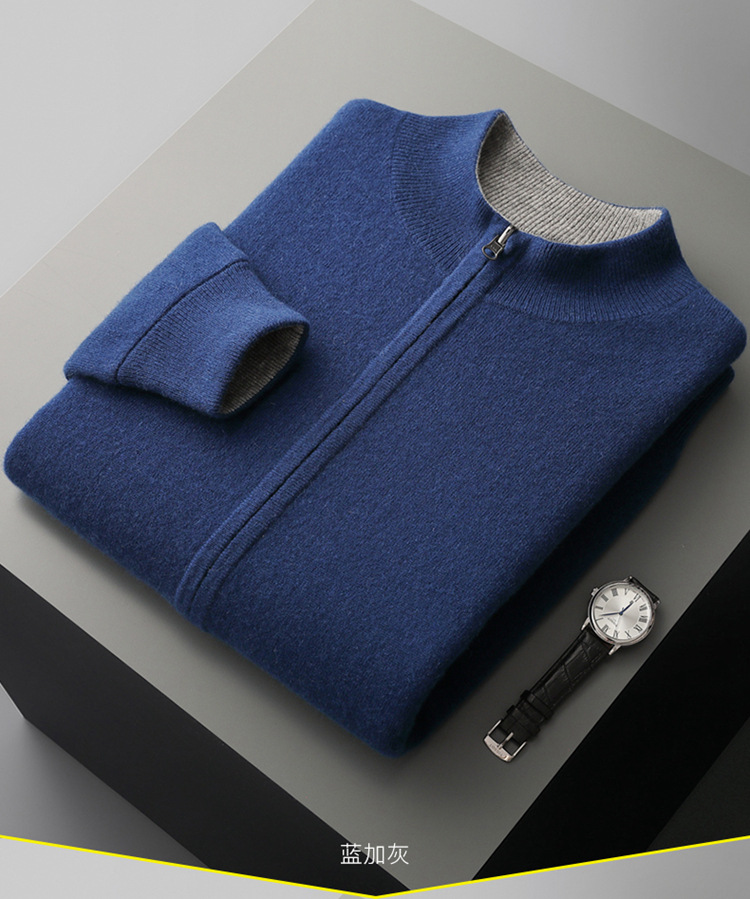 Новый осенне-зимний шерстяной кардиган мужской, с воротником-стойкой, на молнии, вязаный свитер, однотонная куртка, теплый свободный кашемировый топ