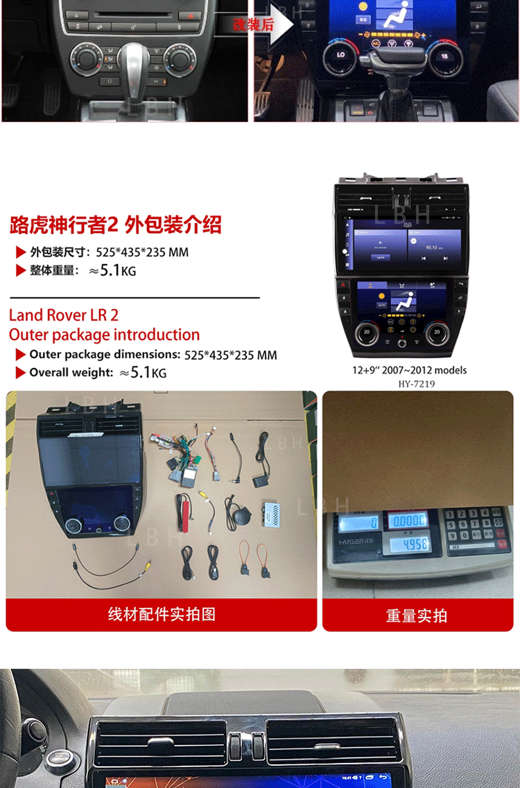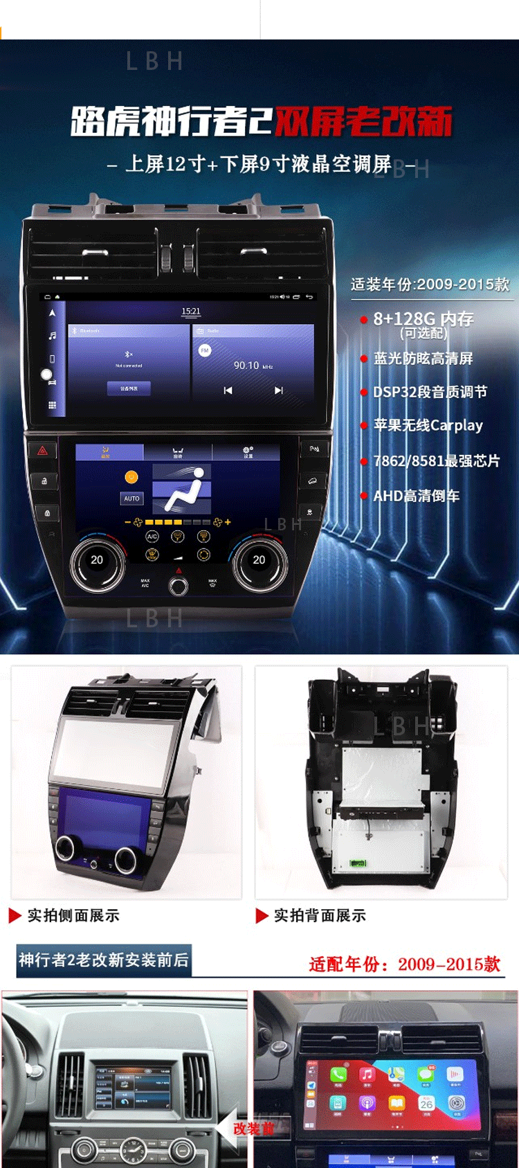 Подходит для 09-15 Land Rover Freelander 2 L359 12 "дюймовый верхний экран 9" нижний экран ЖК-кондиционер