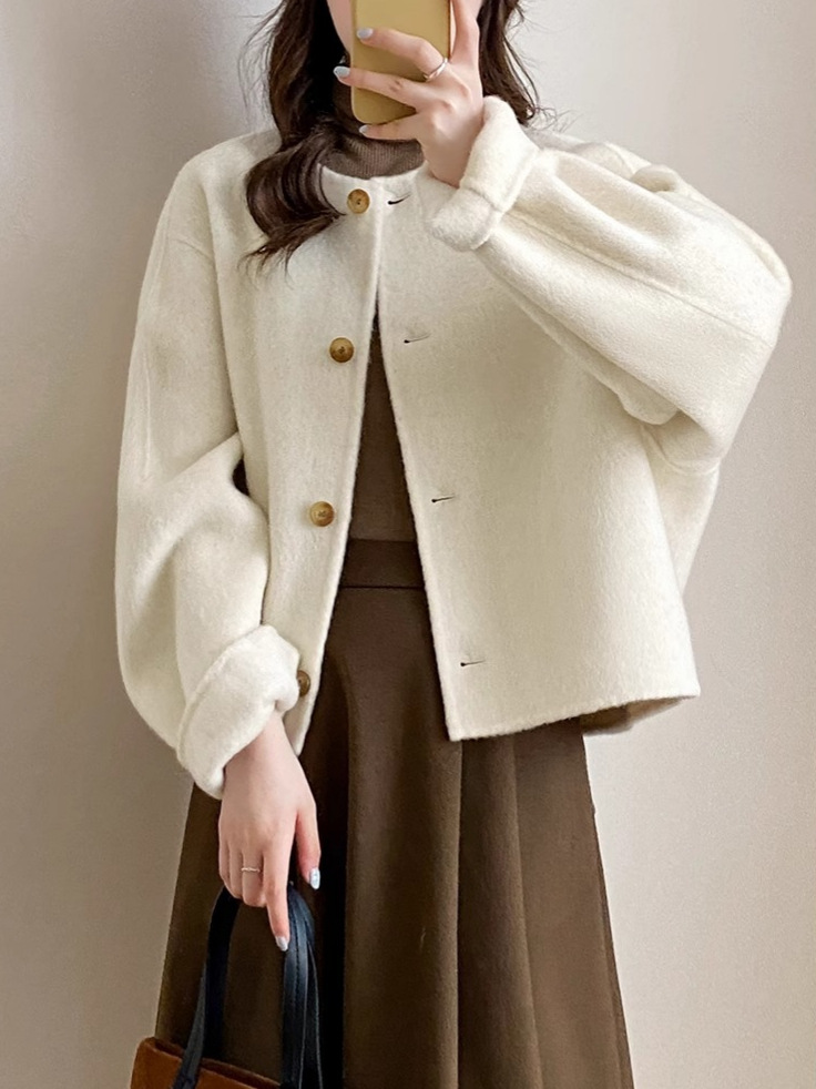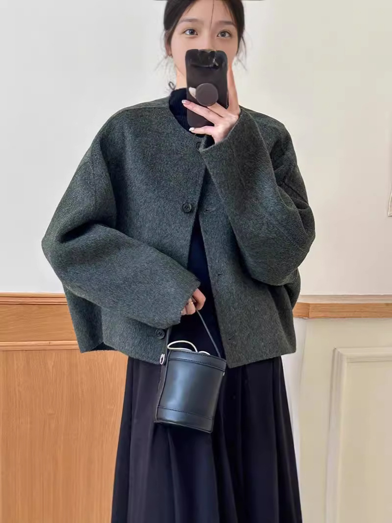 Новый двухсторонний шерстяной пальто короткий маленький большой рукав профиль утолщенная кашемировая двухсторонняя длинная шерстяная теплая куртка