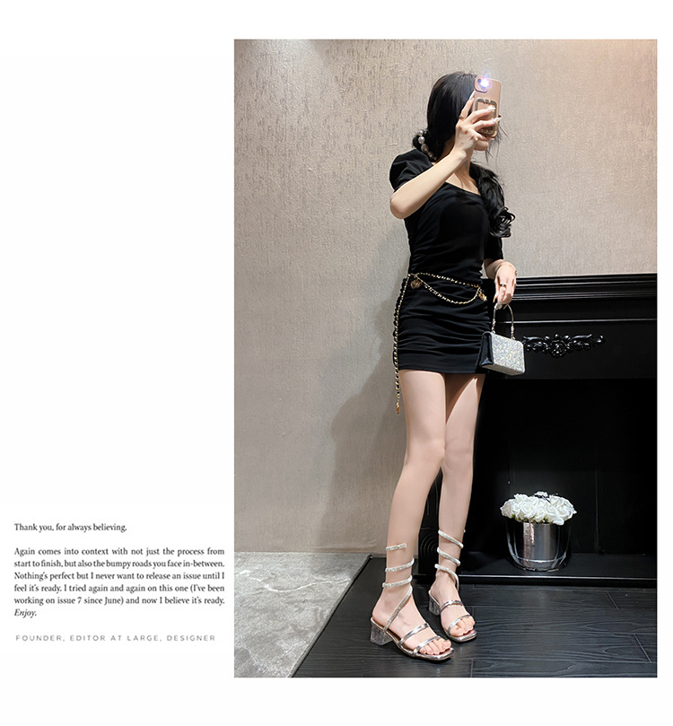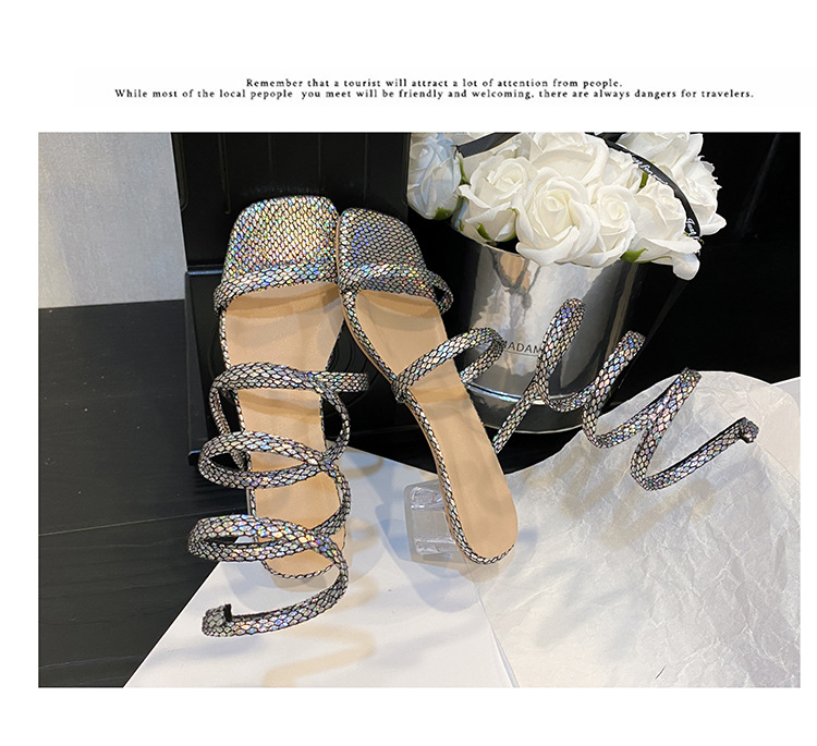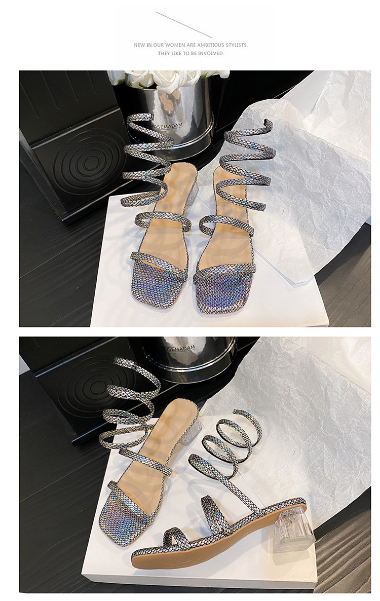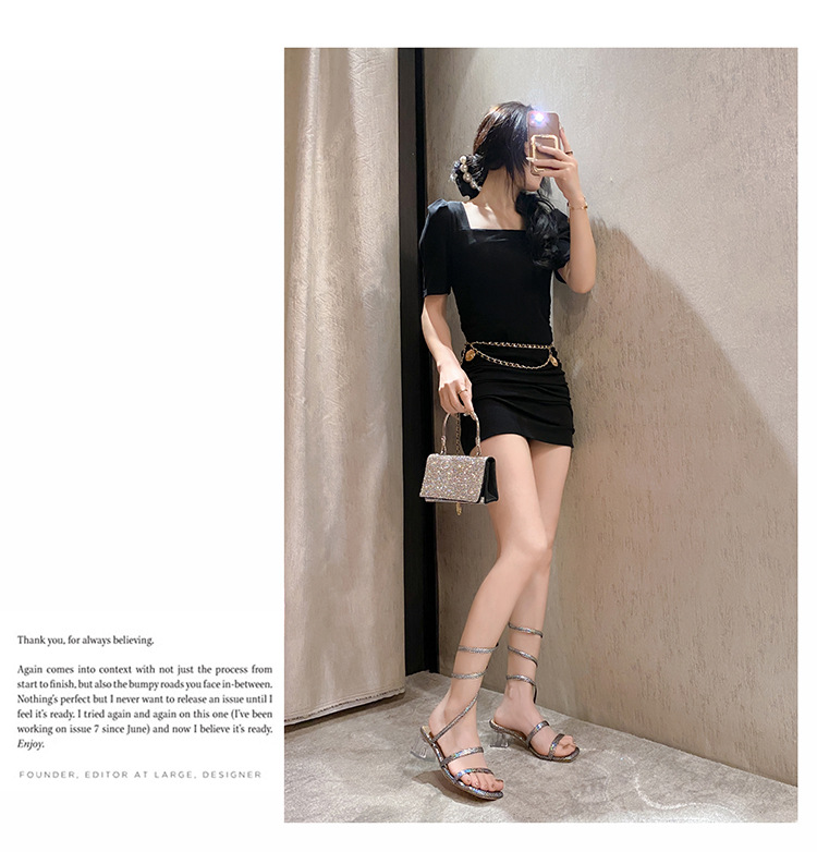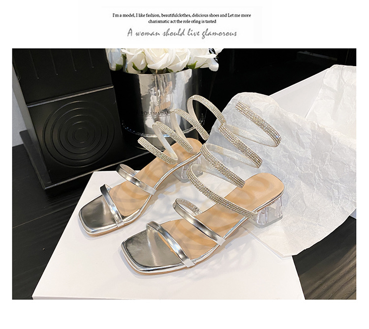 Летние сандалии женский 2024 новый фея ветра дикие корейские модные стразы толстые каблуки змеевидные римские сандалии
