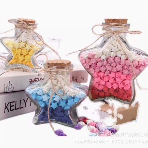 Рекламная стеклянная звезда бутылка стеклянная пятиконечная бутылка желаний с деревянной пробкой креативная стеклянная бутылка оптом