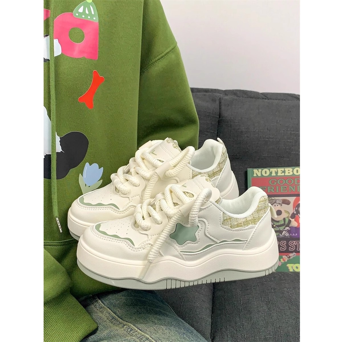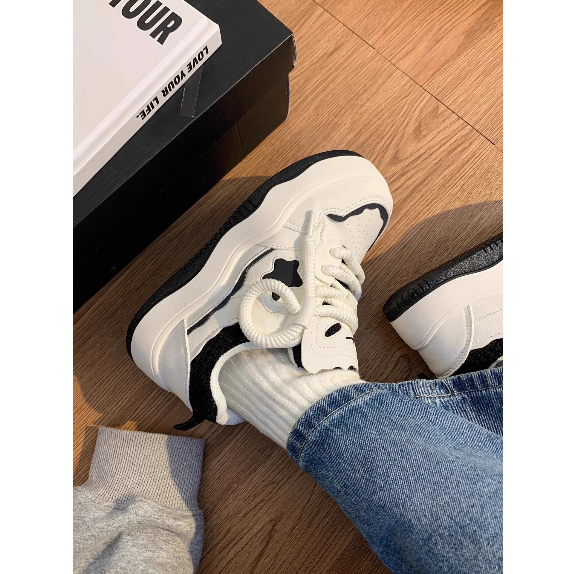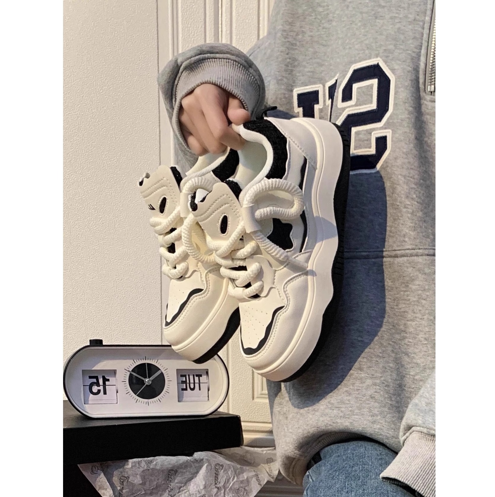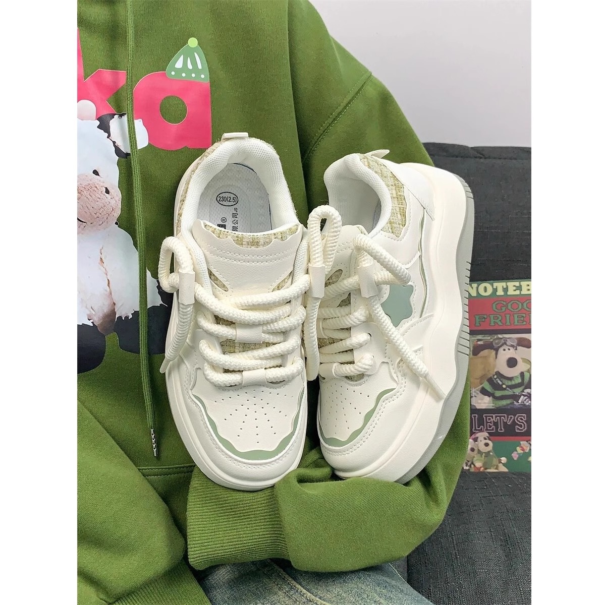 Спортивная женская обувь в корейском стиле, новинка 2025 года, популярная женская обувь, кроссовки на толстой подошве с трибутомой, нишевые белые туфли в американском стиле ретро