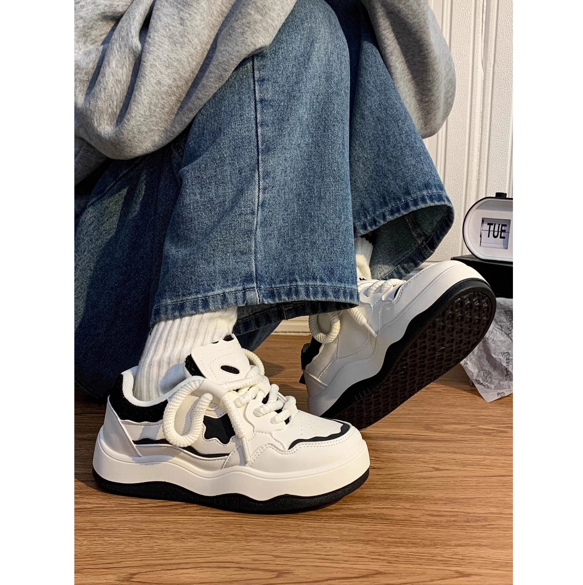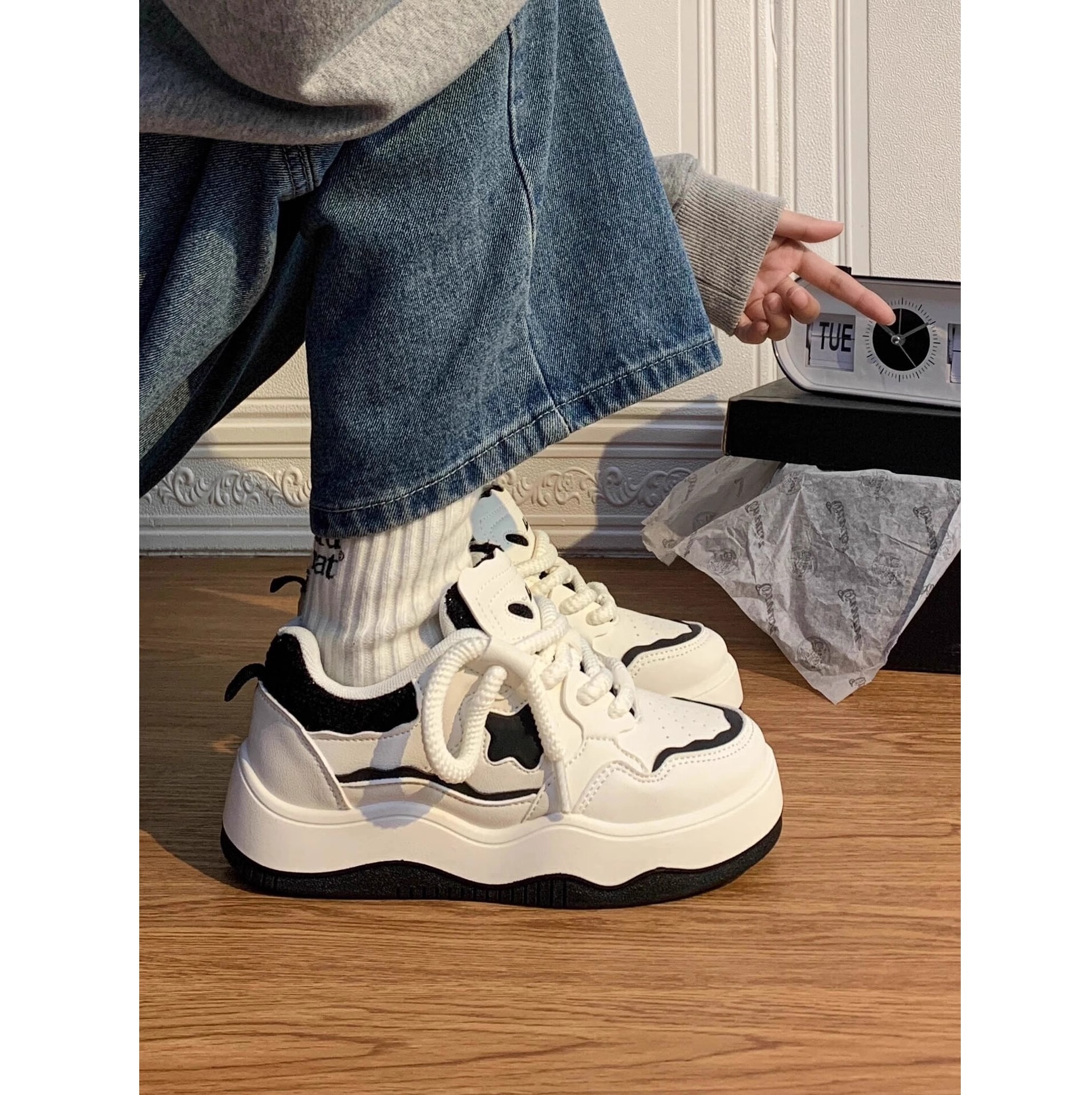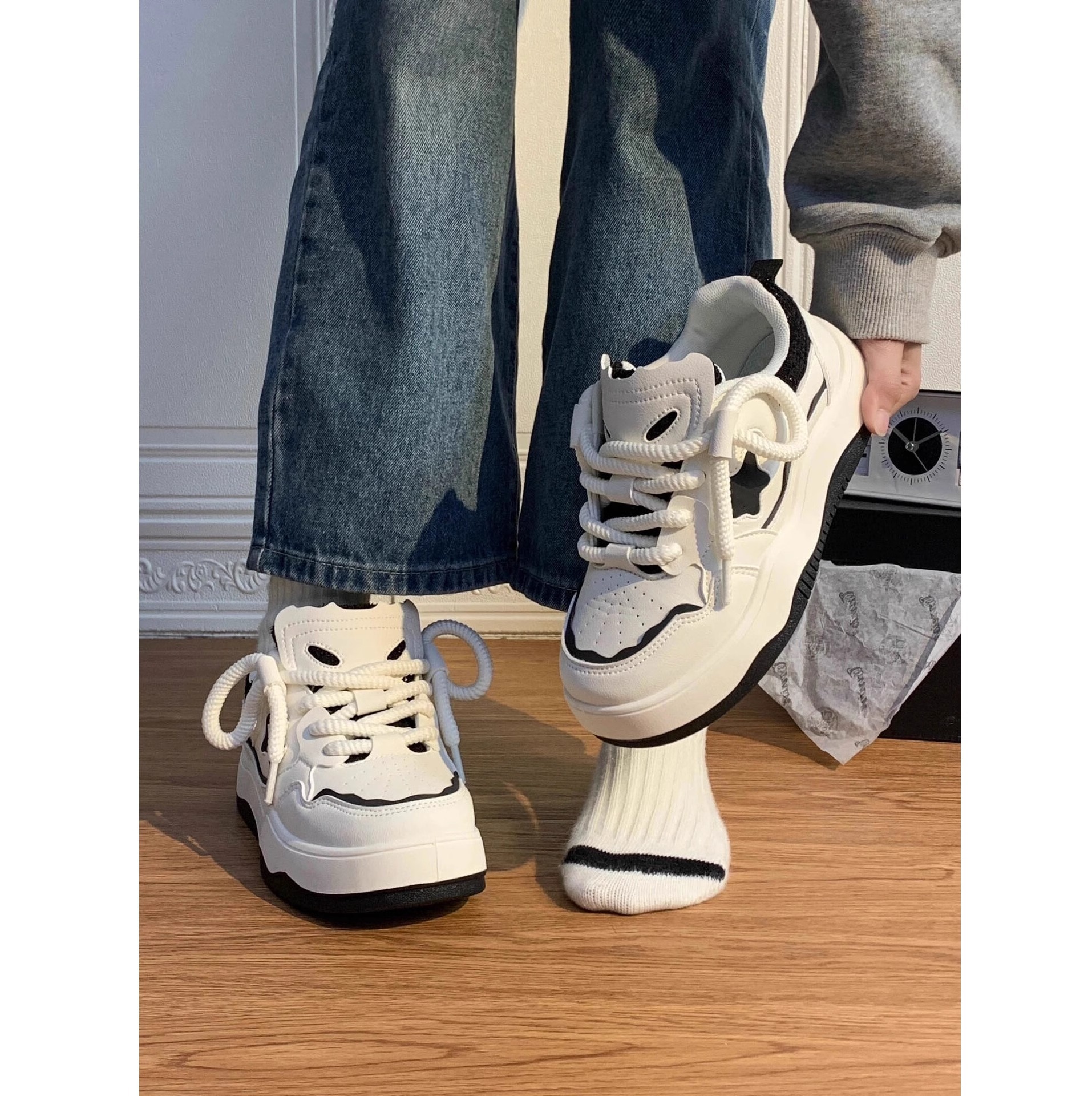 Спортивная женская обувь в корейском стиле, новинка 2025 года, популярная женская обувь, кроссовки на толстой подошве с трибутомой, нишевые белые туфли в американском стиле ретро