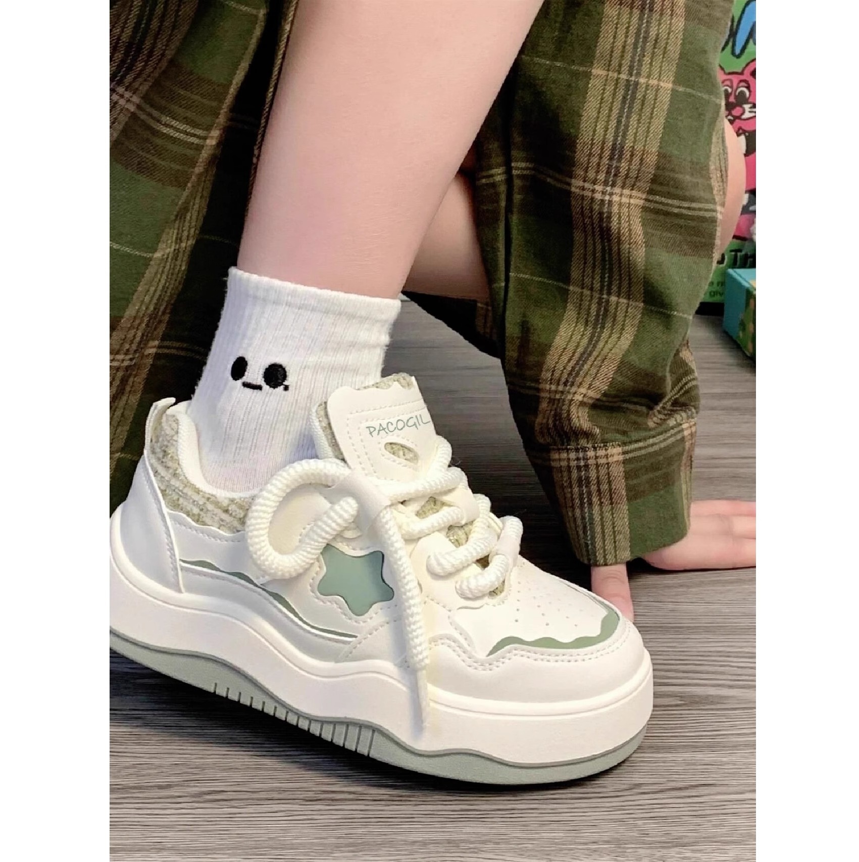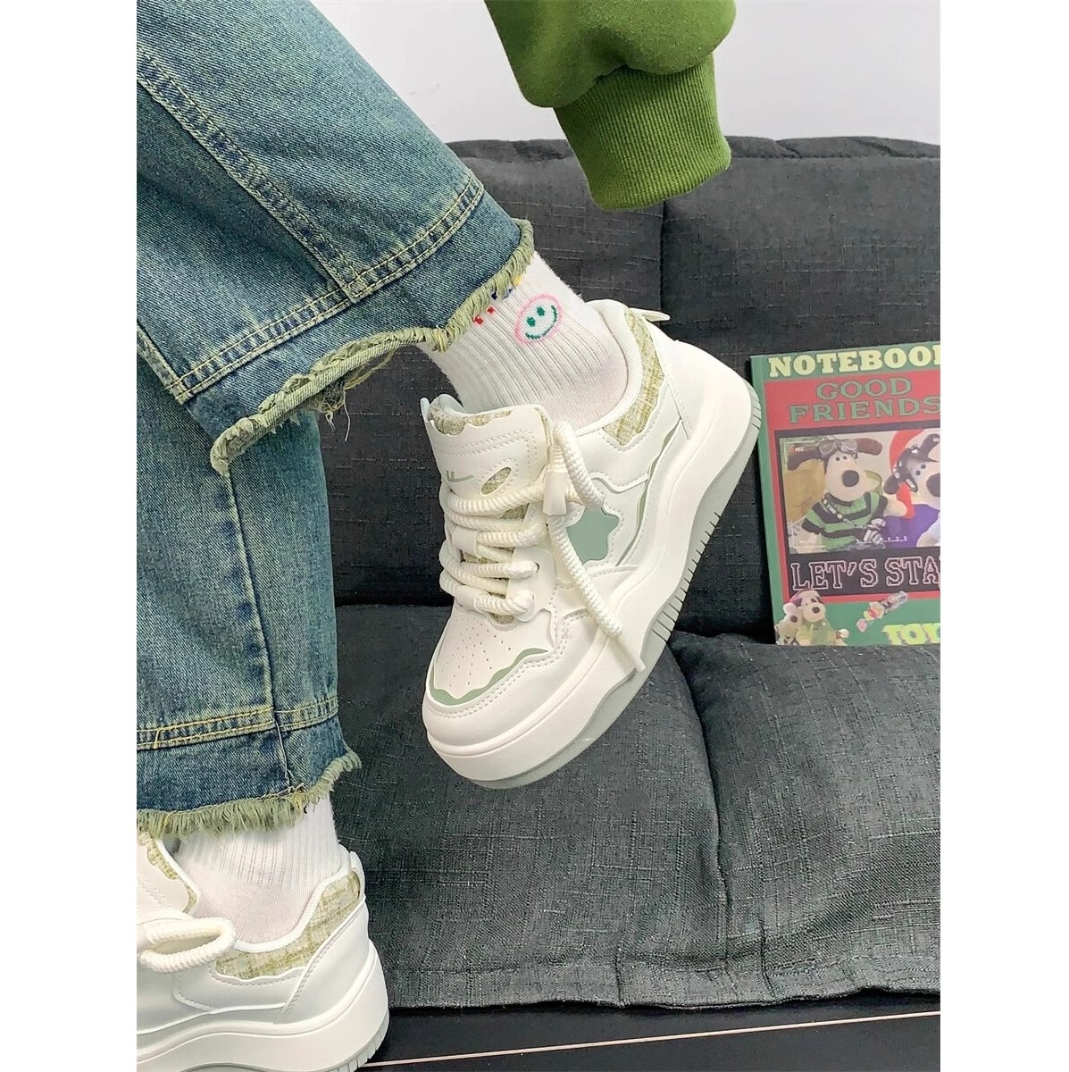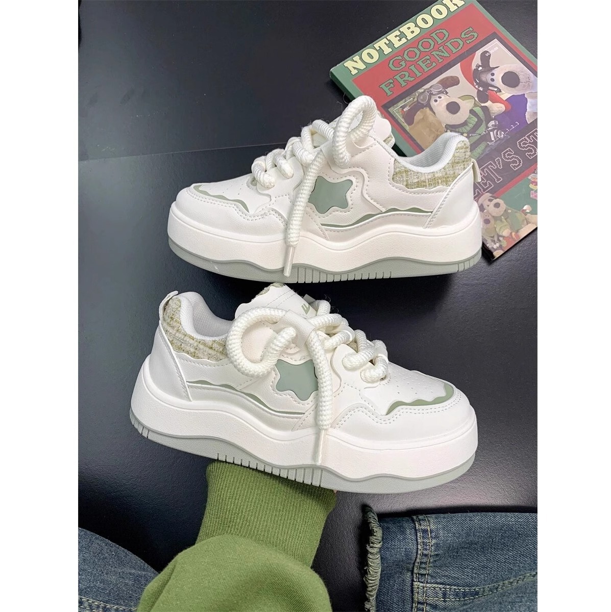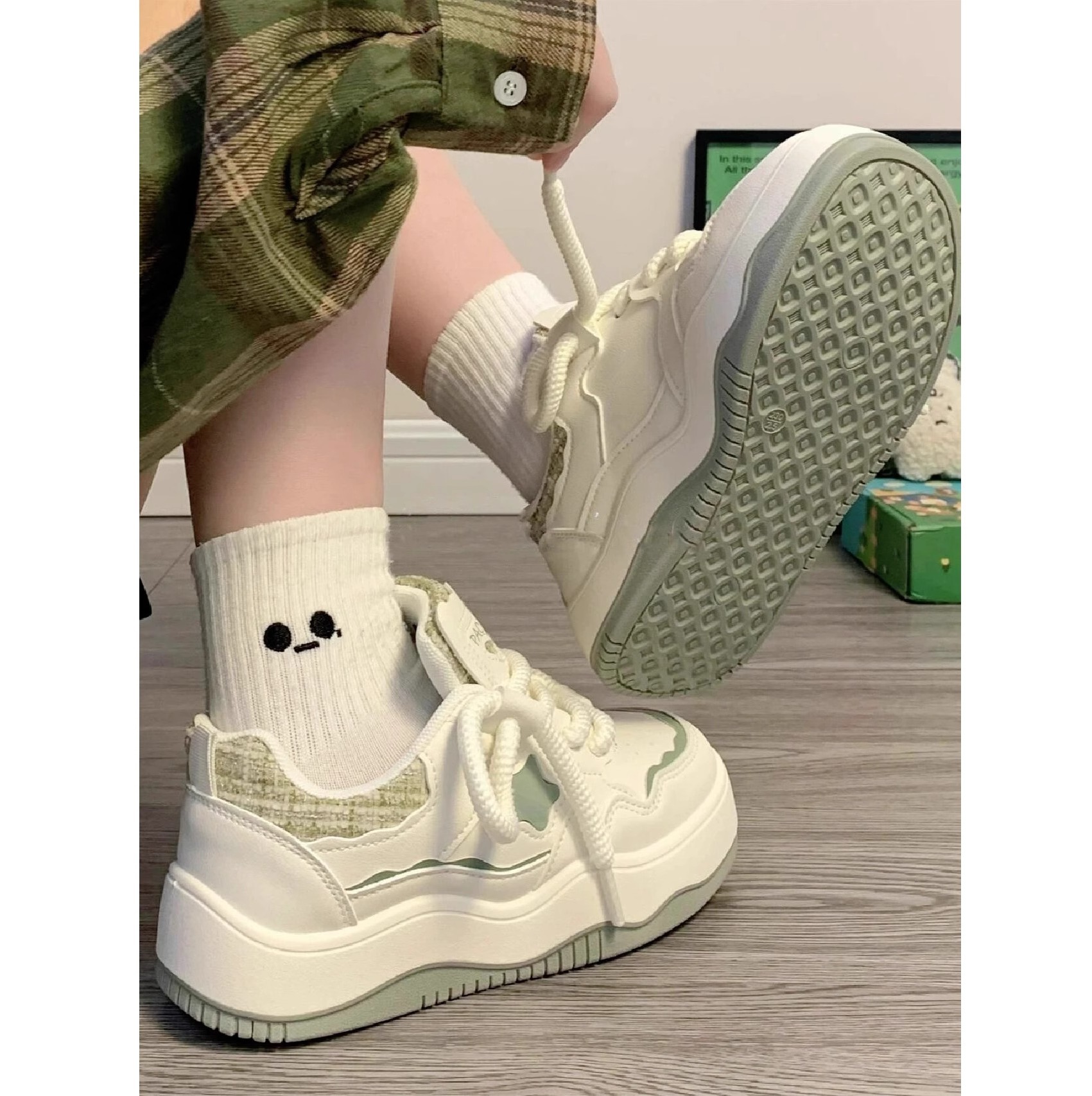 Спортивная женская обувь в корейском стиле, новинка 2025 года, популярная женская обувь, кроссовки на толстой подошве с трибутомой, нишевые белые туфли в американском стиле ретро