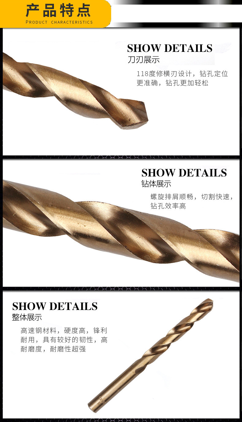 Высокоскоростная сталь HSS с прямым хвостом сверла из спиральной сверла из нержавеющей стали железо-алюминий из дерева пластик M35 Полное шлифовальное кобальтоносное сверло