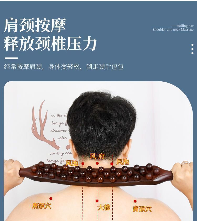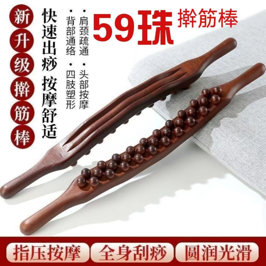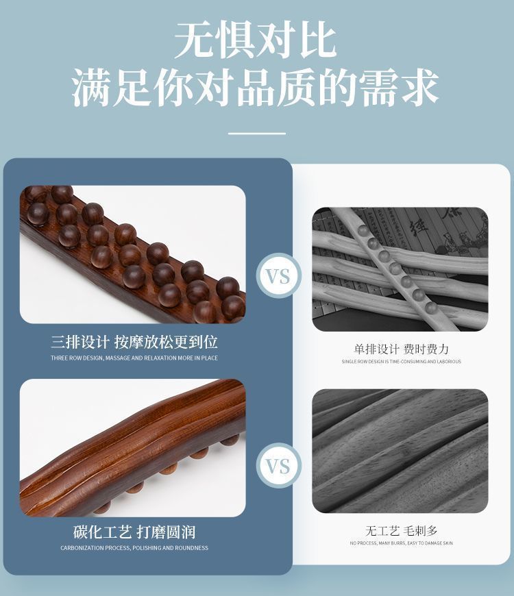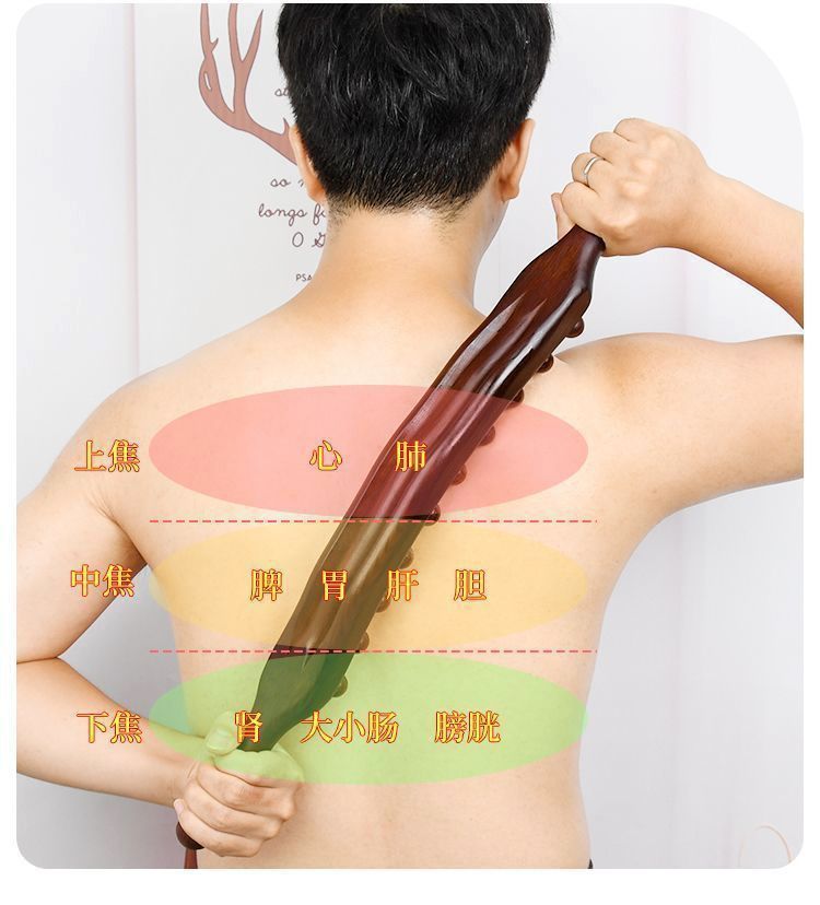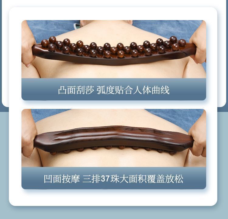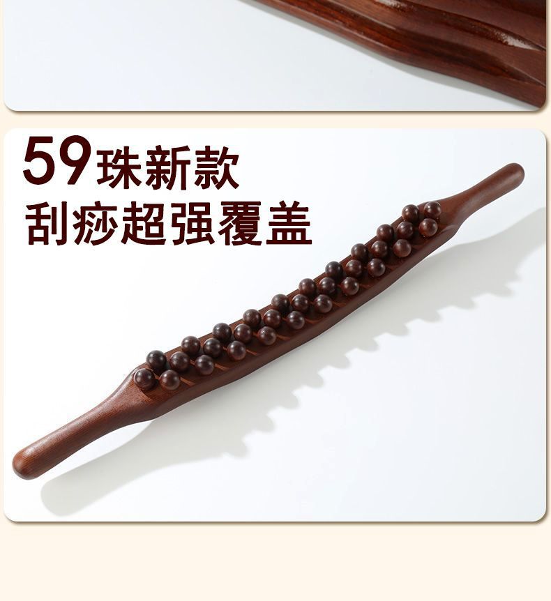 Трёхрядный инструмент Гуа Ша [59 бусин] - Пластиковая версия; Три ряда скребковой палочки + эфирное масло + карта меридиана.