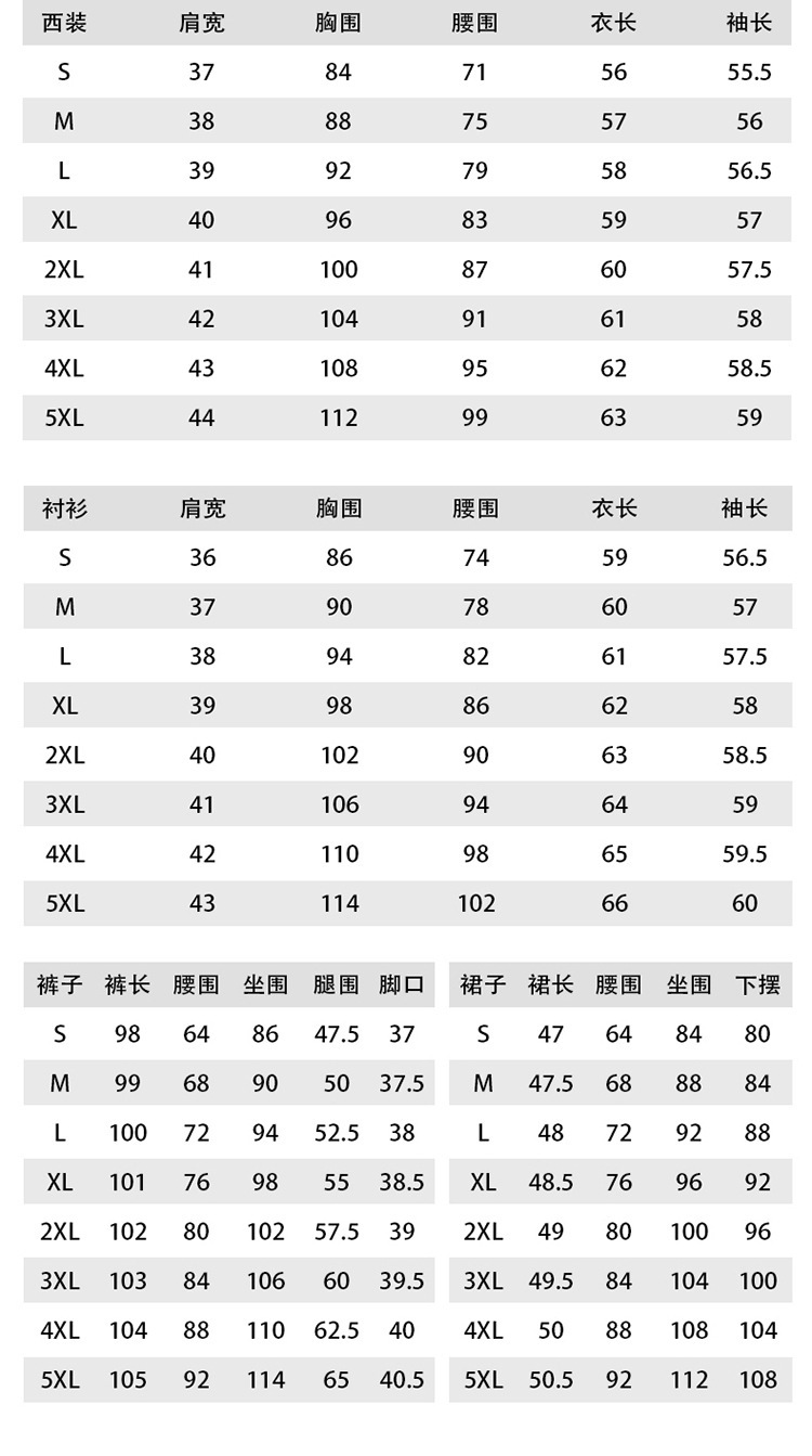 S; M; L; XL; XXL; XXXL; XXXXL; 5XL