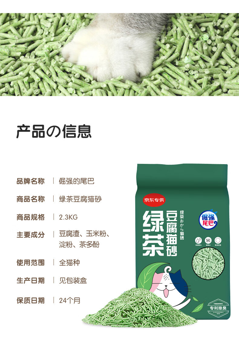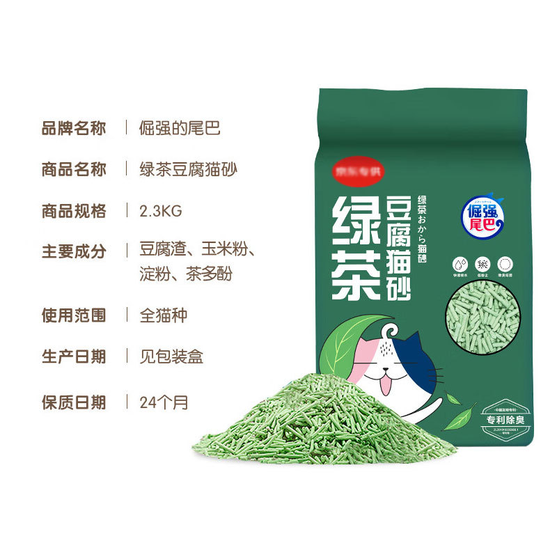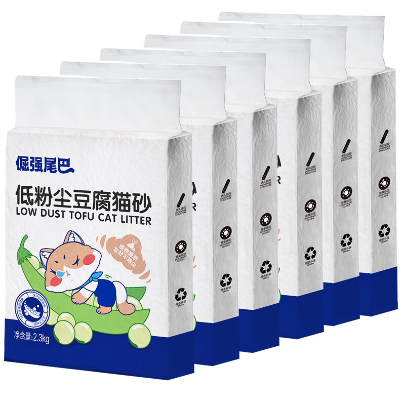 Упрямый хвост оригинальный тофу, кошачий песок, зеленый чай, низкая чувствительность, низкая пыль, скопления, товары для животных 2,3 kg * 6 мешков