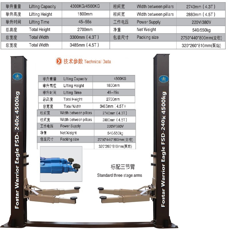 产品名称:富仕达战鹰系列FSD-240X-4500KG二柱举升机