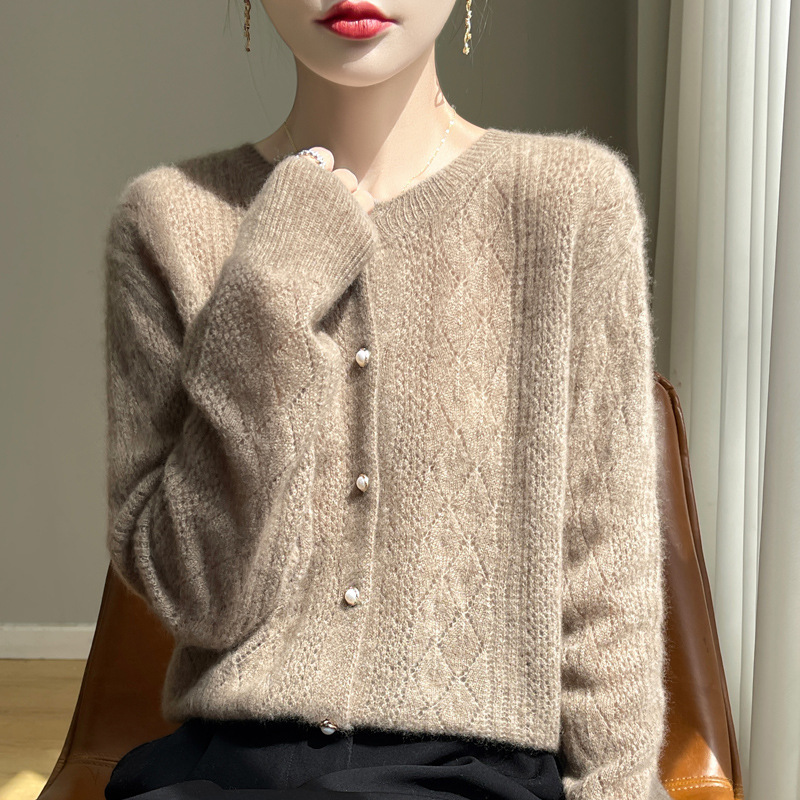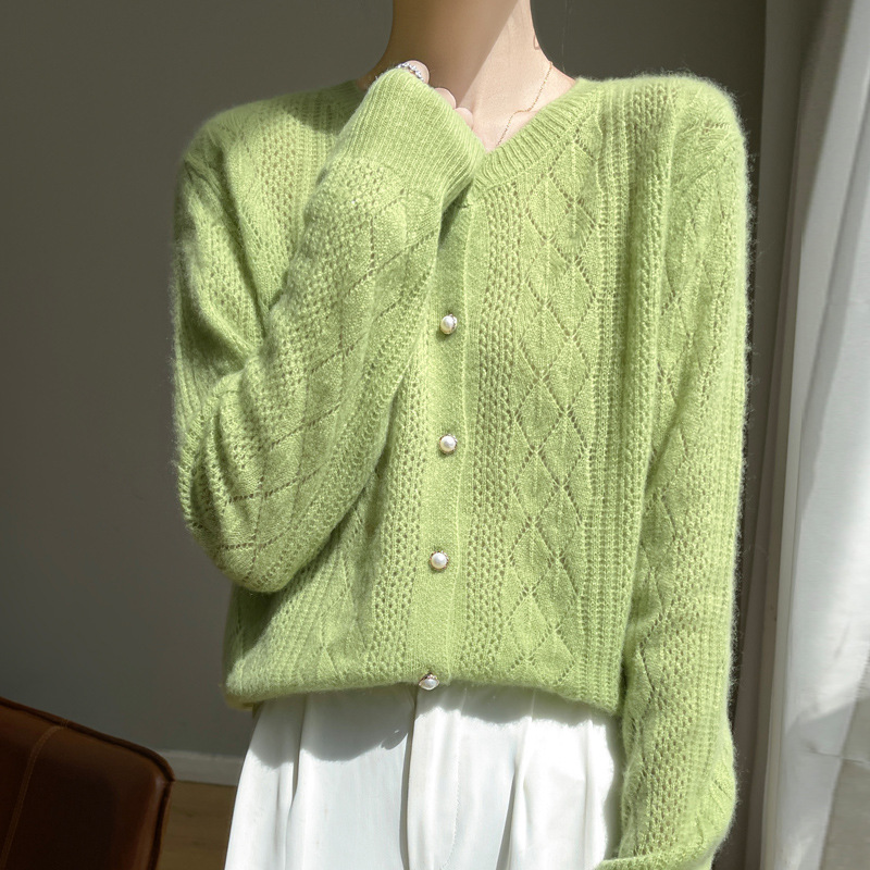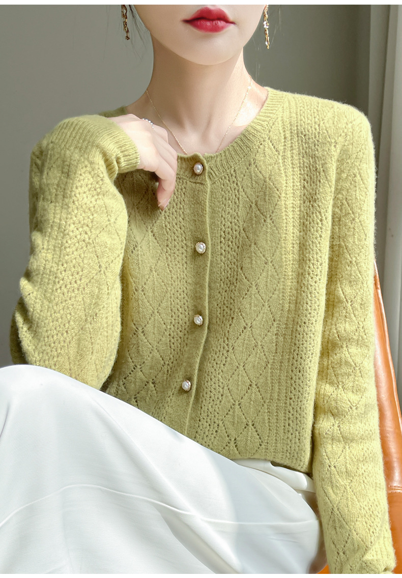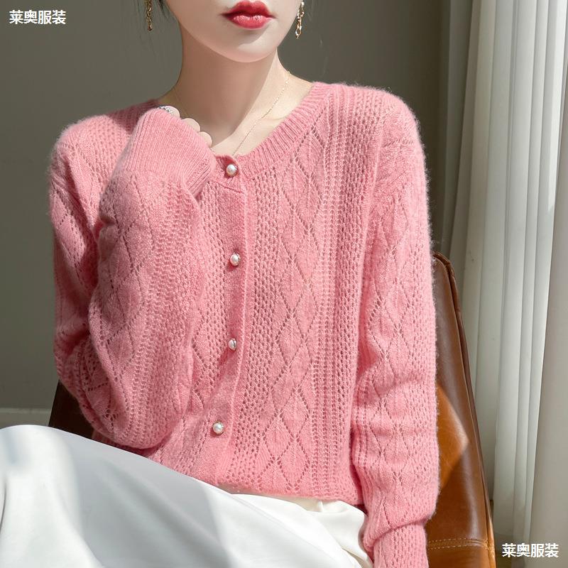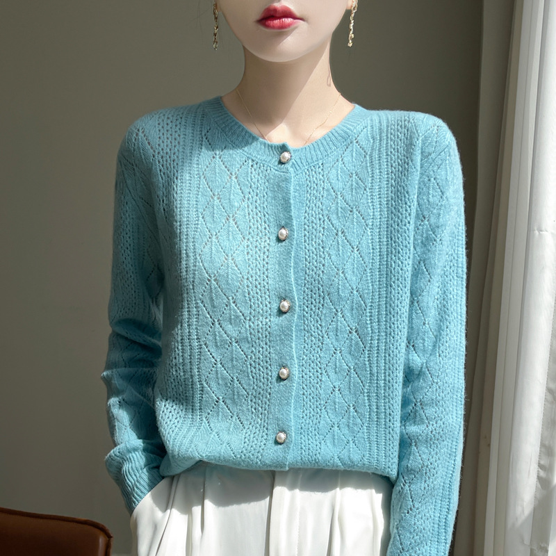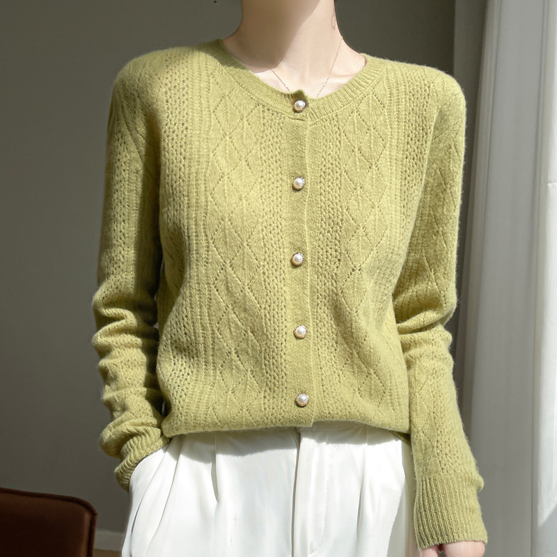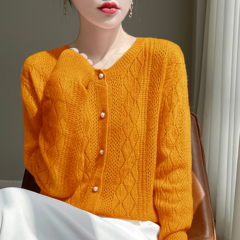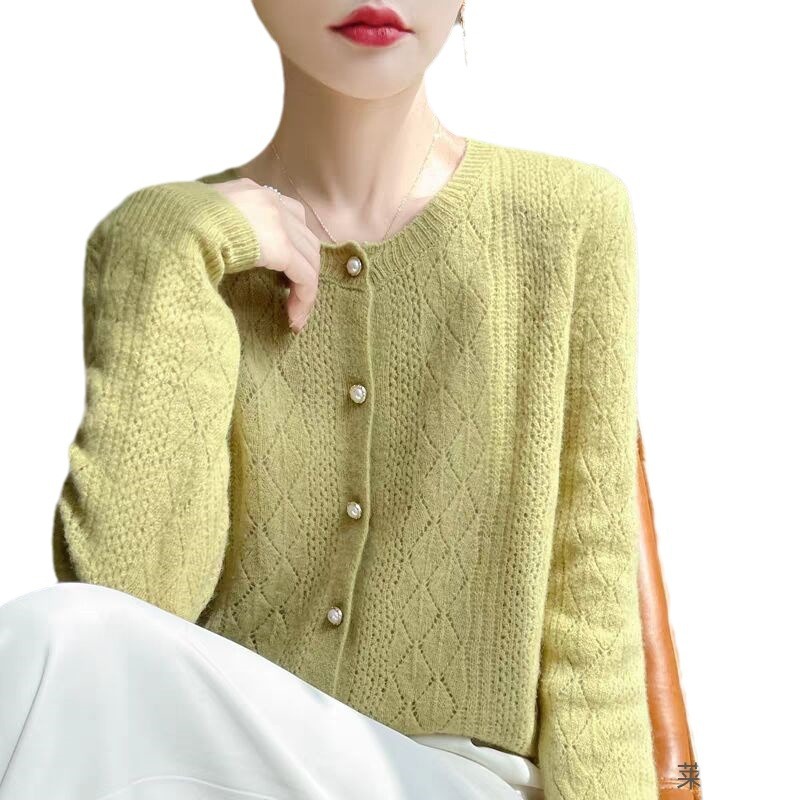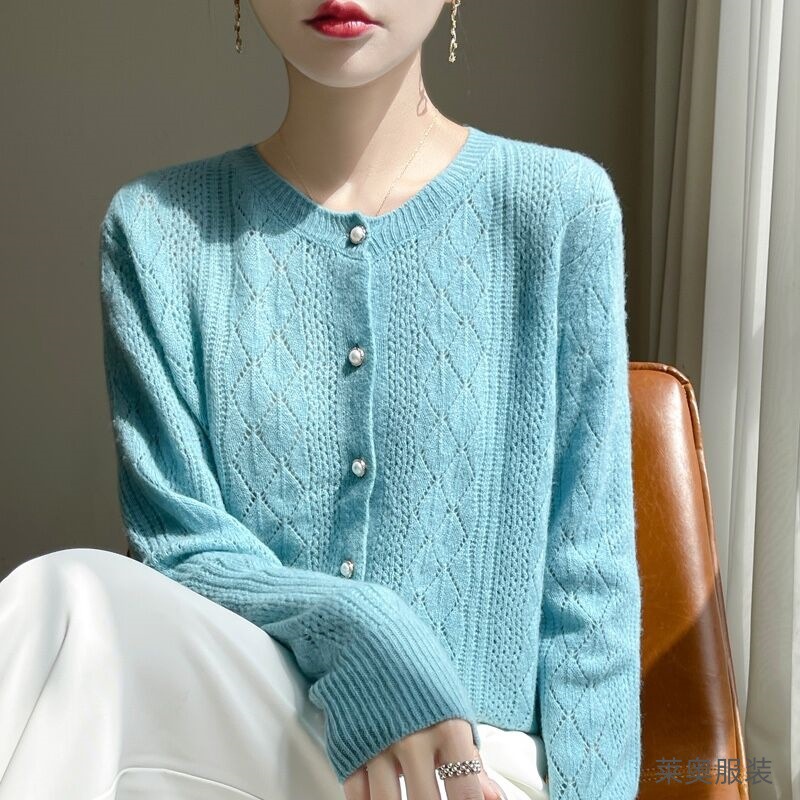 Корейские полые 100 шерстяные кардиганы женские с длинным рукавом