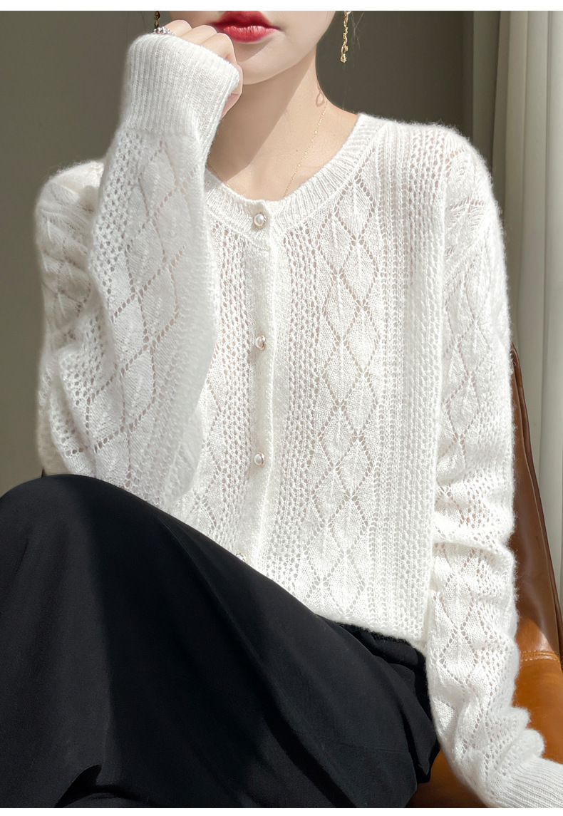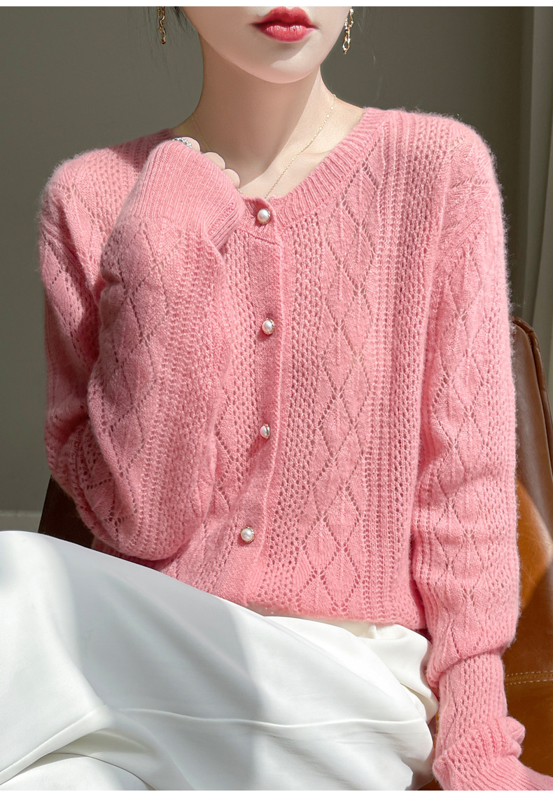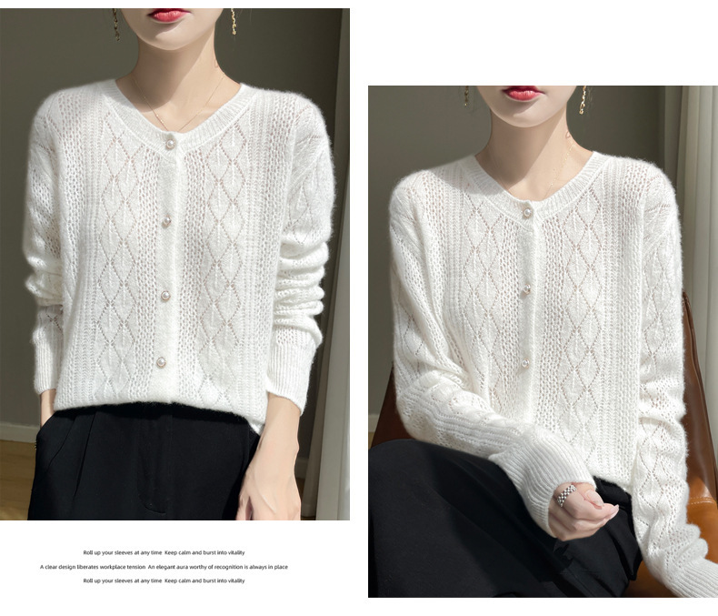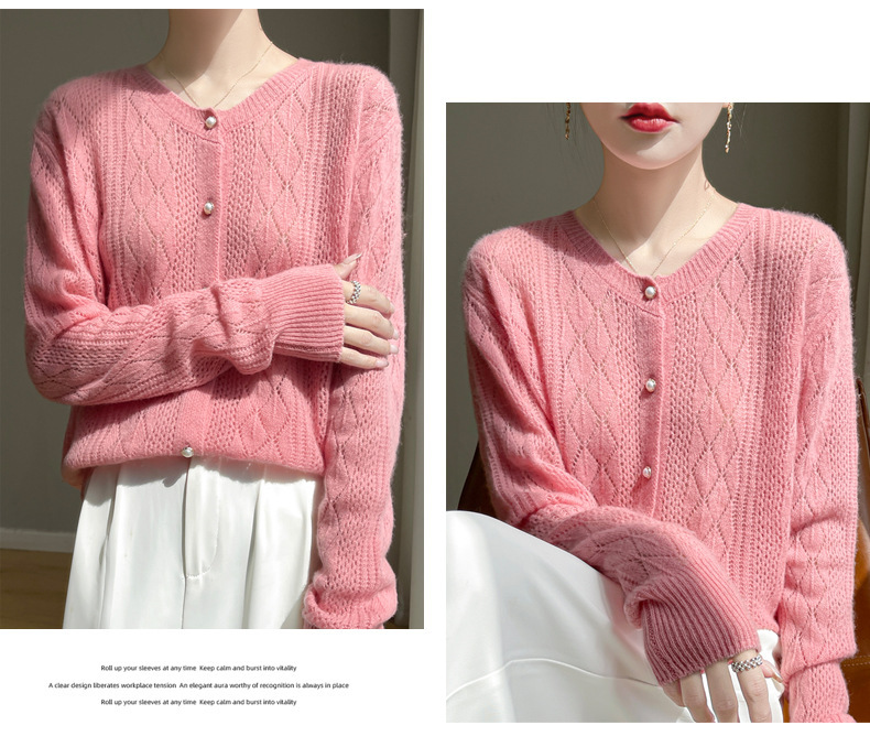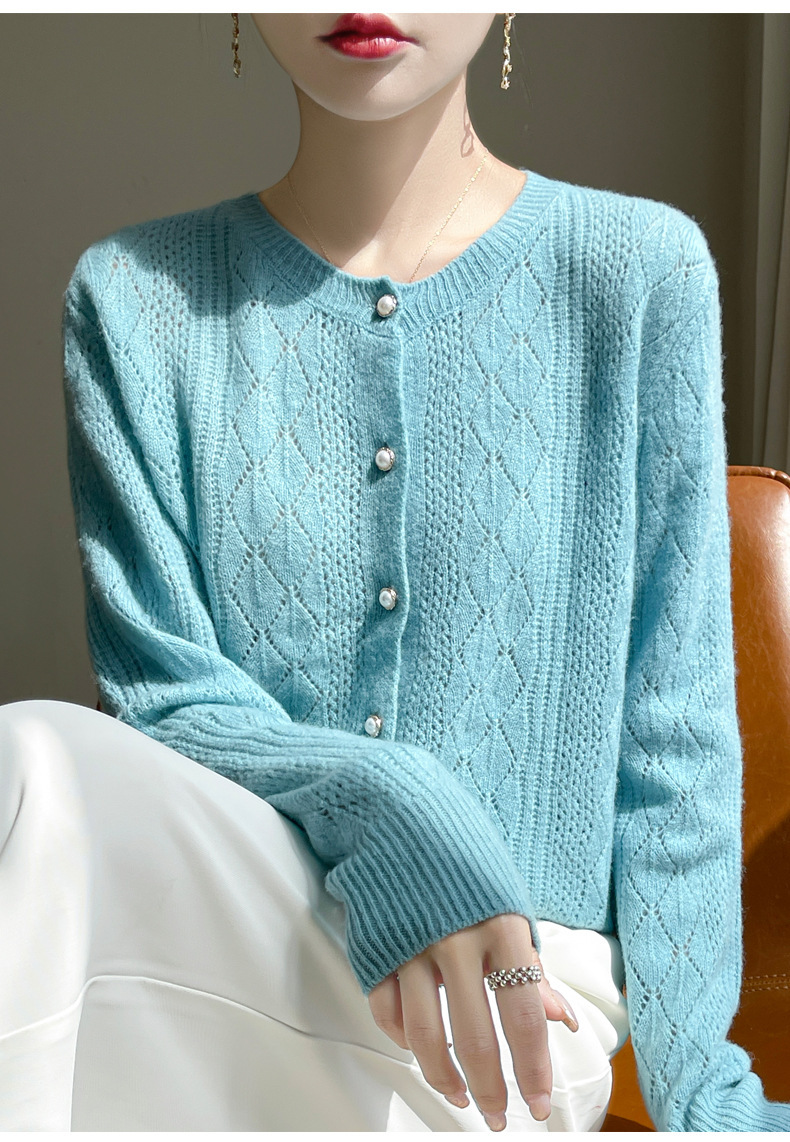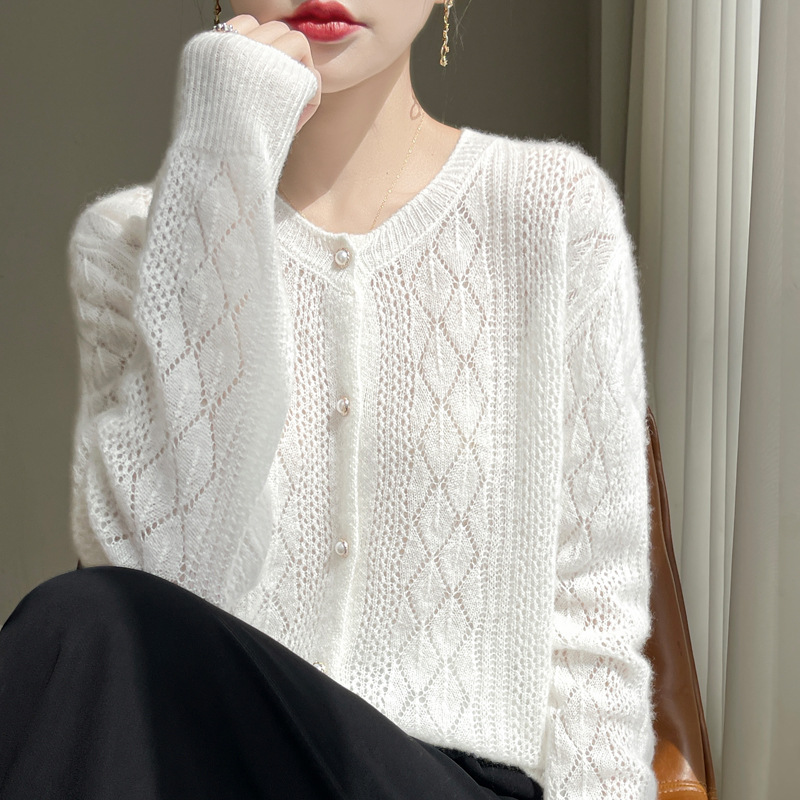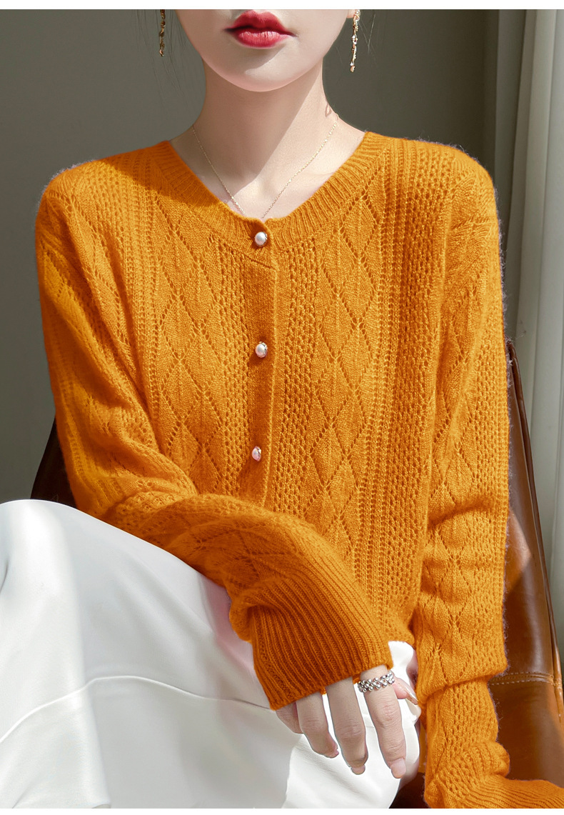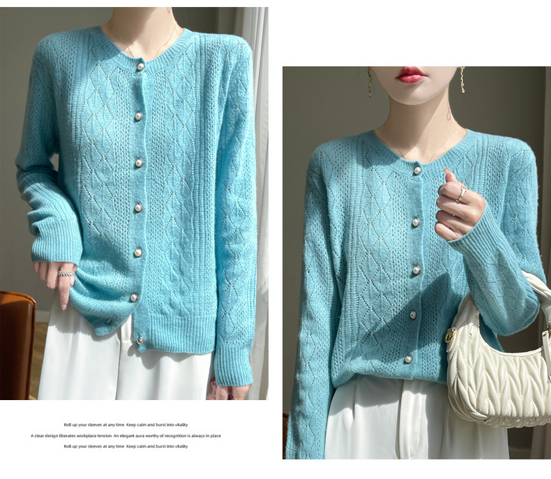 Корейские полые 100 шерстяные кардиганы женские с длинным рукавом