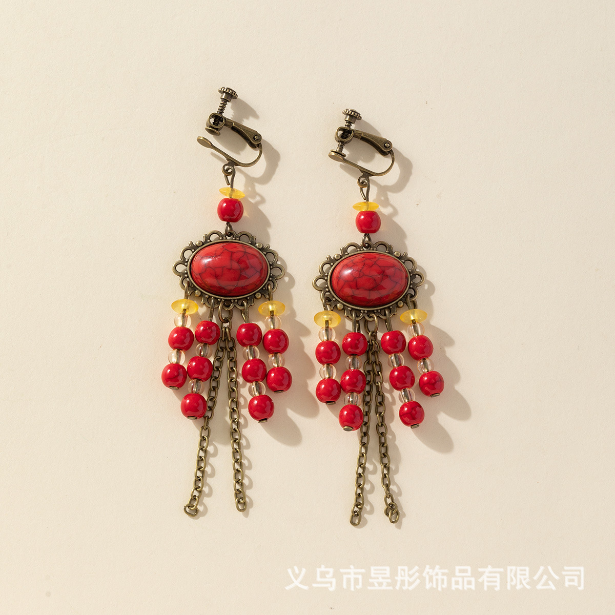 Двойной ряд красных кисточек; Двухрядная красная кисточка + (зажим для ушей) серьги с красными шариками; Двухрядная красная кисточка + (ушные крючки) серьги с красными шариками; Серьги с красными шариками (крючки); Серьги с красными шариками (зажимы для ушей)