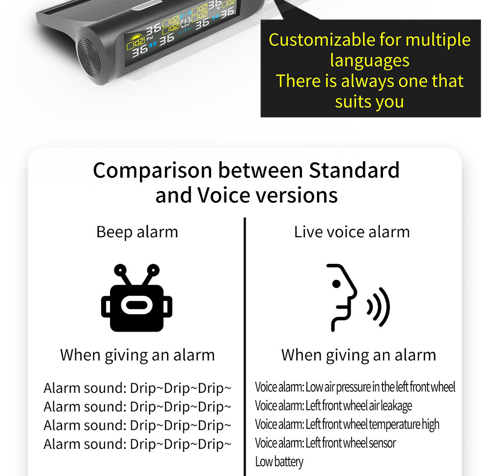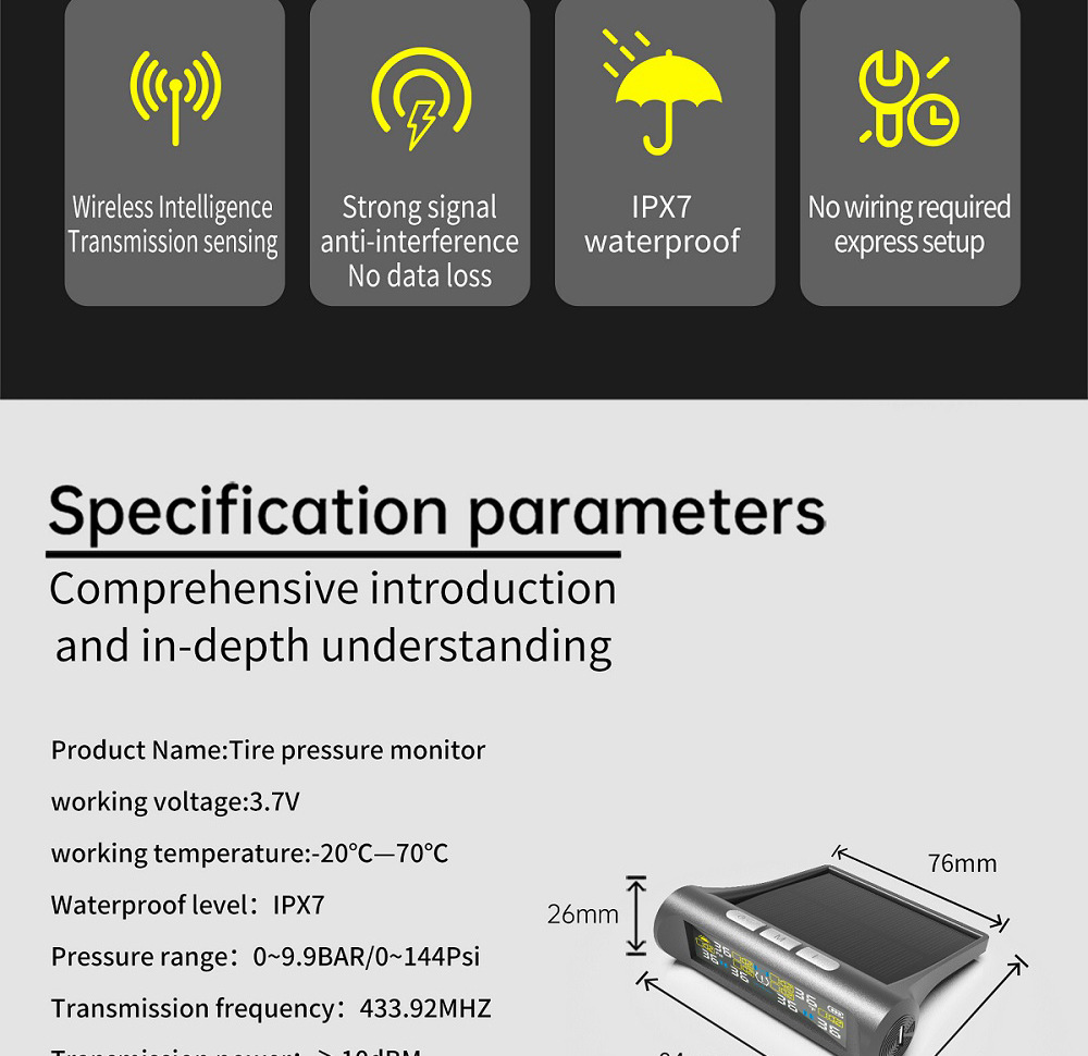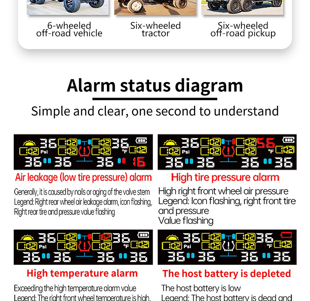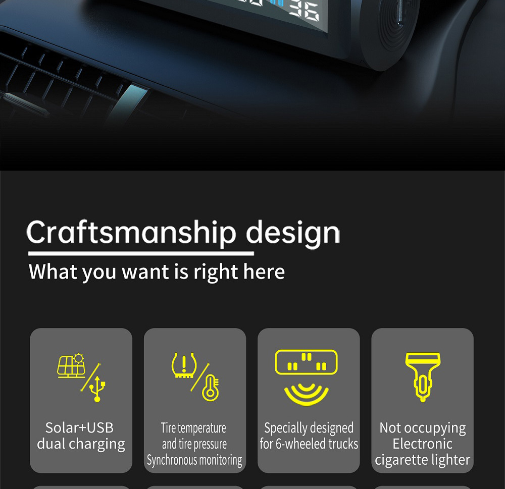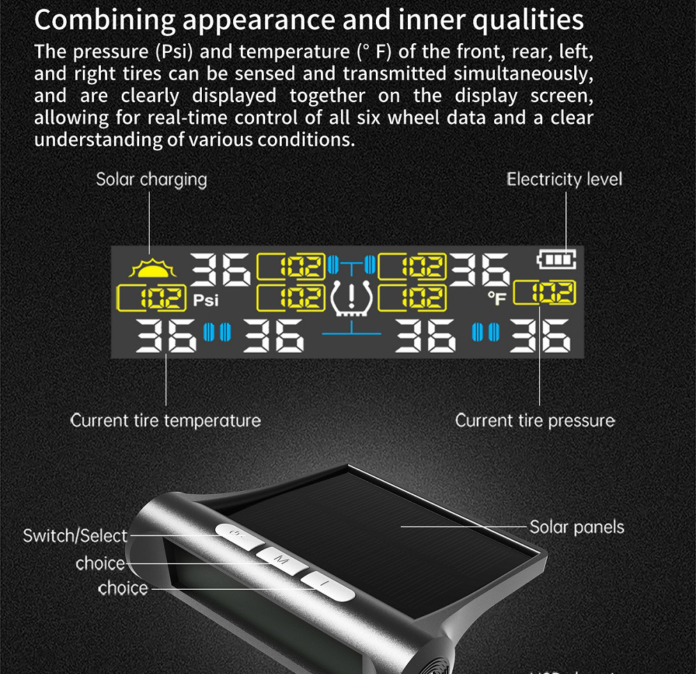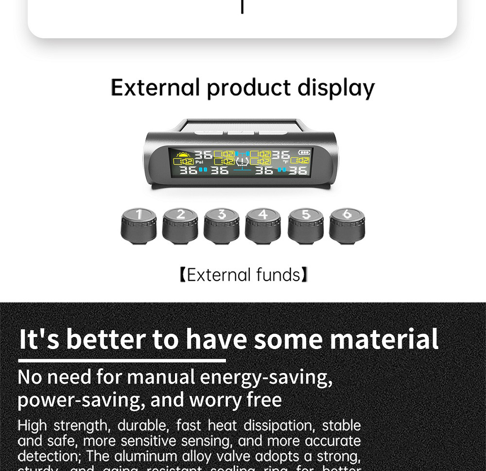 Мониторинг давления в шинах TY01-6 автомобиля Мониторинг давления в шинах Солнечный контроль давления в шинах TPMS