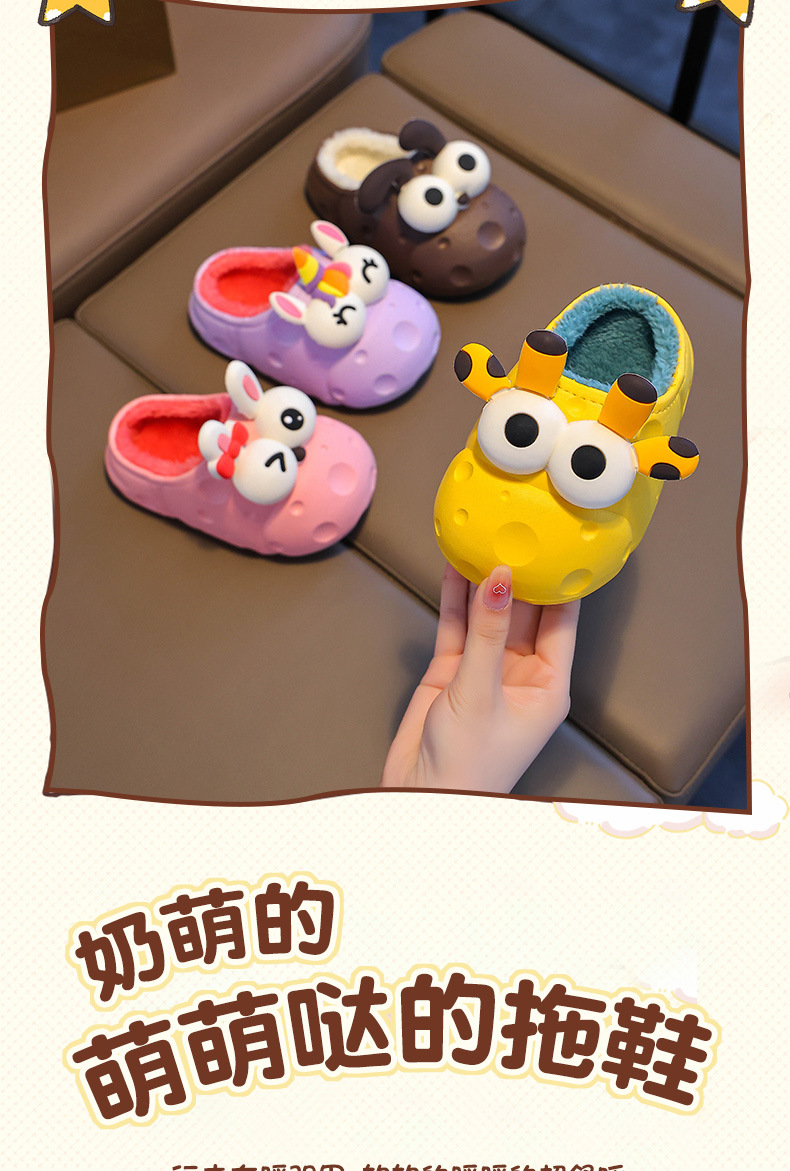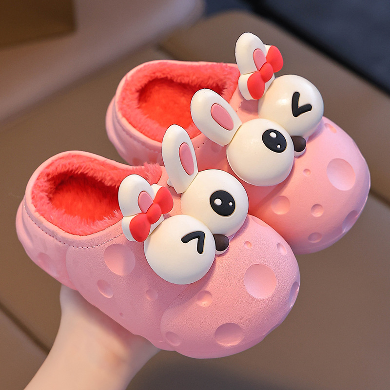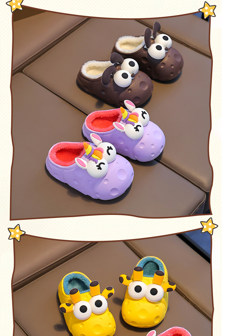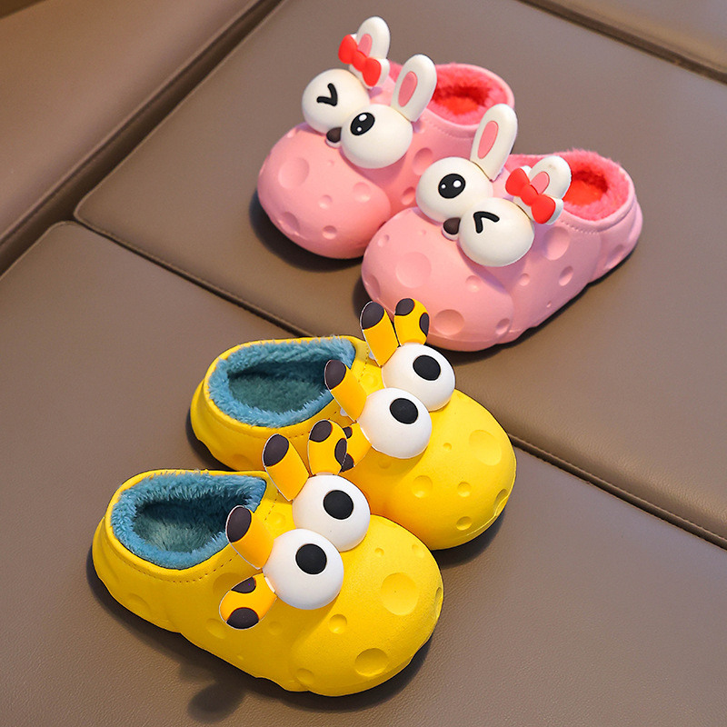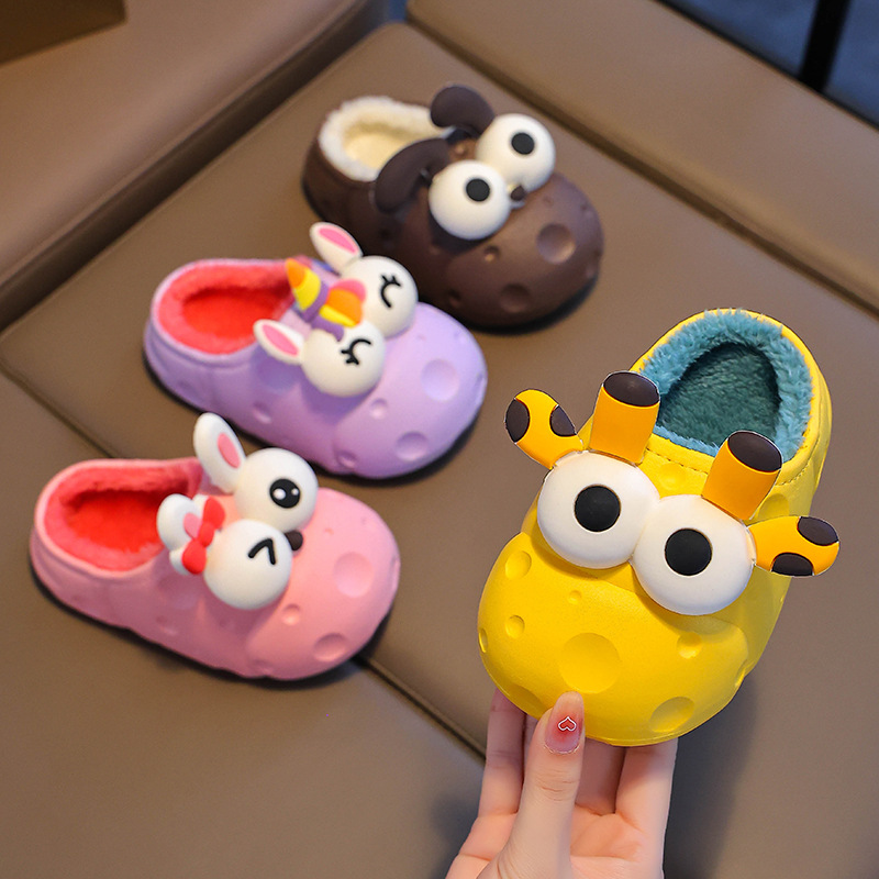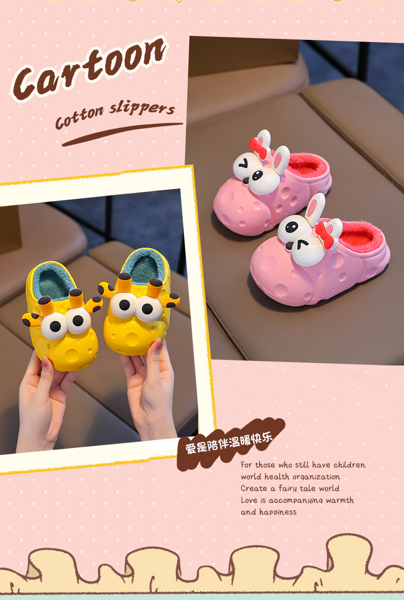 Зимние детские хлопковые тапочки 2024, новая модель, теплые, на флисовой подкладке, милые домашние водонепроницаемые закрытые хлопковые туфли для малышей