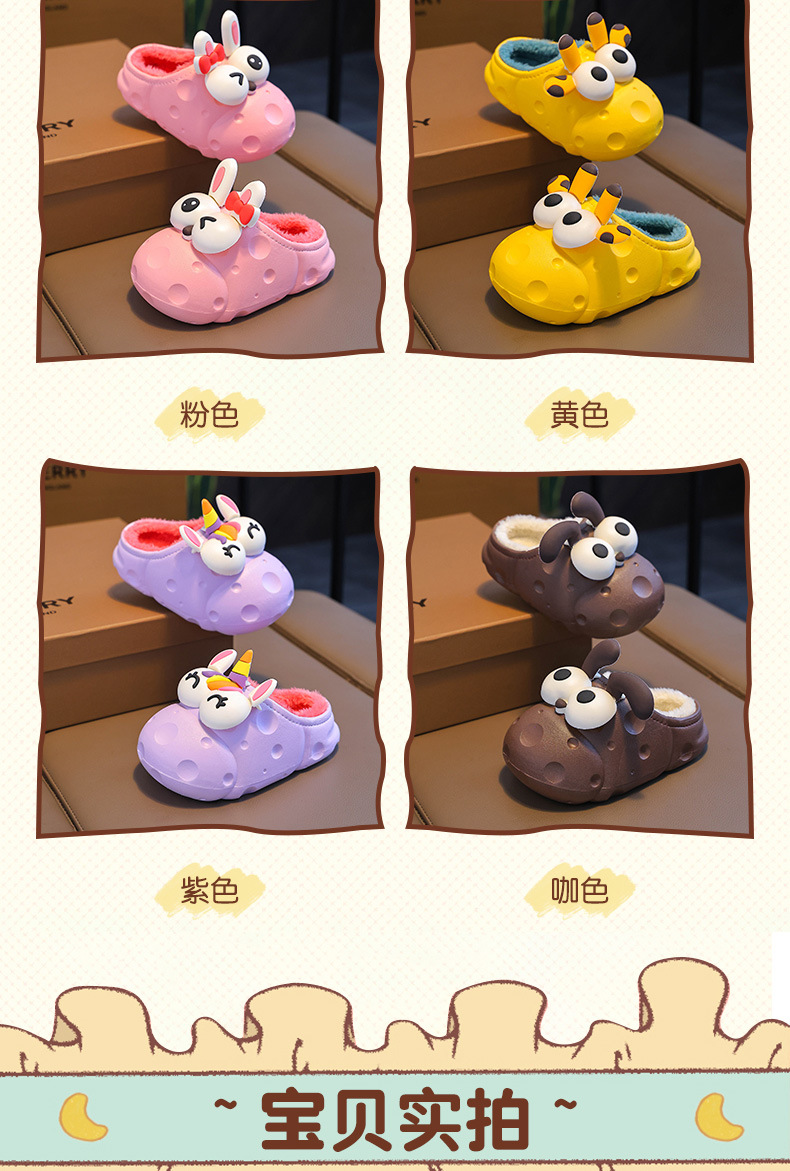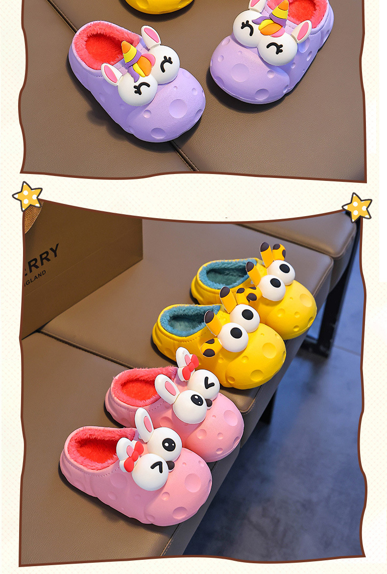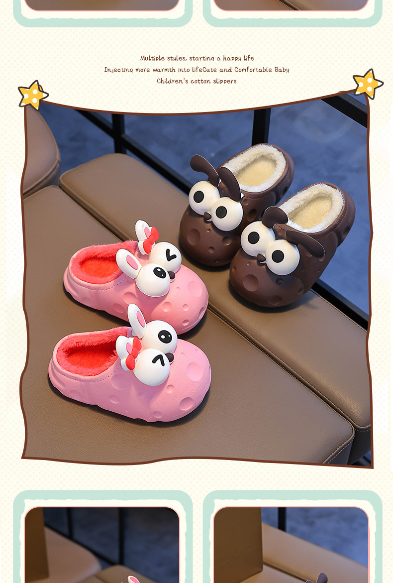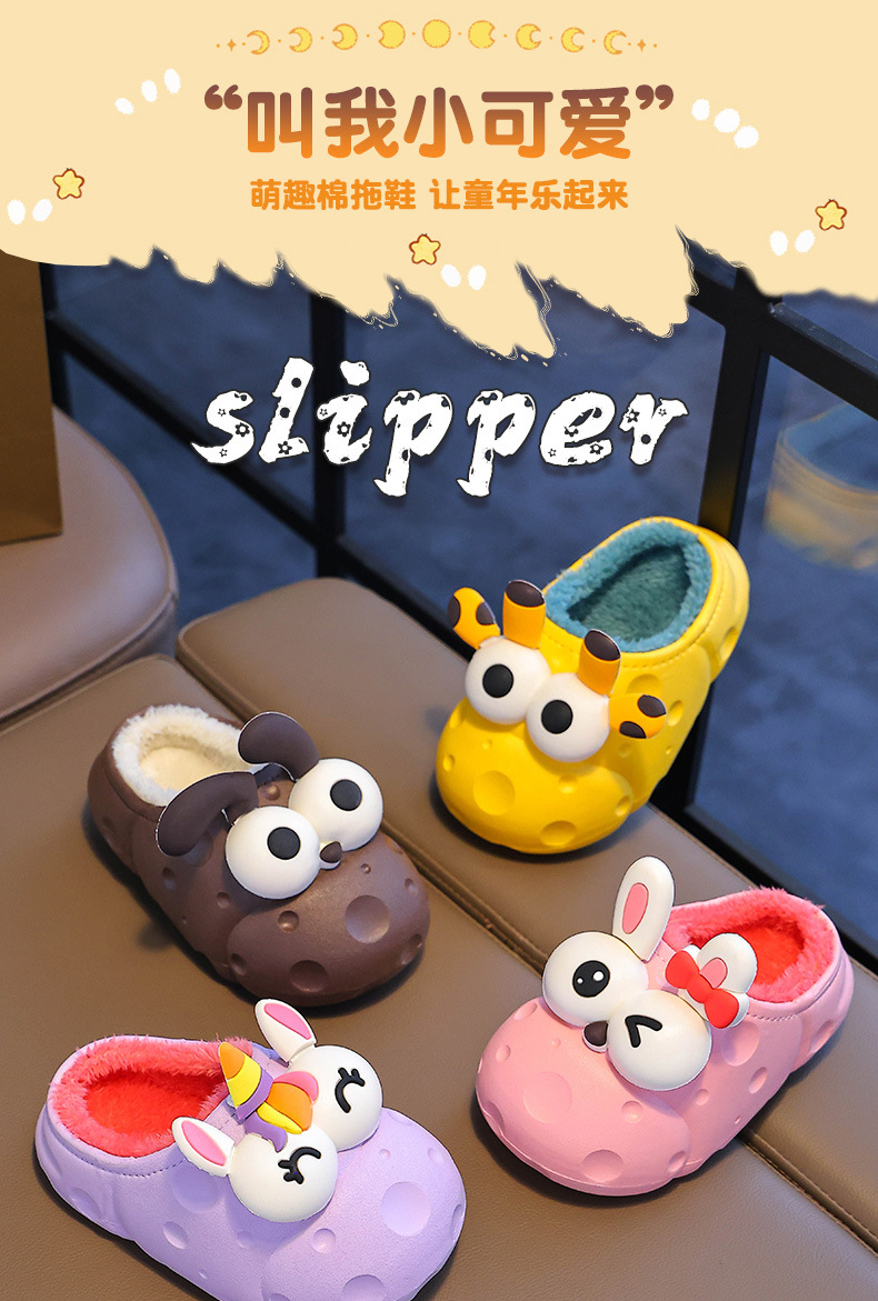 Зимние детские хлопковые тапочки 2024, новая модель, теплые, на флисовой подкладке, милые домашние водонепроницаемые закрытые хлопковые туфли для малышей