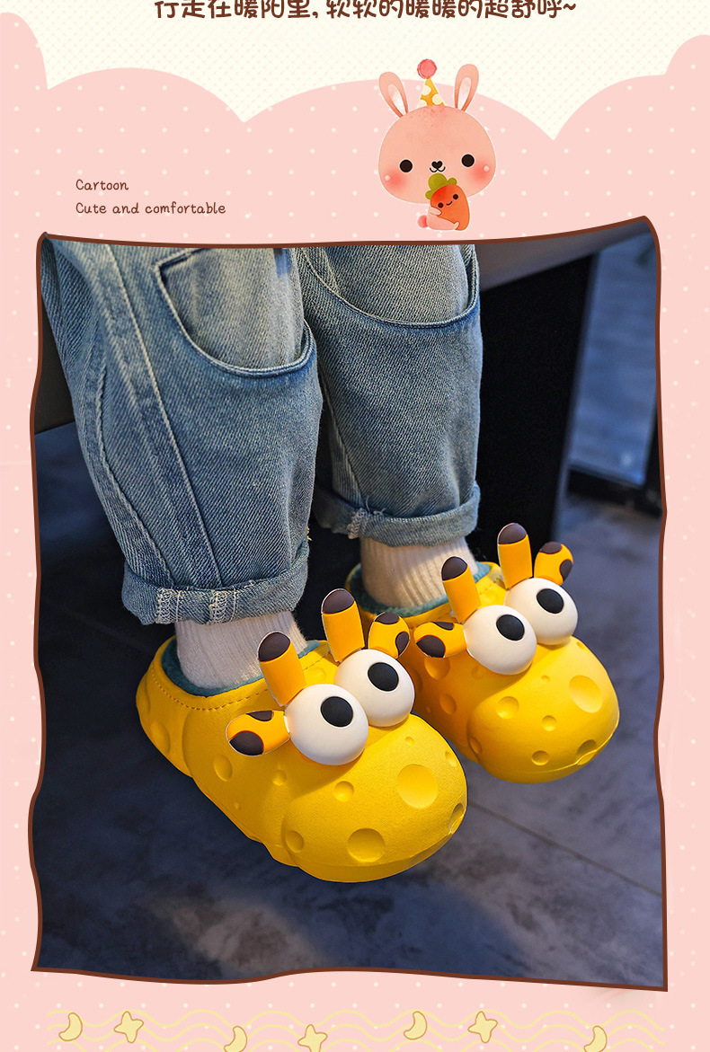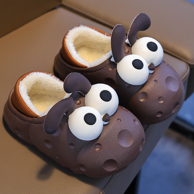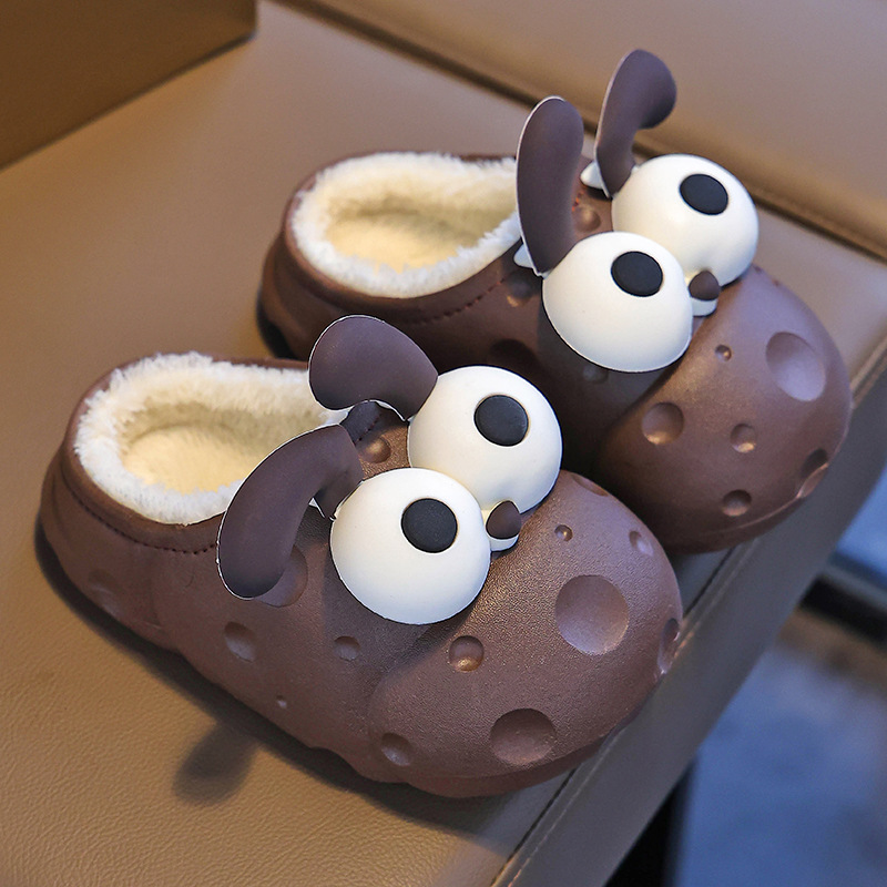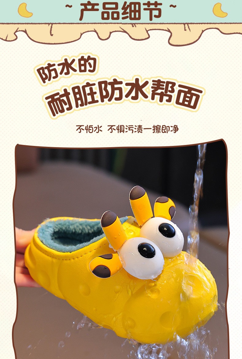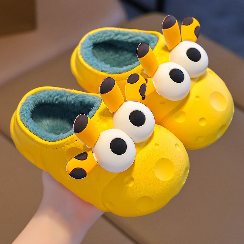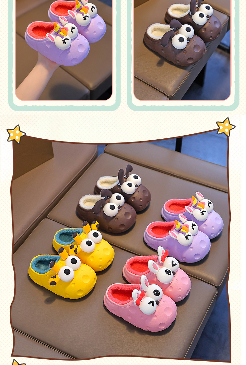 Зимние детские хлопковые тапочки 2024, новая модель, теплые, на флисовой подкладке, милые домашние водонепроницаемые закрытые хлопковые туфли для малышей