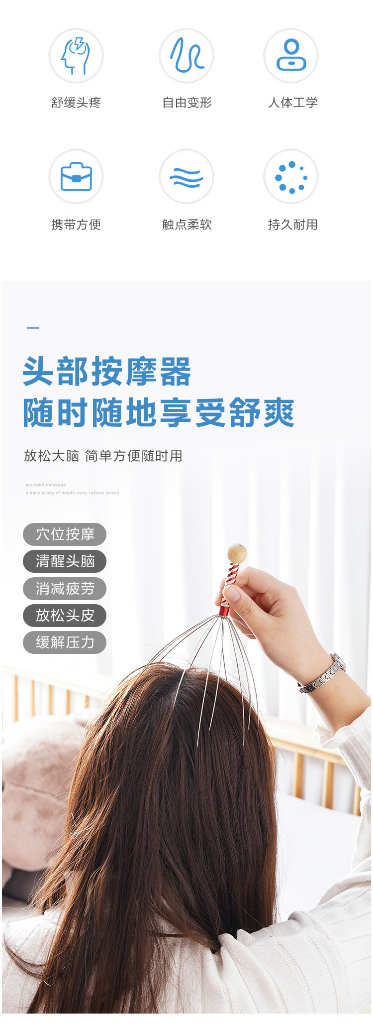 Щекая голову, царапая голову, зуд, экстрактор, экстрактор, артефакт, осьминога с пятью когтями, массажер головы, шарик, скальп